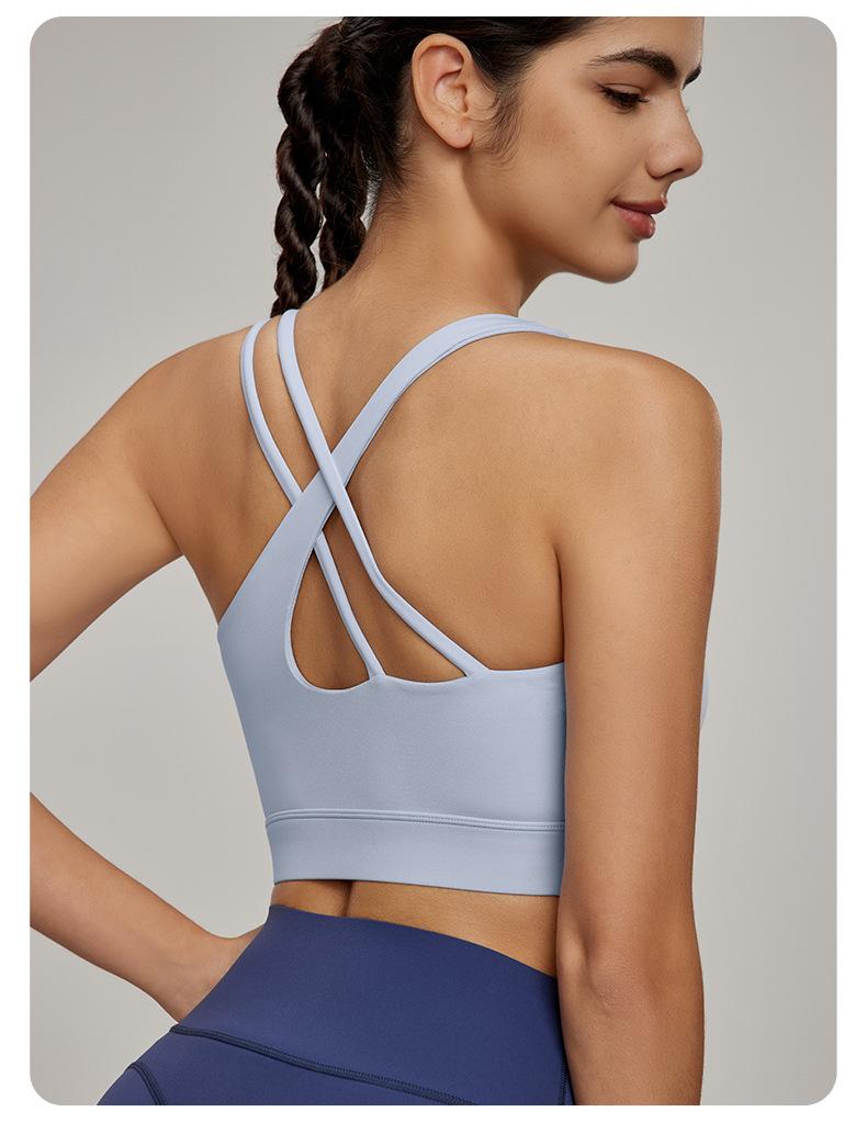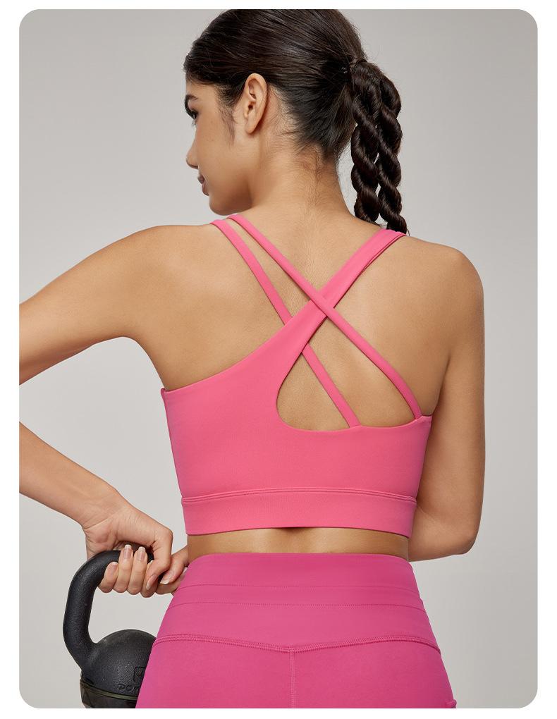 Ropa interior deportiva asimétrica de primavera y verano para mujer, copa fija, tirantes finos para los hombros, sujetador de tirantes para la espalda, chaleco de entrenamiento de fitness y yoga.