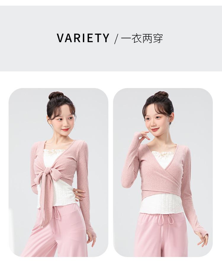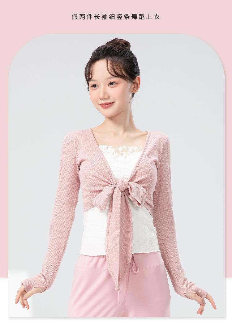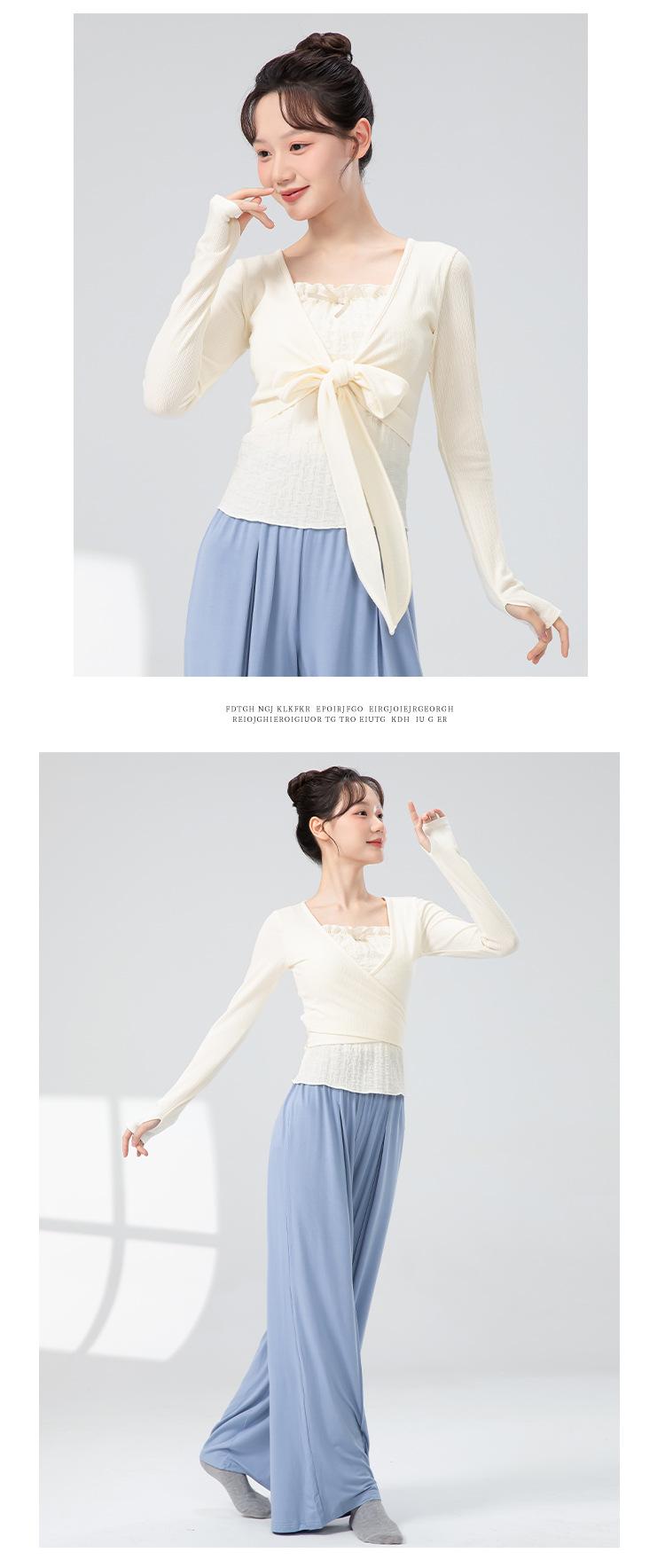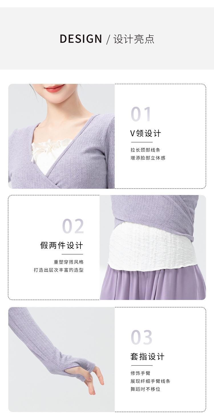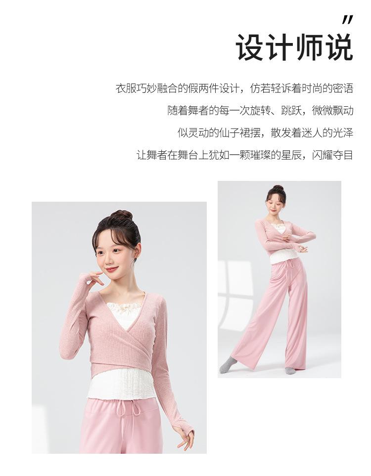 Ropa de Danza Moderna para Mujer, Nuevo Estilo Top de Punto Falso de Dos Piezas, Ajuste Entallado Danza Clásica China, Top para Práctica de Yoga Corporal