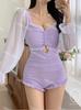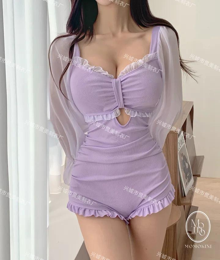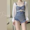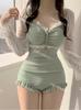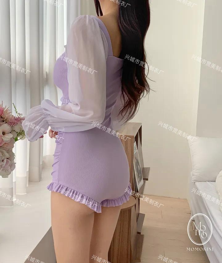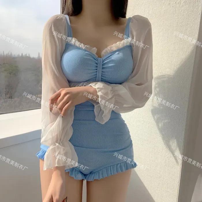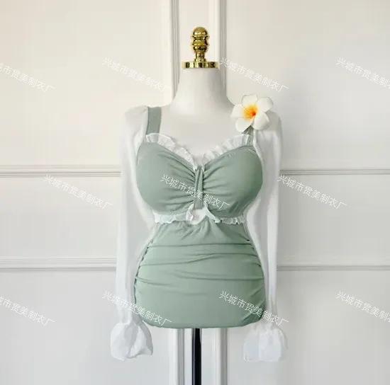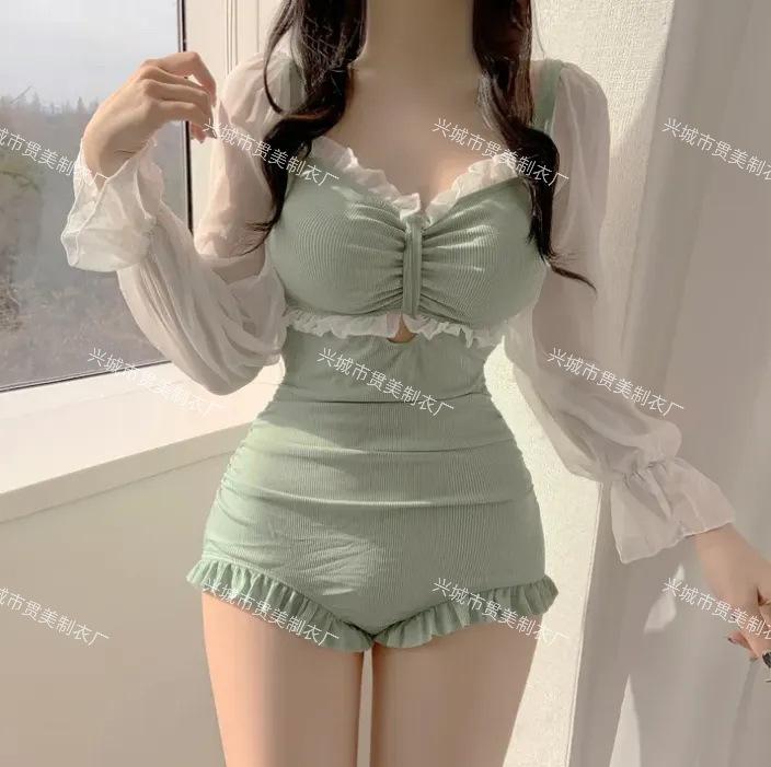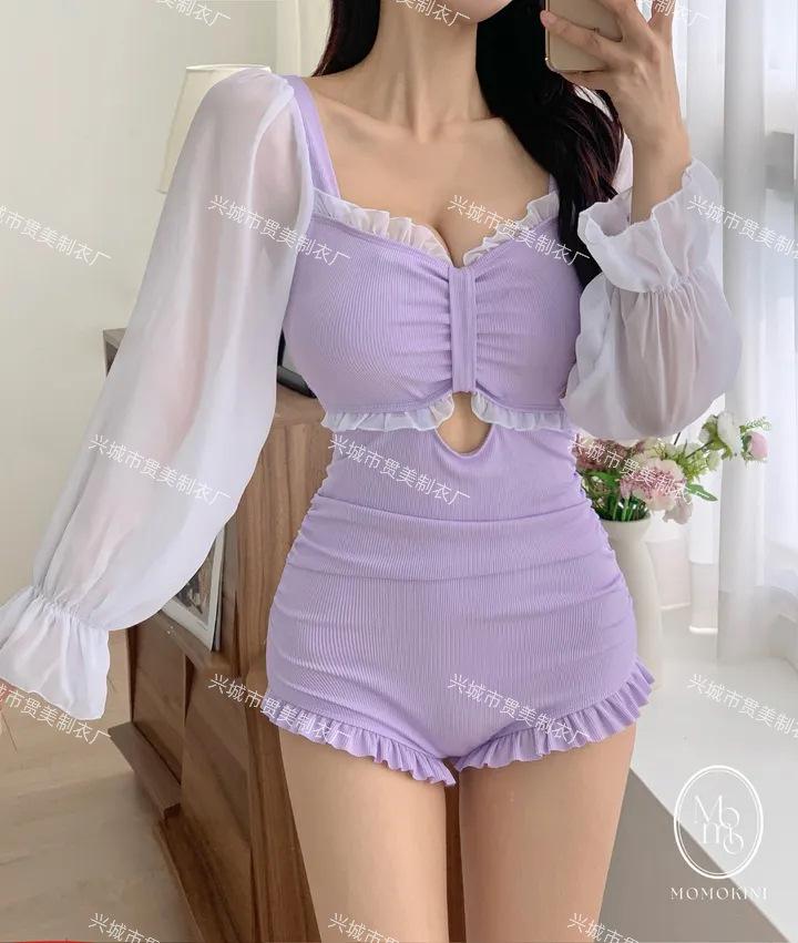 5 colores] nuevo traje de baño sexy de una pieza para mujer, de alta gama, estilo puro, conservador, de manga larga, que cubre el vientre, delgado, para aguas termales