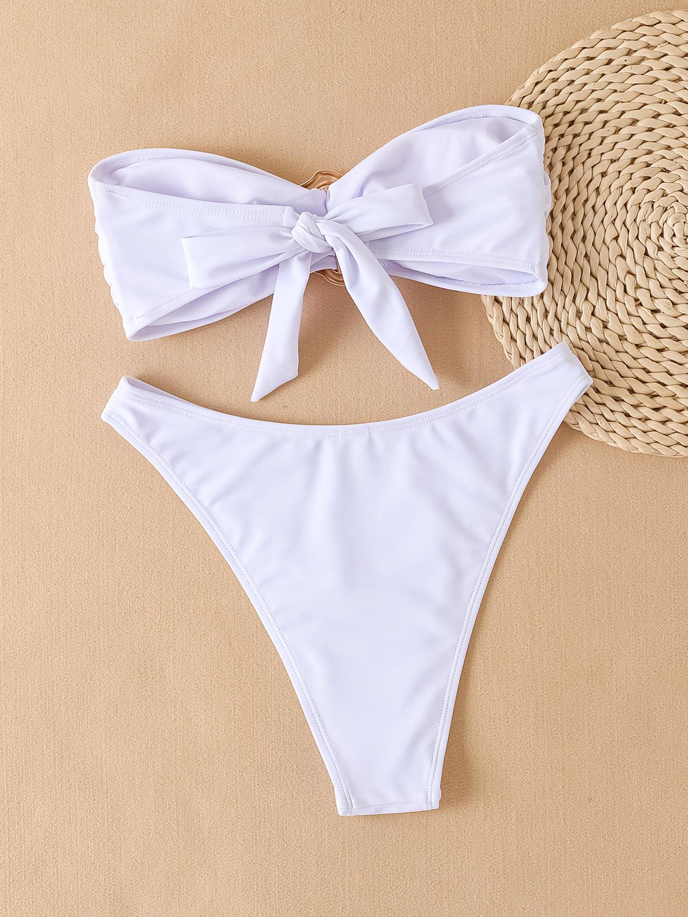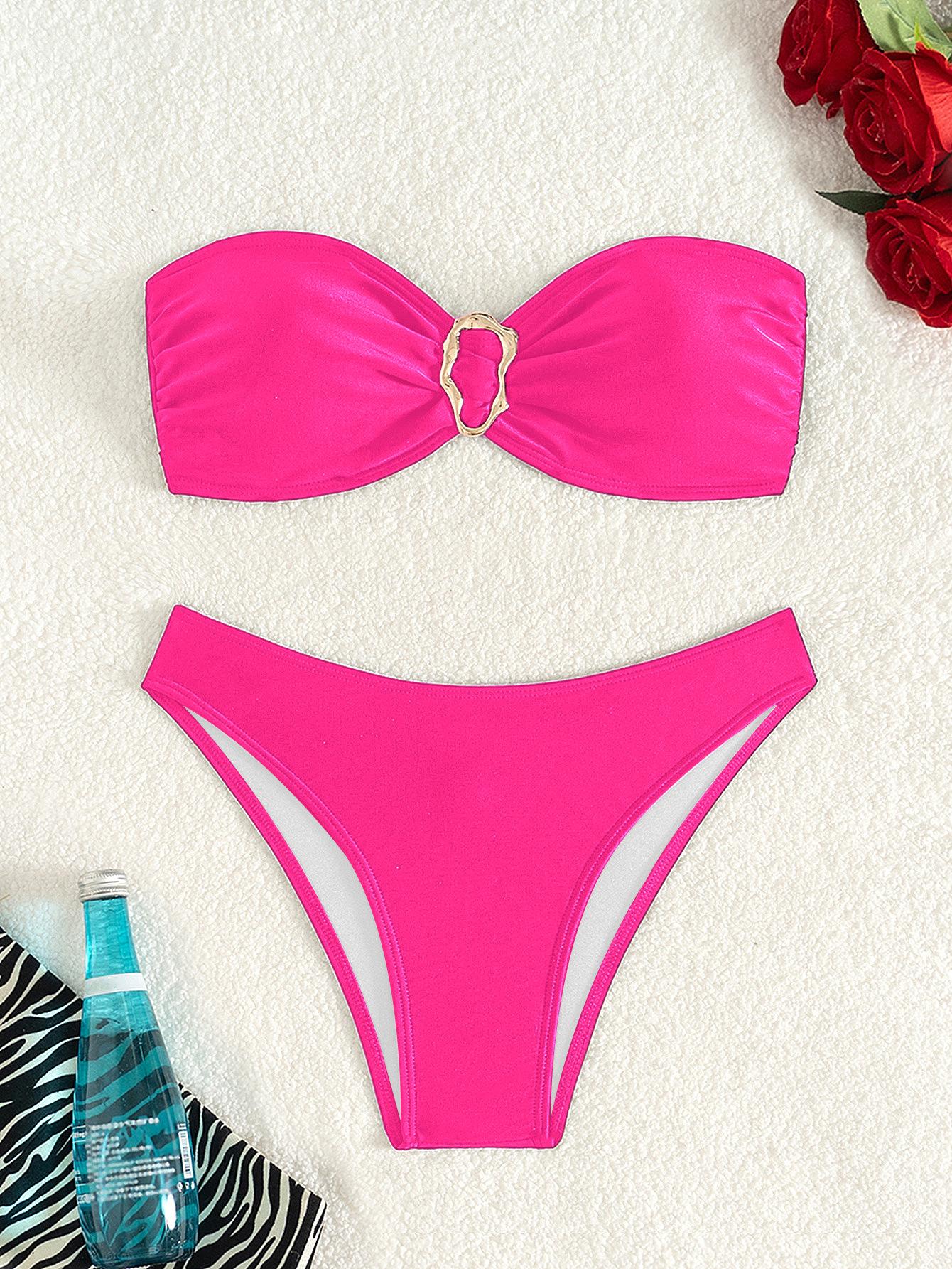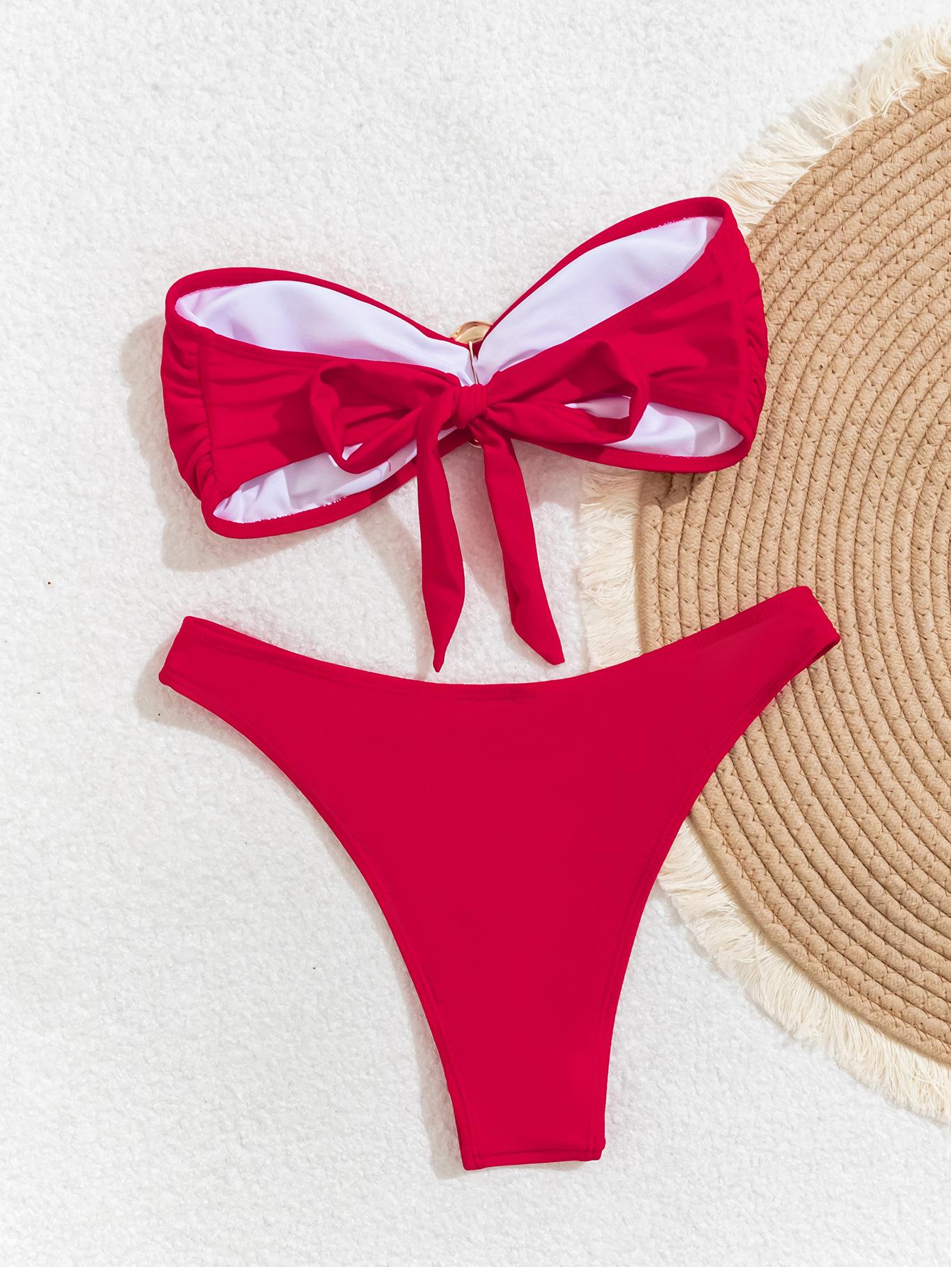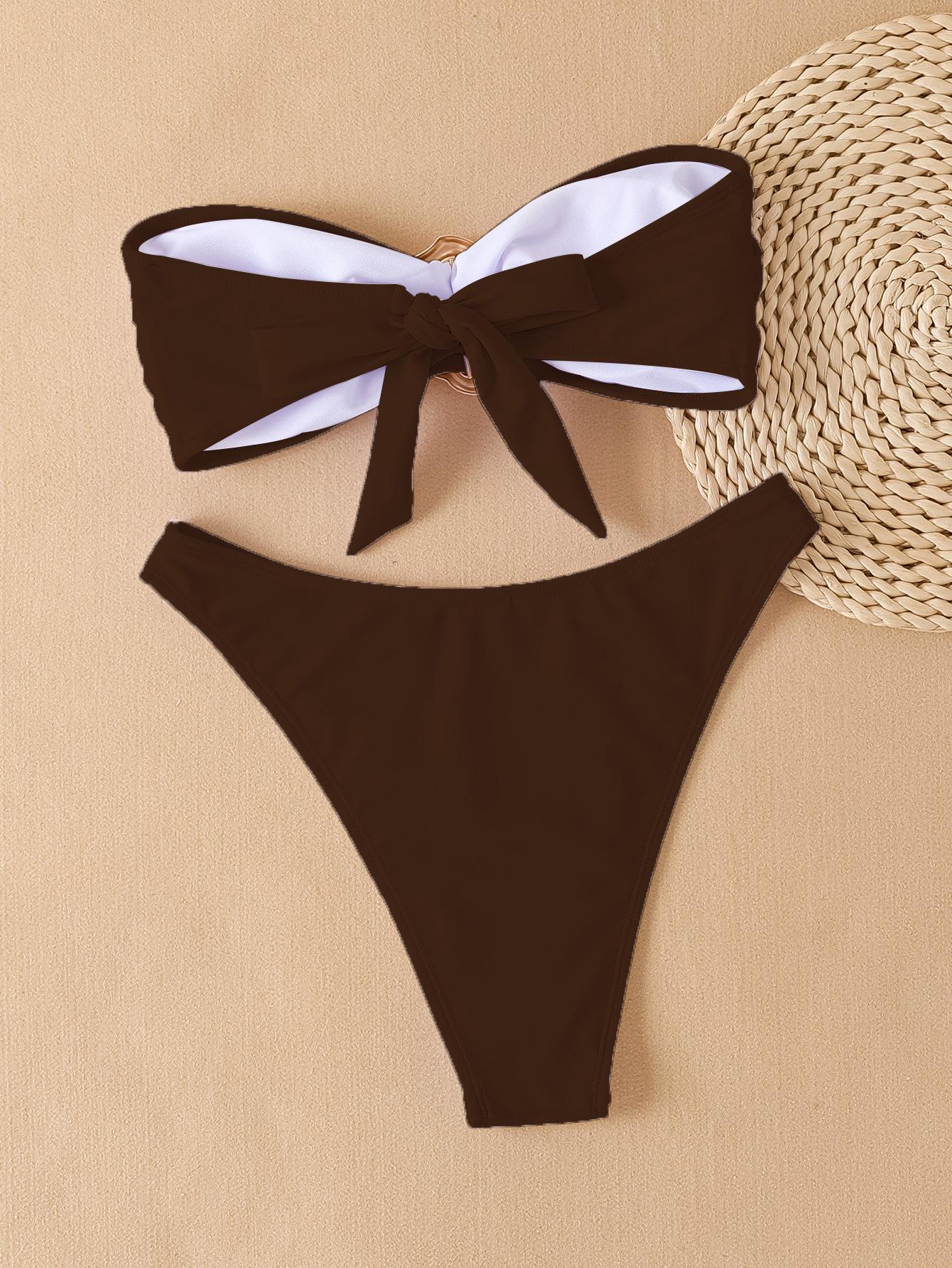 Bikini de estilo europeo y americano para mujer, traje de baño sexy con parte superior de tubo de color sólido, comercio transfronterizo, 2025