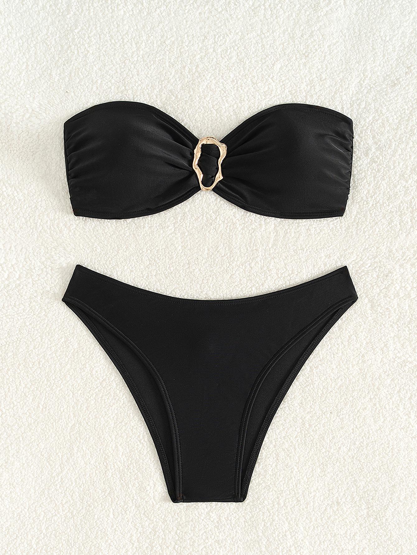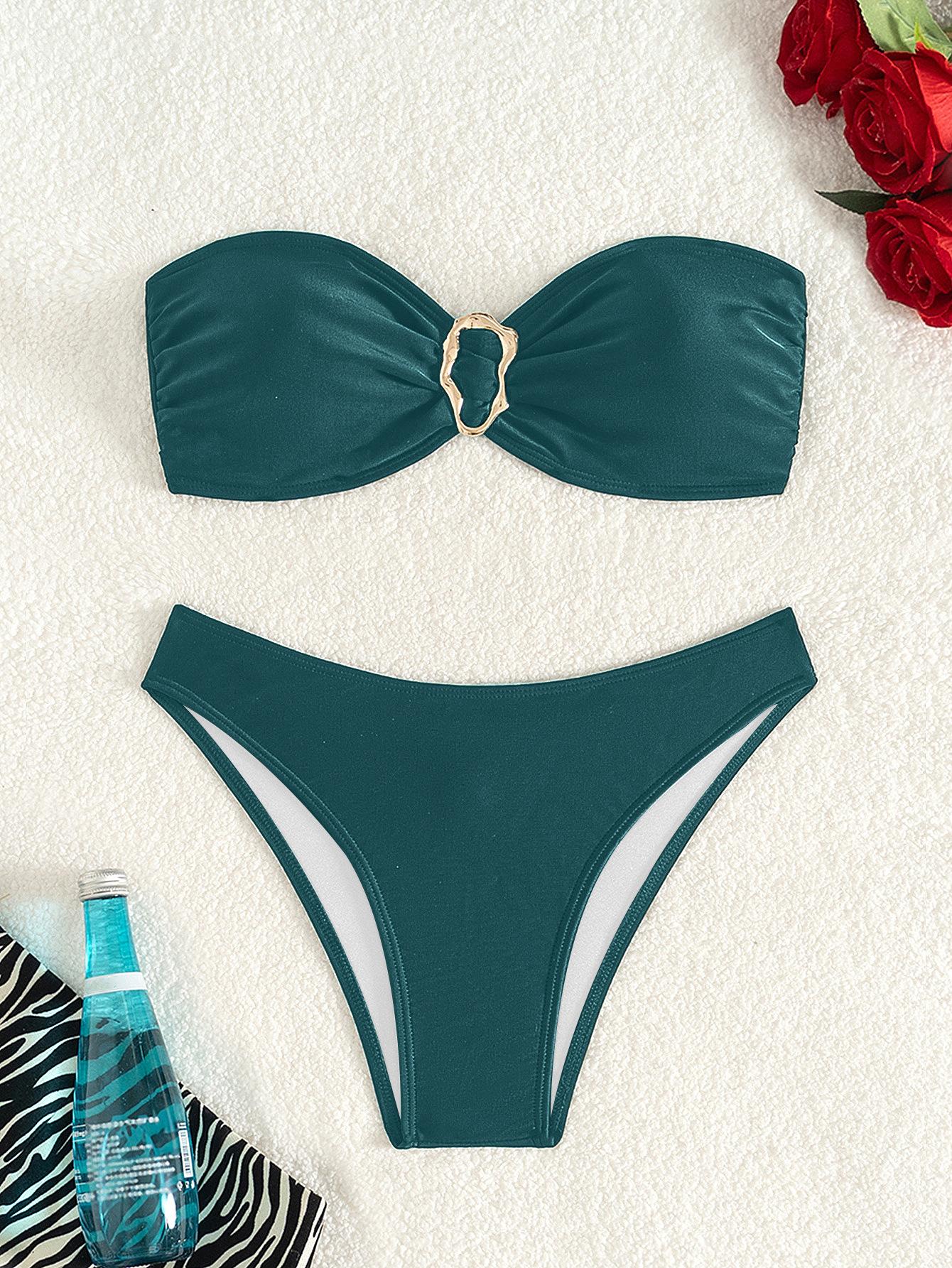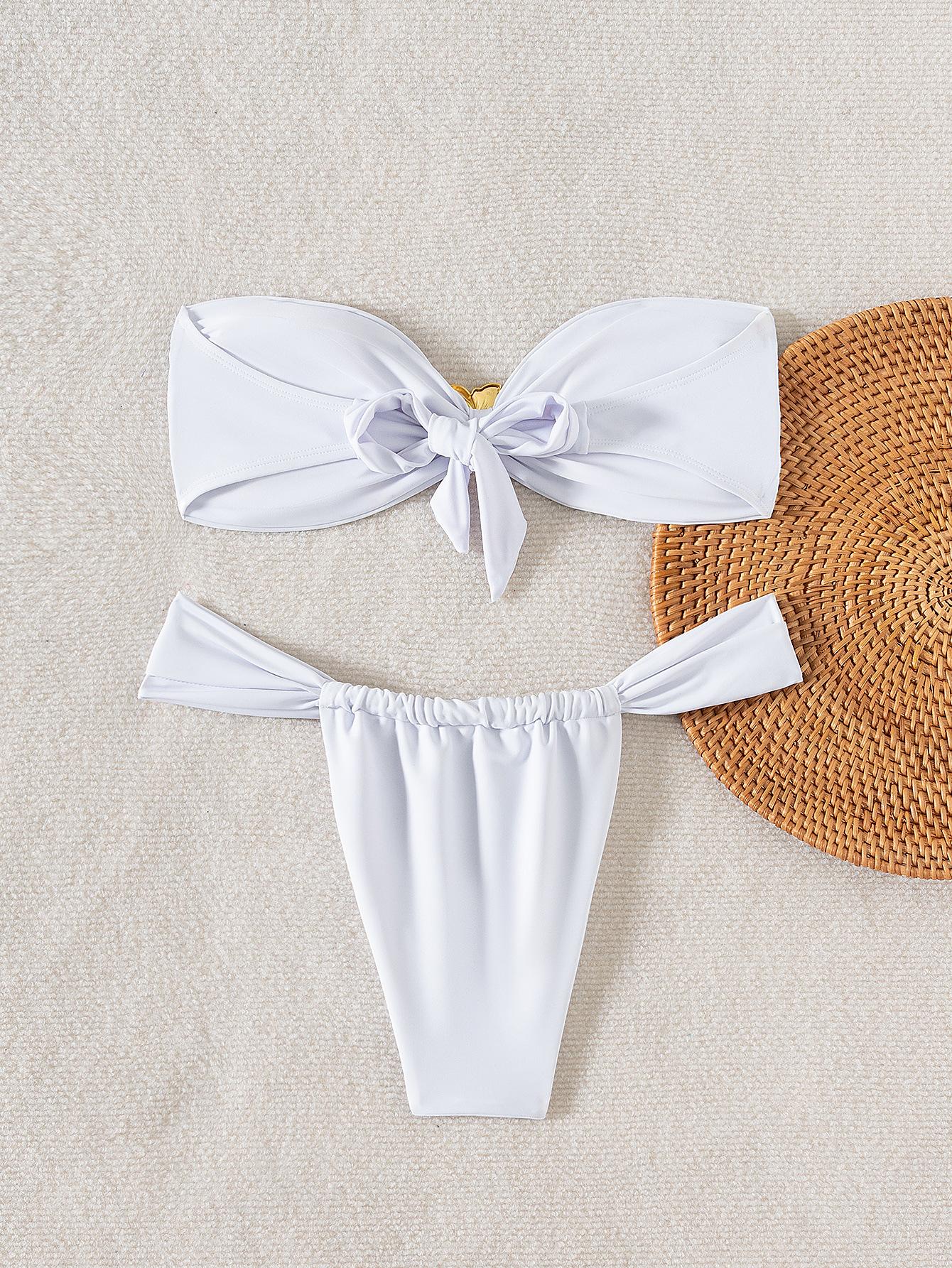 Bikini de estilo europeo y americano para mujer, traje de baño sexy con parte superior de tubo de color sólido, comercio transfronterizo, 2025
