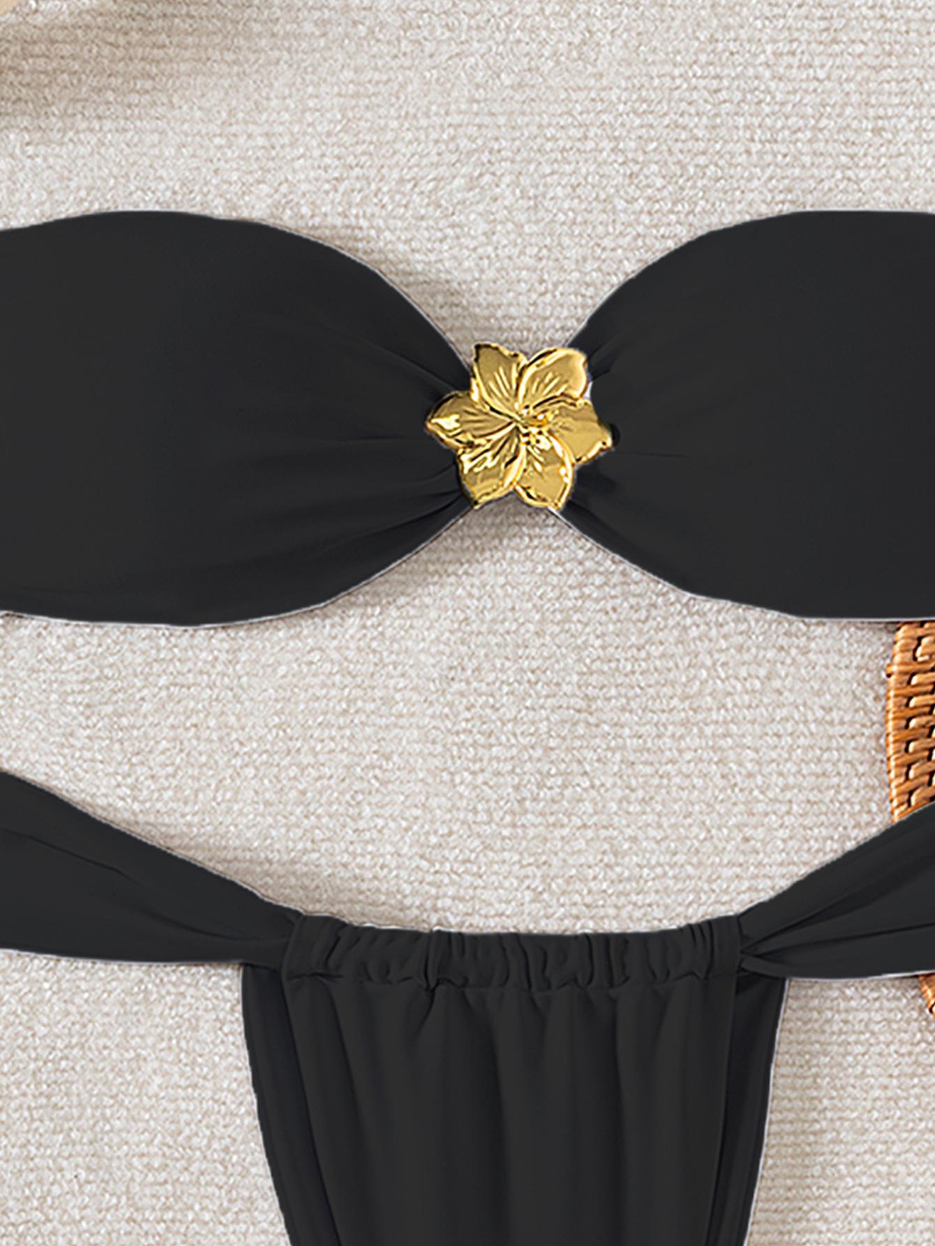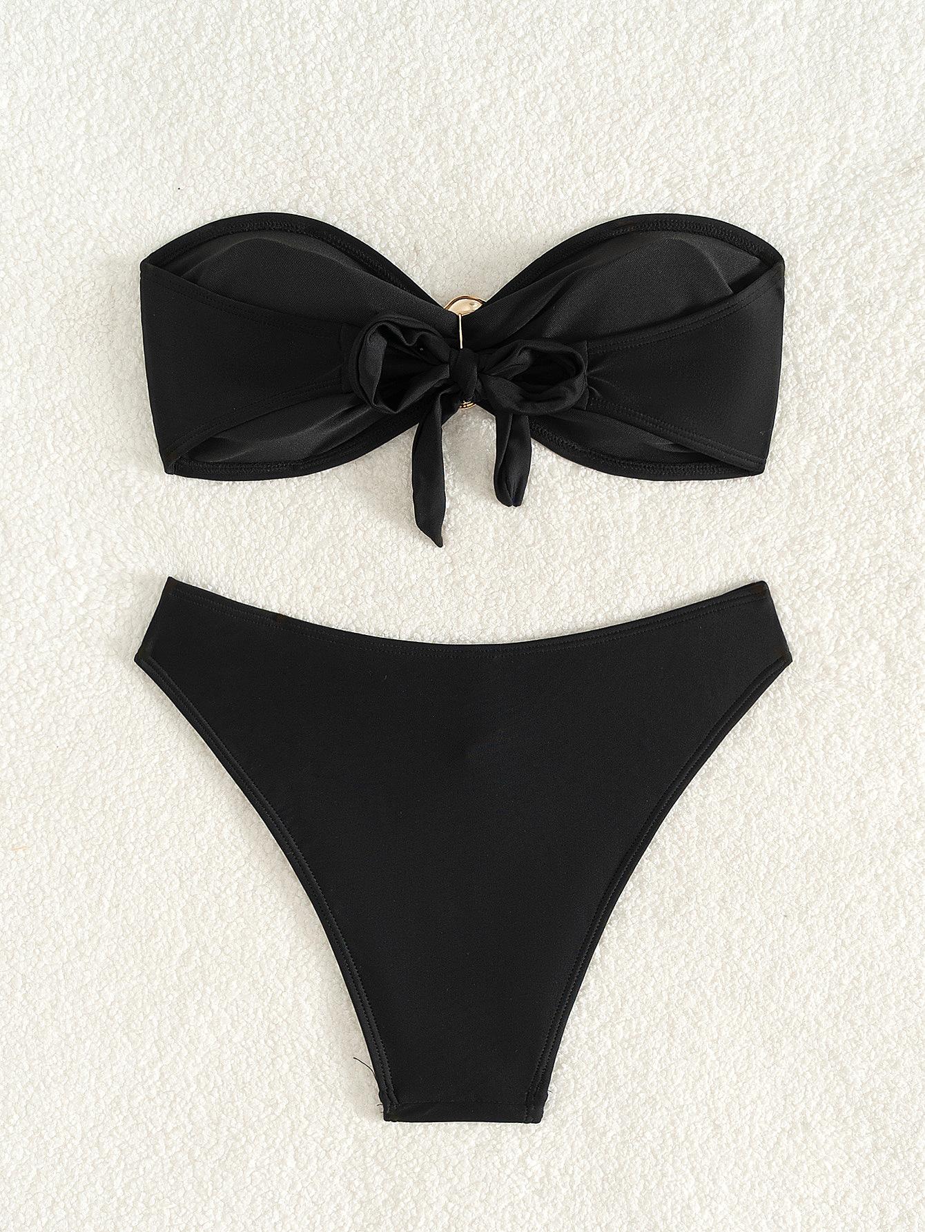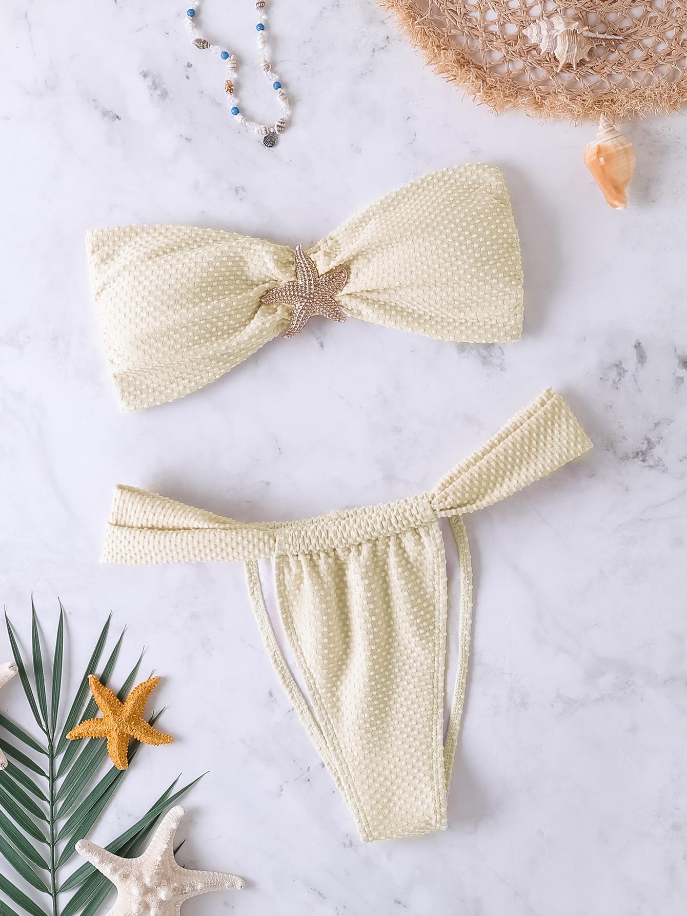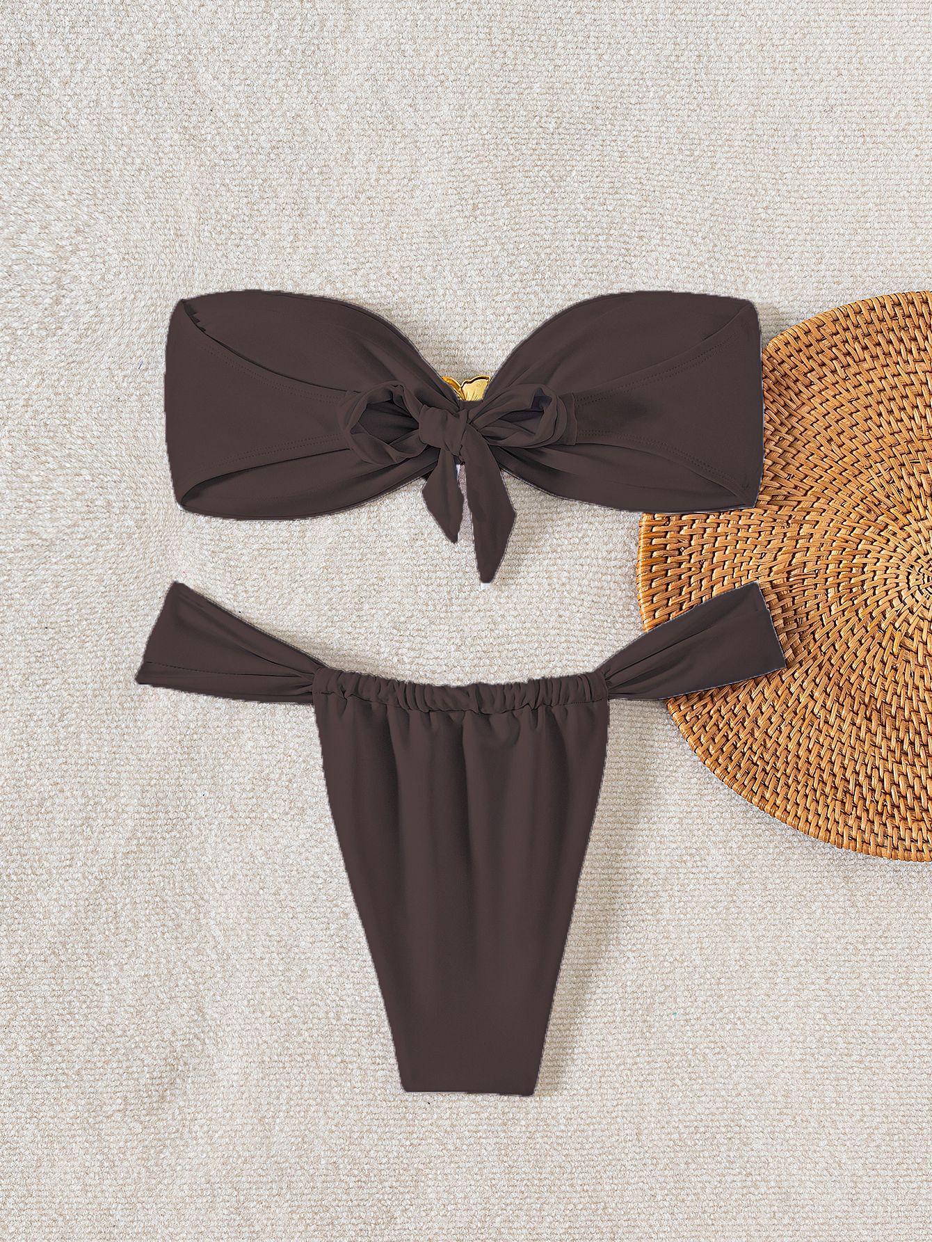 Bikini de estilo europeo y americano para mujer, traje de baño sexy con parte superior de tubo de color sólido, comercio transfronterizo, 2025