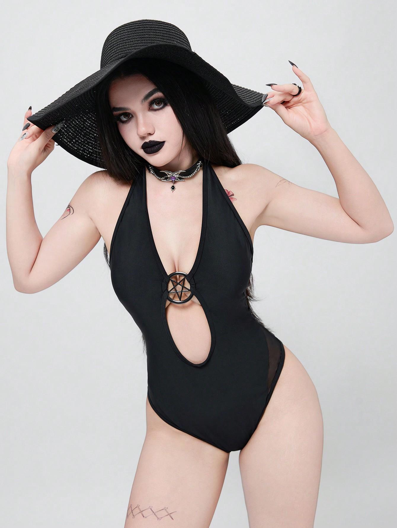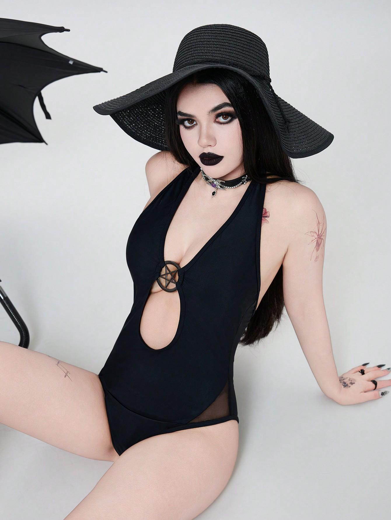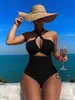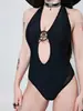 Traje de Baño Sexy Halter de Una Pieza con Tirantes y Decoración para Aguas Termales
