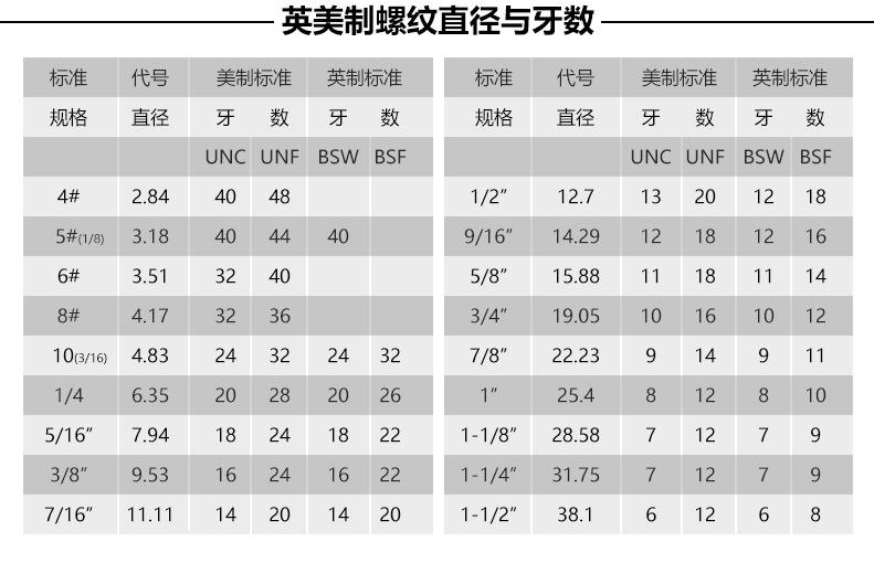 8#-32*1(10 only), 8#-32*3/4(50), 8#-32*5/8(50), 8#-32*1/4(50)