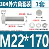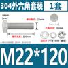 Juego de tornillos y tuercas hexagonales exteriores de acero inoxidable 304 M20/M22/M 24 Juego de tornillos Daquan