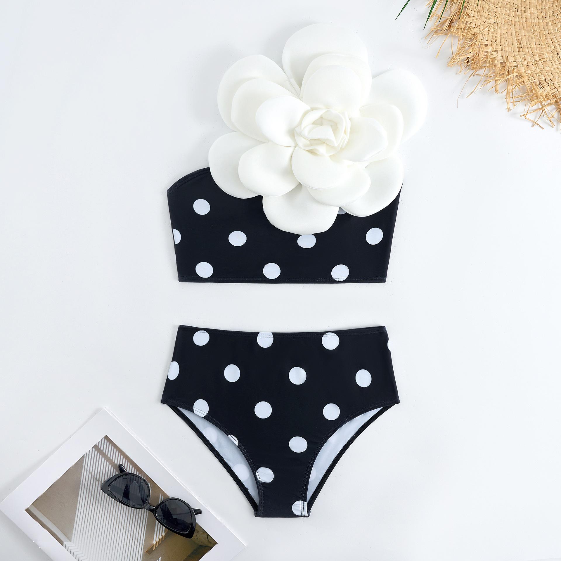 | Gran oferta 2025, nuevo estilo, traje de baño de una pieza con flores tridimensionales 3D para mujer, traje de baño con falda sexy retro francesa |