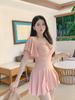| Qiaojiayuan 2025 nuevo traje de baño de una pieza para mujer, top de tubo con doble tirante, traje de baño de moda tridimensional rosa en 3D |