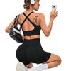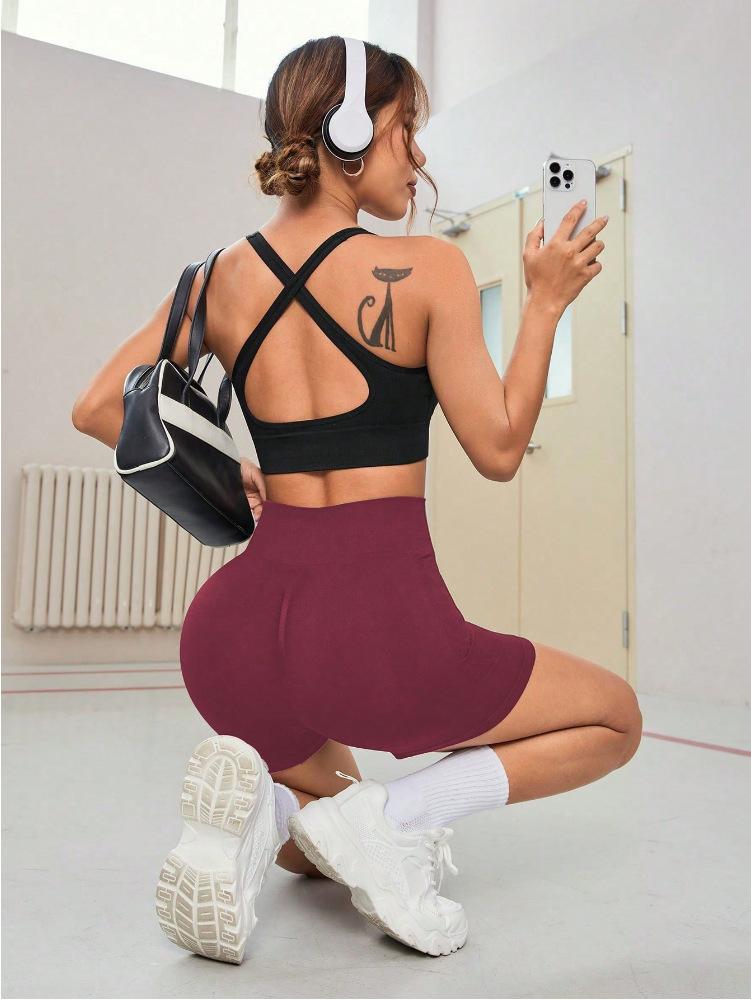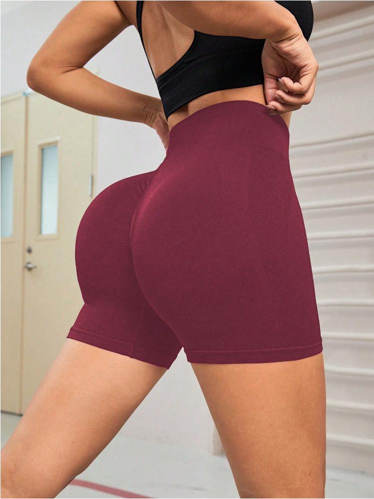 Pantalones cortos deportivos de fitness para mujer, transpirables, de tres puntos, de color melocotón, de punto sin costuras, transfronterizos, europeos y americanos