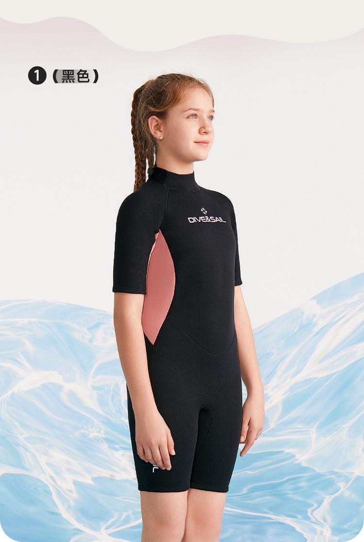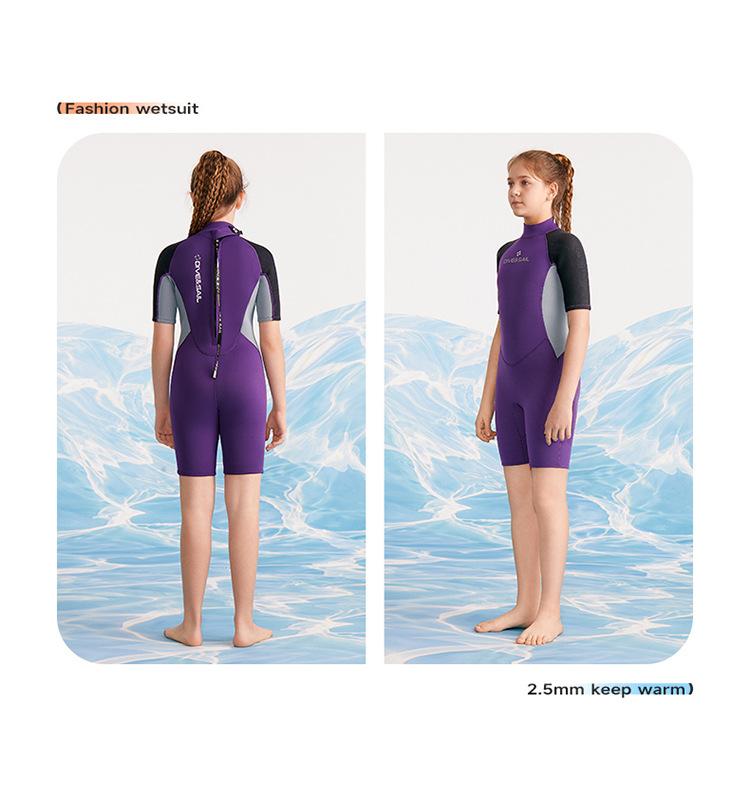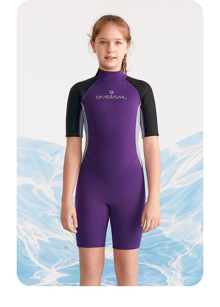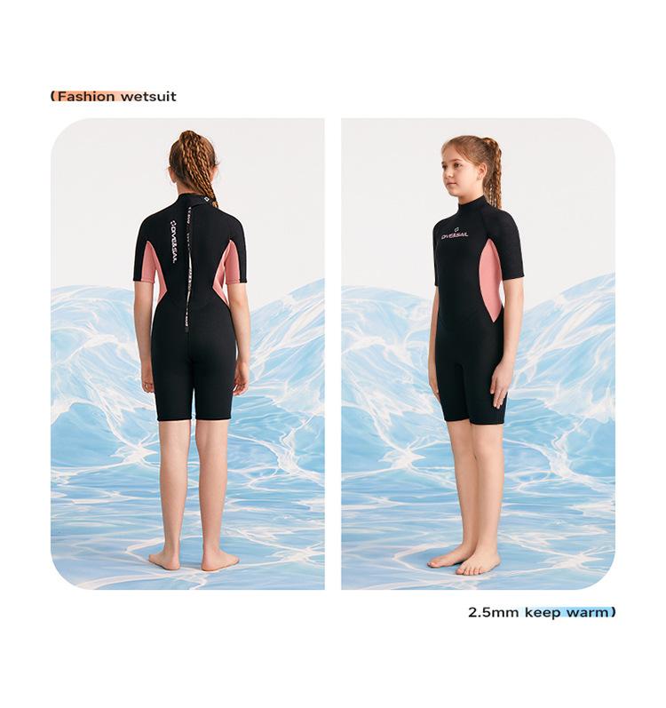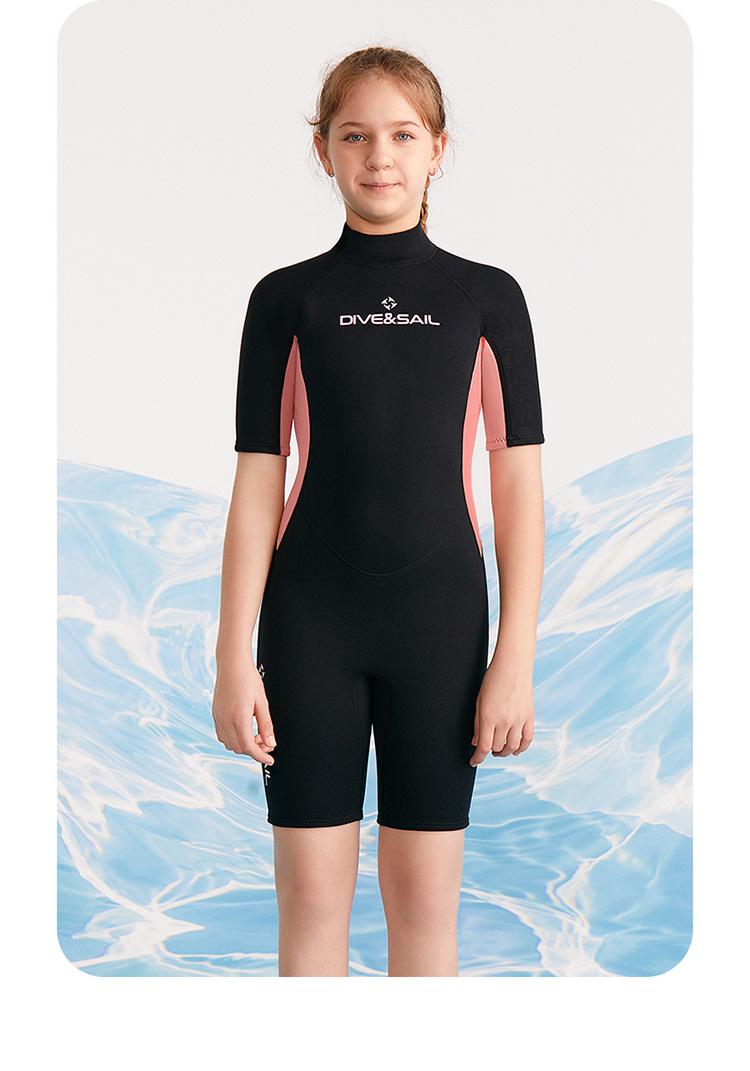 Traje de buceo para niños DIVE & SAIL de 2,5 mm, de una pieza, de manga corta, para niñas, para hacer esnórquel, surfear y protegerse del frío contra medusas.