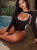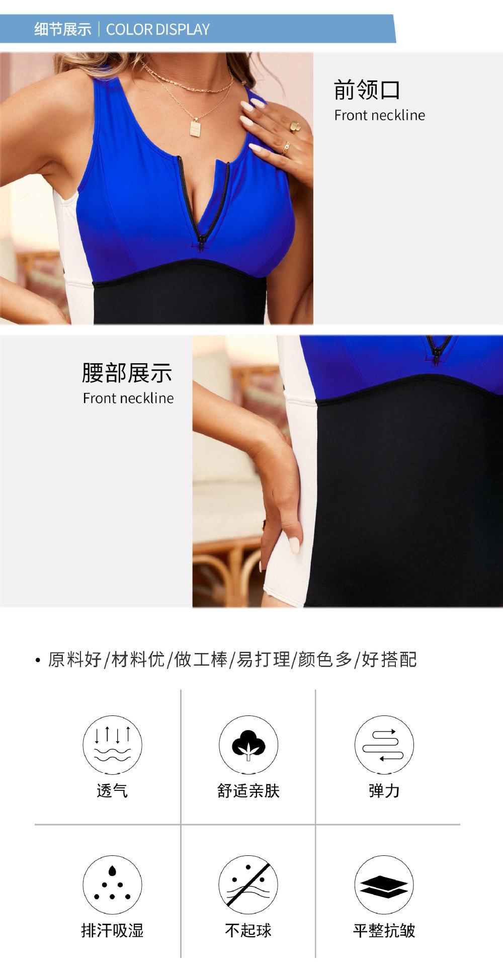 Traje de baño entero transfronterizo nuevo europeo y americano 2025 sexy con tirantes finos, cremallera, combinación de colores, deportivo, casual, combinación de colores