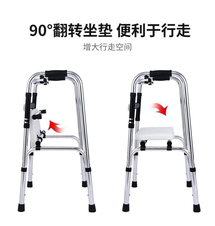 Andador de Acero Inoxidable Muletas para Ancianos Antideslizante Andador Multifuncional Dispositivo Auxiliar para Caminar Marco con Reposabrazos para Ancianos