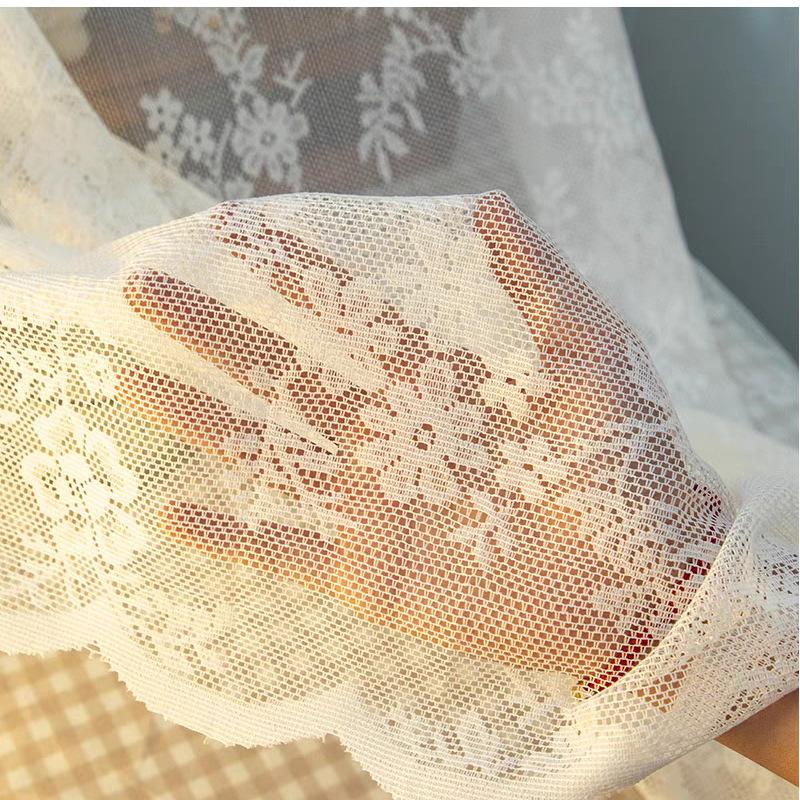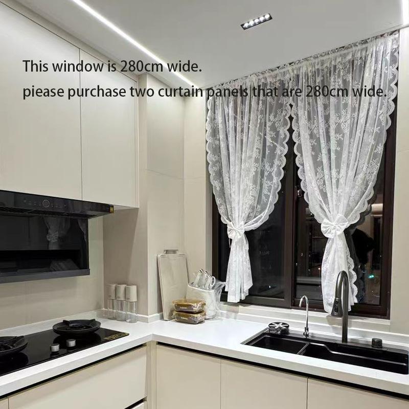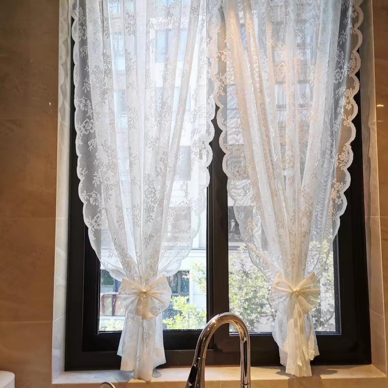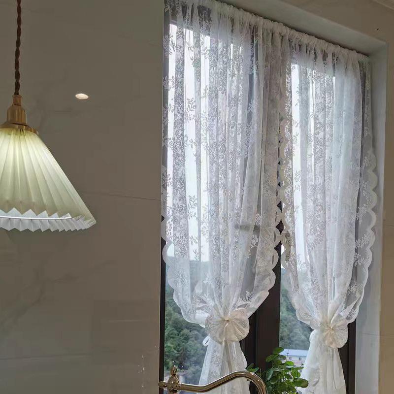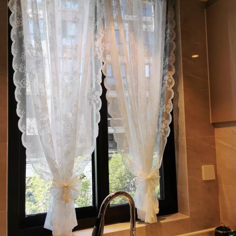 Cortina Blanca Media Cortina Corta Cortina Pequeña Tela de Encaje Cortina de Puerta Cortina de Gabinete Ola Cortina Divisoria de Cocina Cortina Transparente Estilo Ins