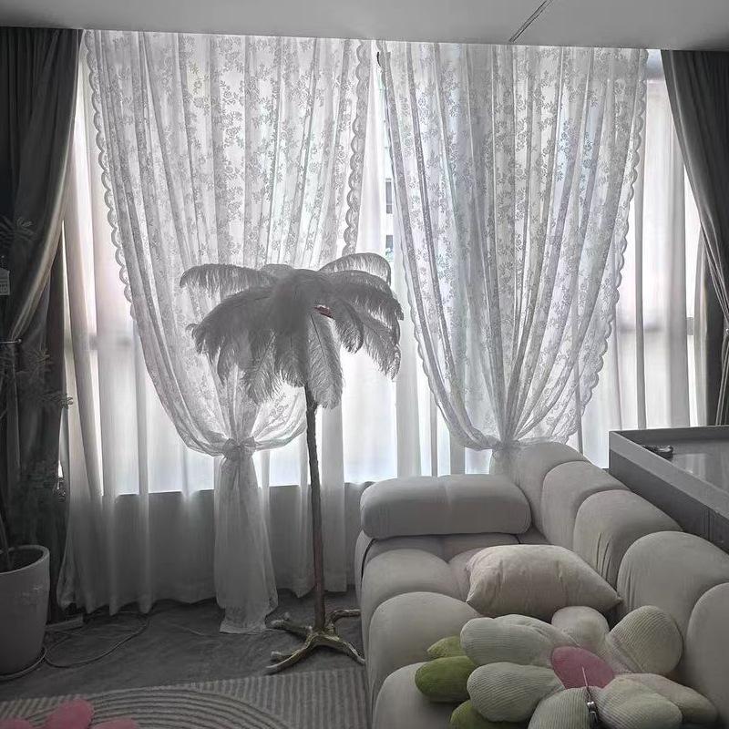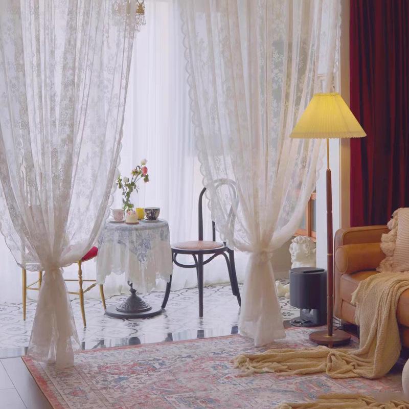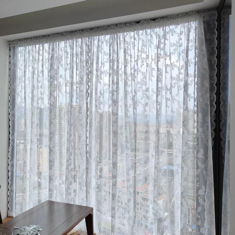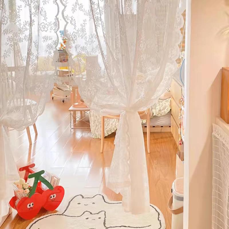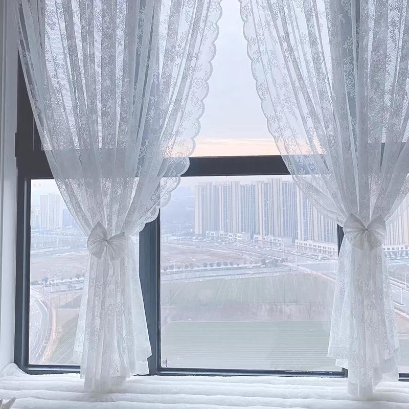 Cortina Blanca Media Cortina Corta Cortina Pequeña Tela de Encaje Cortina de Puerta Cortina de Gabinete Ola Cortina Divisoria de Cocina Cortina Transparente Estilo Ins