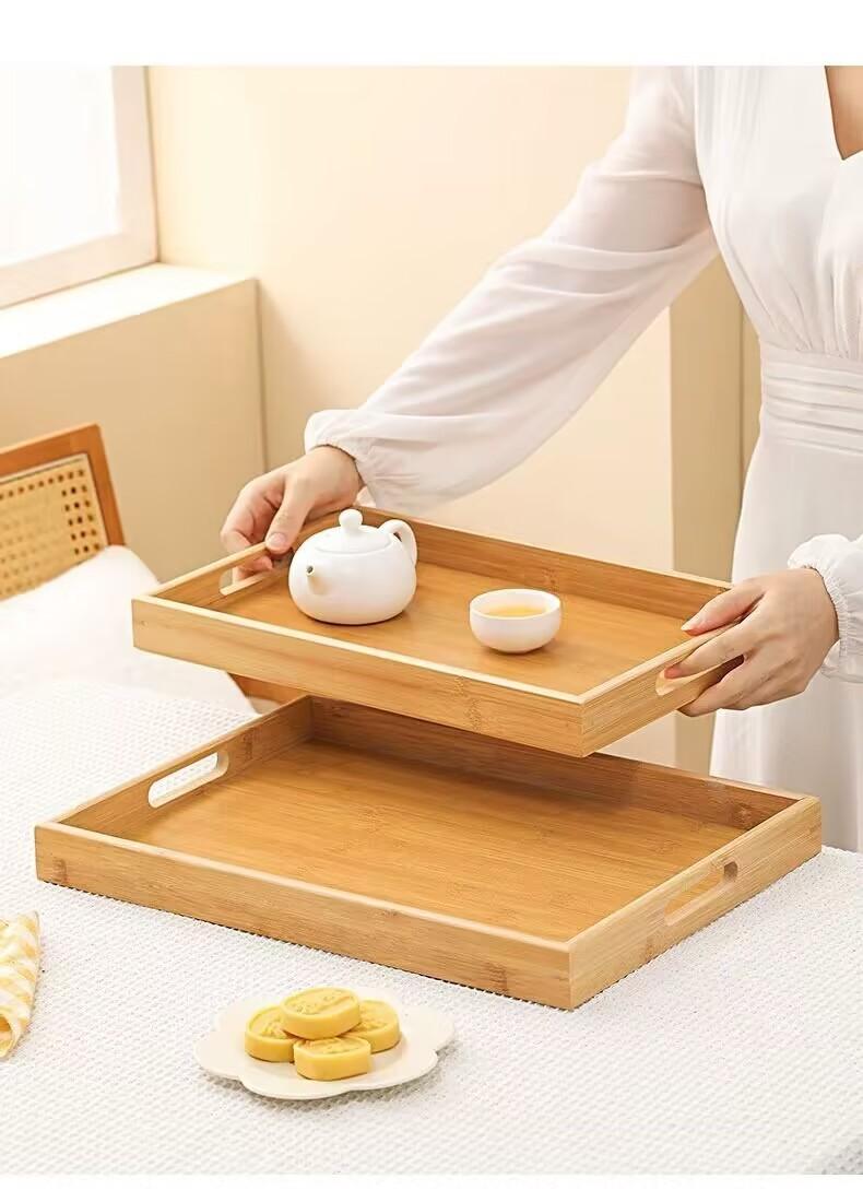Bandeja de bambú, bandeja de té, estilo japonés, bandeja rectangular para taza de agua, de madera, para dulces, hotel, restaurante, juego de té, juego de repostería, simple