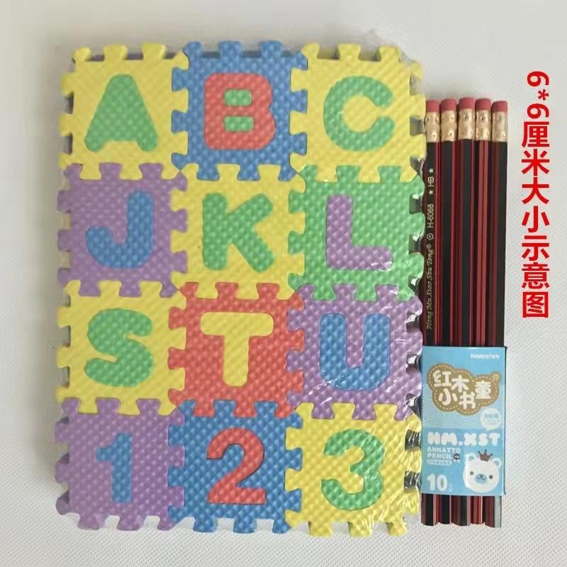 Una pieza pequeña mide aproximadamente 6 cm, y un paquete contiene 36 piezas pequeñas, que consisten en 26 letras y los números 0-9. Cada paquete es igual, pero los colores se envían aleatoriamente.