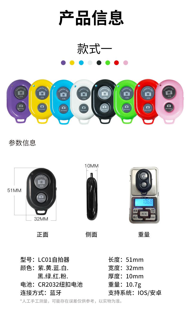 Fuente fabricantes Bluetooth selfie Android / IOS obturador remoto inalámbrico universal teléfono móvil Bluetooth selfie control remoto