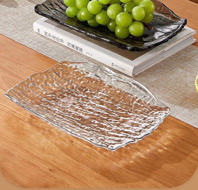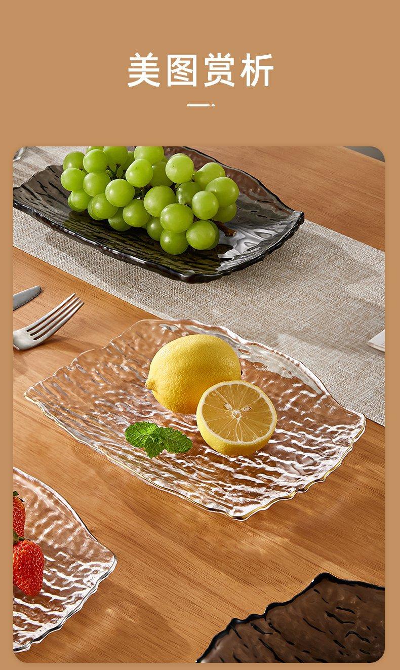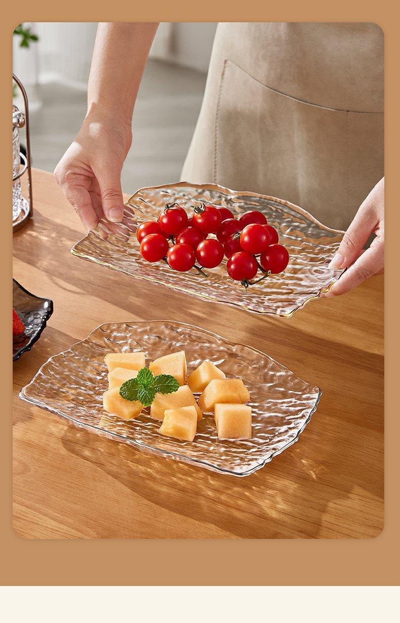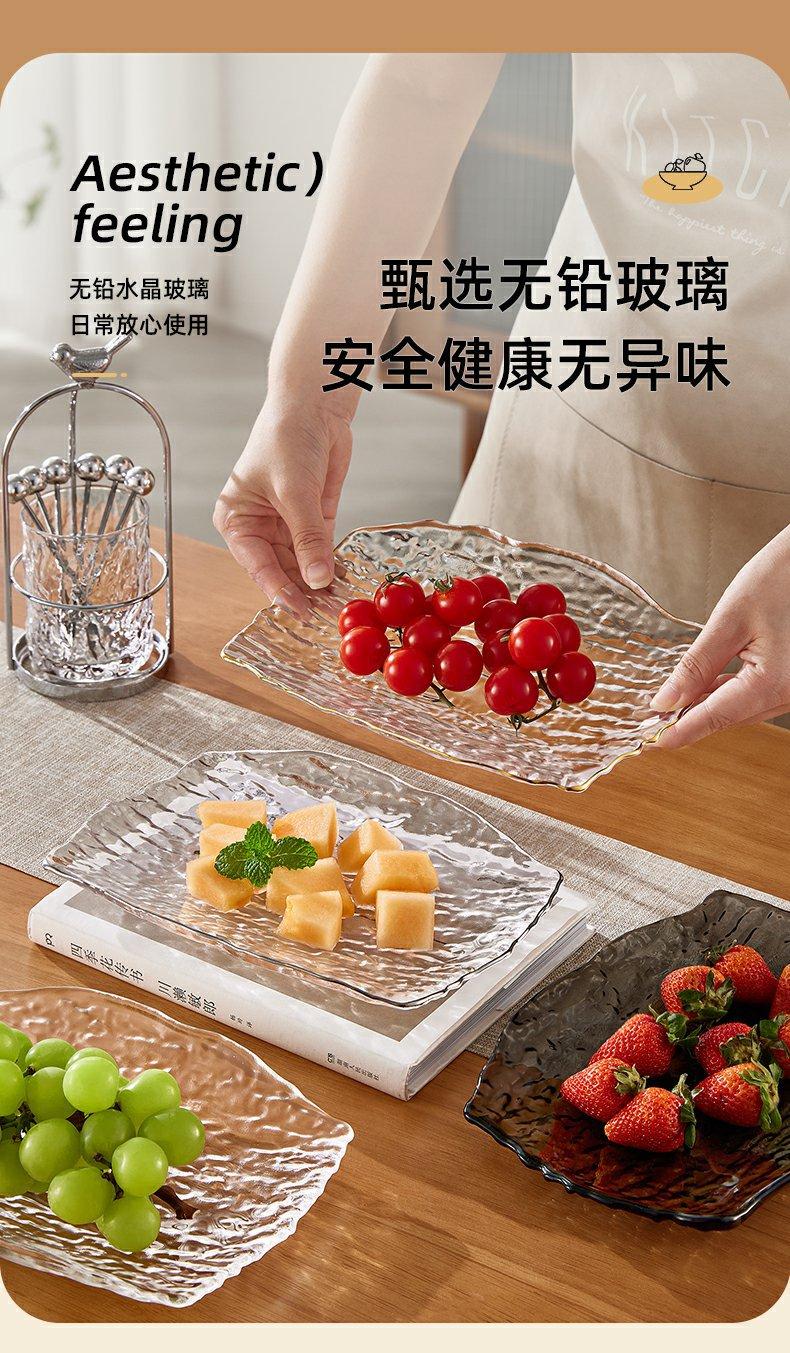 Plato de fruta de lujo ligero para el hogar, sala de estar, bandeja rectangular de cristal, plato de ensalada refinado, plato pequeño creativo en stock