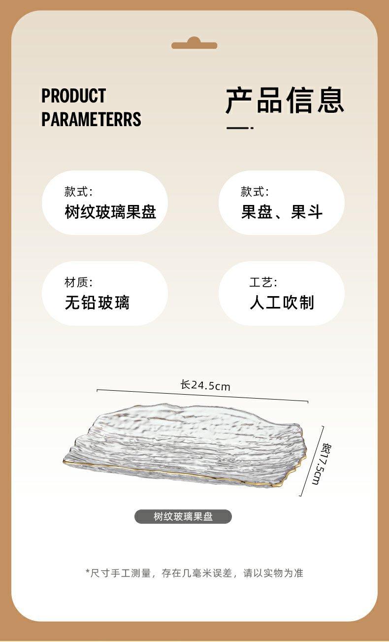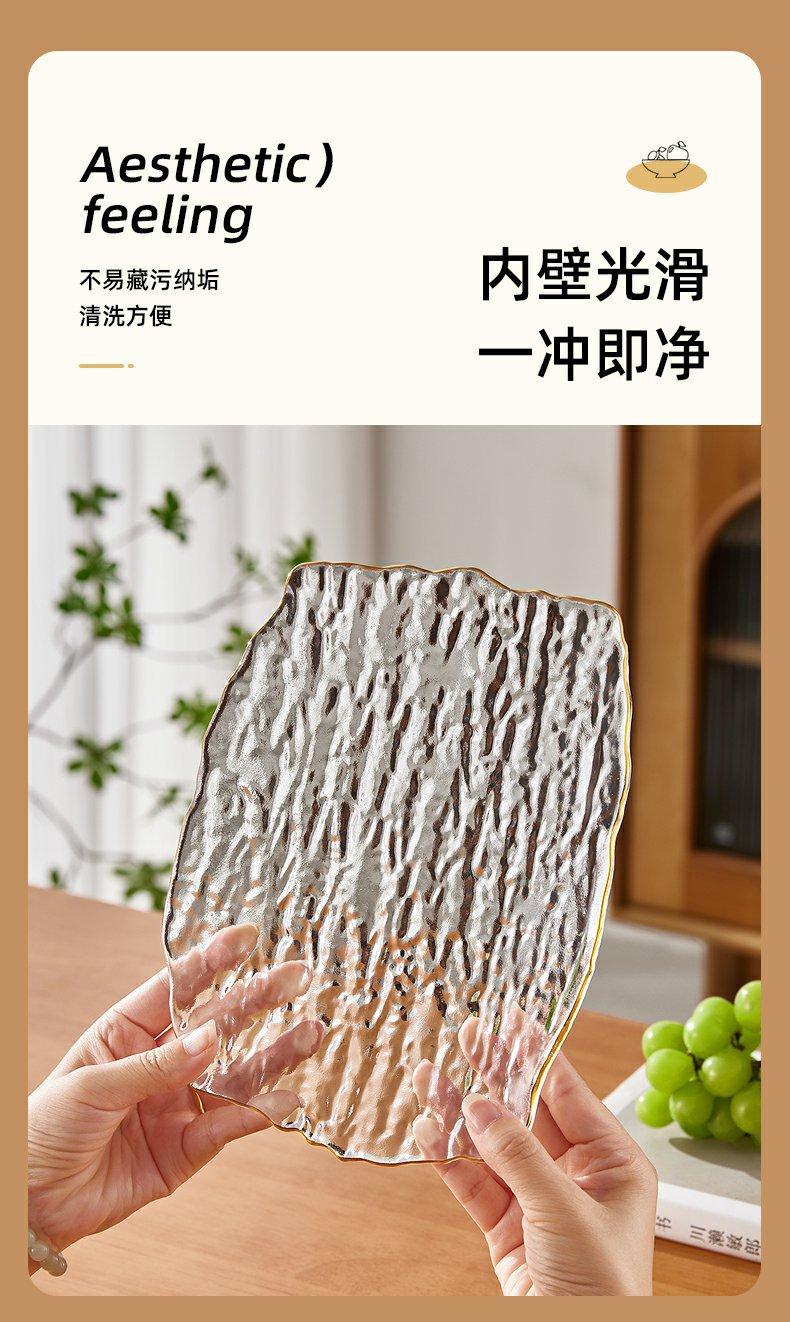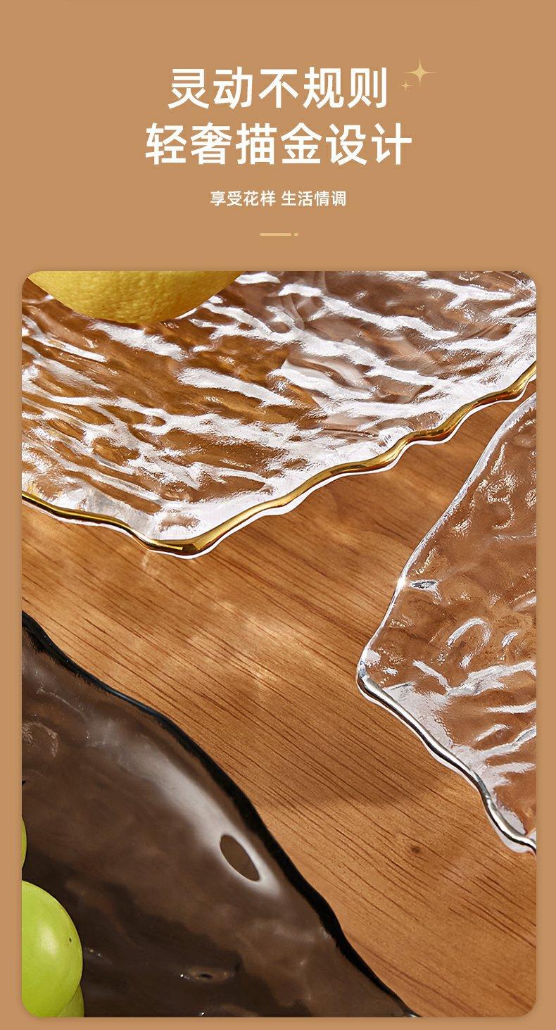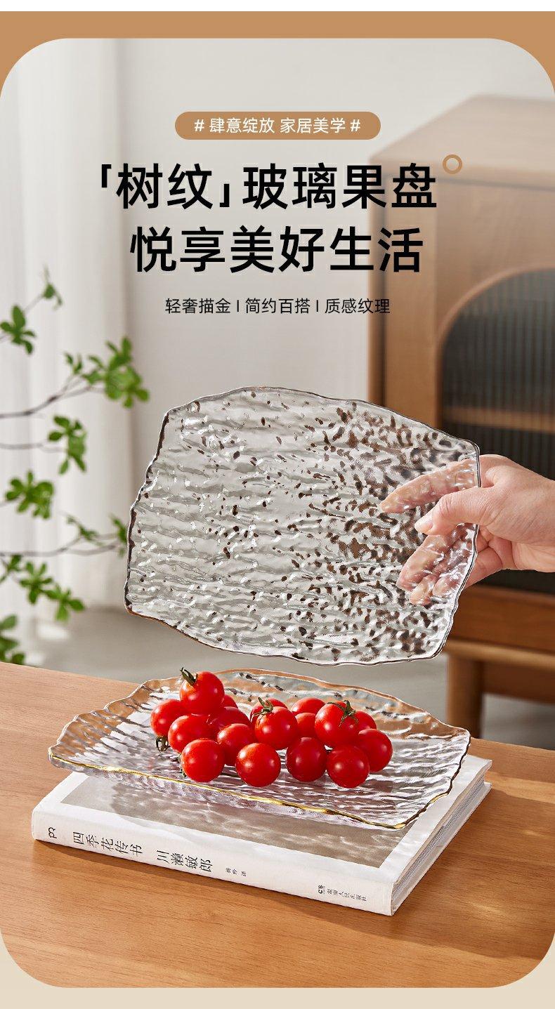 Plato de fruta de lujo ligero para el hogar, sala de estar, bandeja rectangular de cristal, plato de ensalada refinado, plato pequeño creativo en stock