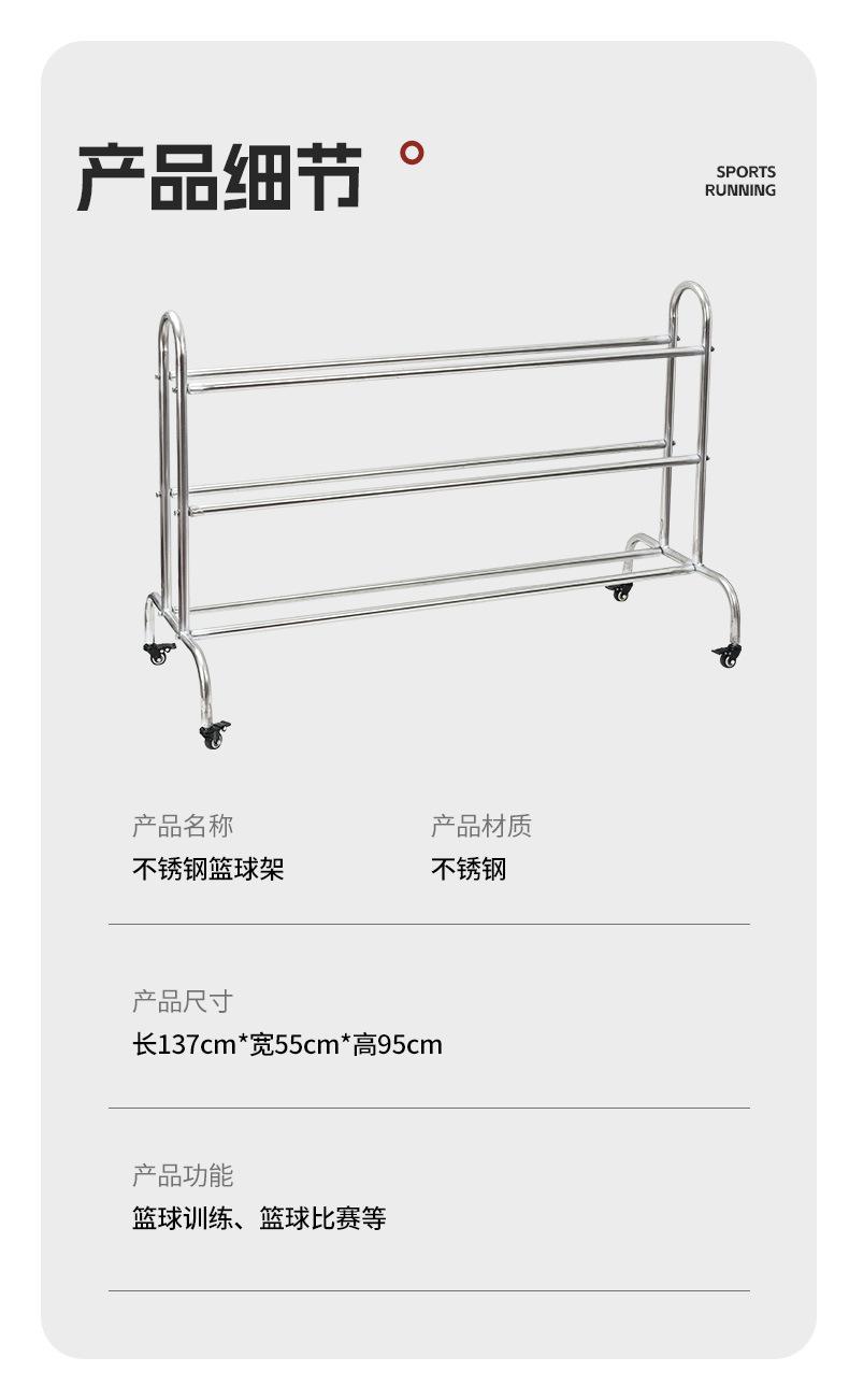 Three-layer stainless steel basketball cart, Single layer steel pipe basketball car