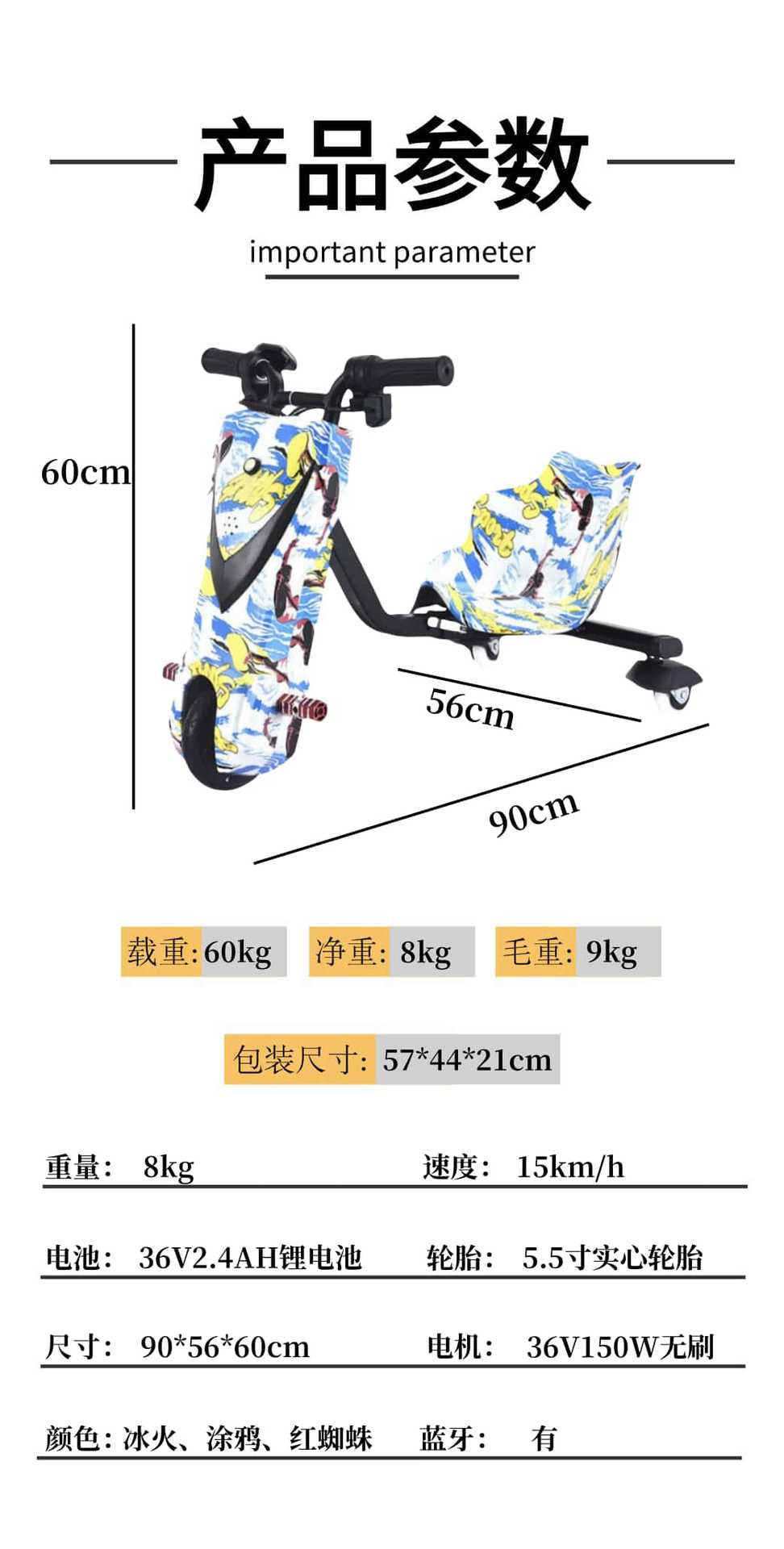 Coche eléctrico infantil de derrape de tres ruedas de fábrica coche de cola de pez kart alquiler de parque scooter triciclo de derrape