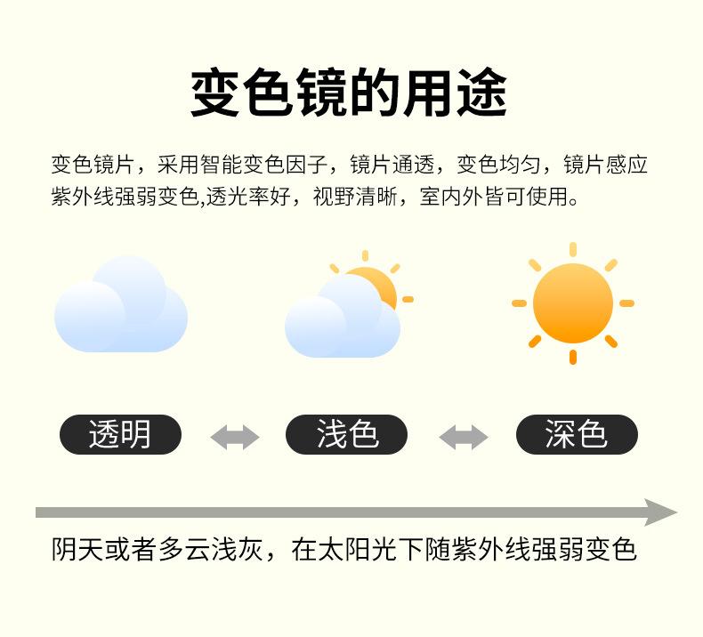 White frame color changing gray, photosensitive discoloration, available day and night, Black frame color chan...