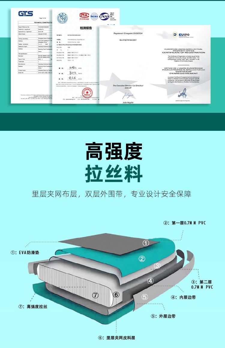 Reinforced space brushed cloth + 0.9mmpvc + anti-slip eva