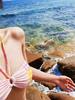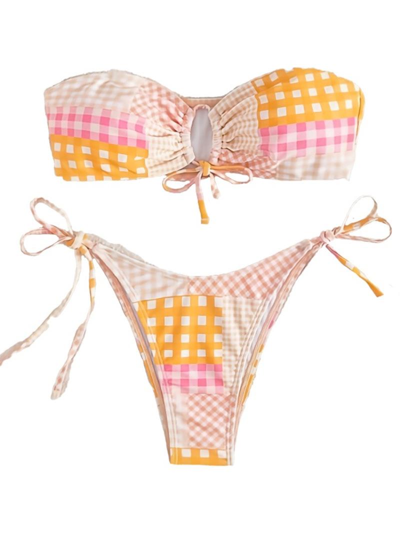 Traje de baño bikini para mujer sexy calzones sin espalda exportación pequeño fresco dividido para mujer playa aguas termales traje de baño