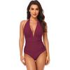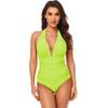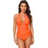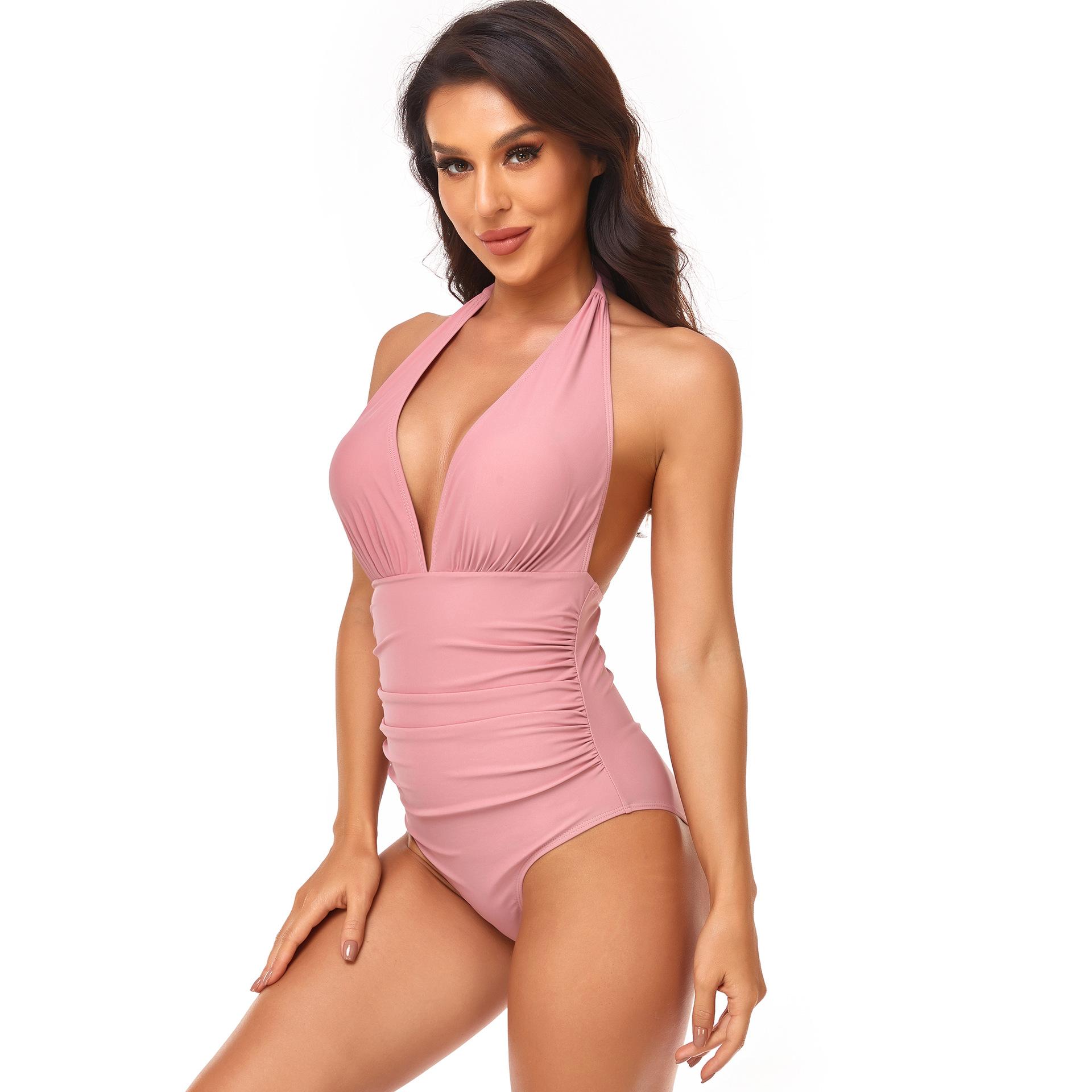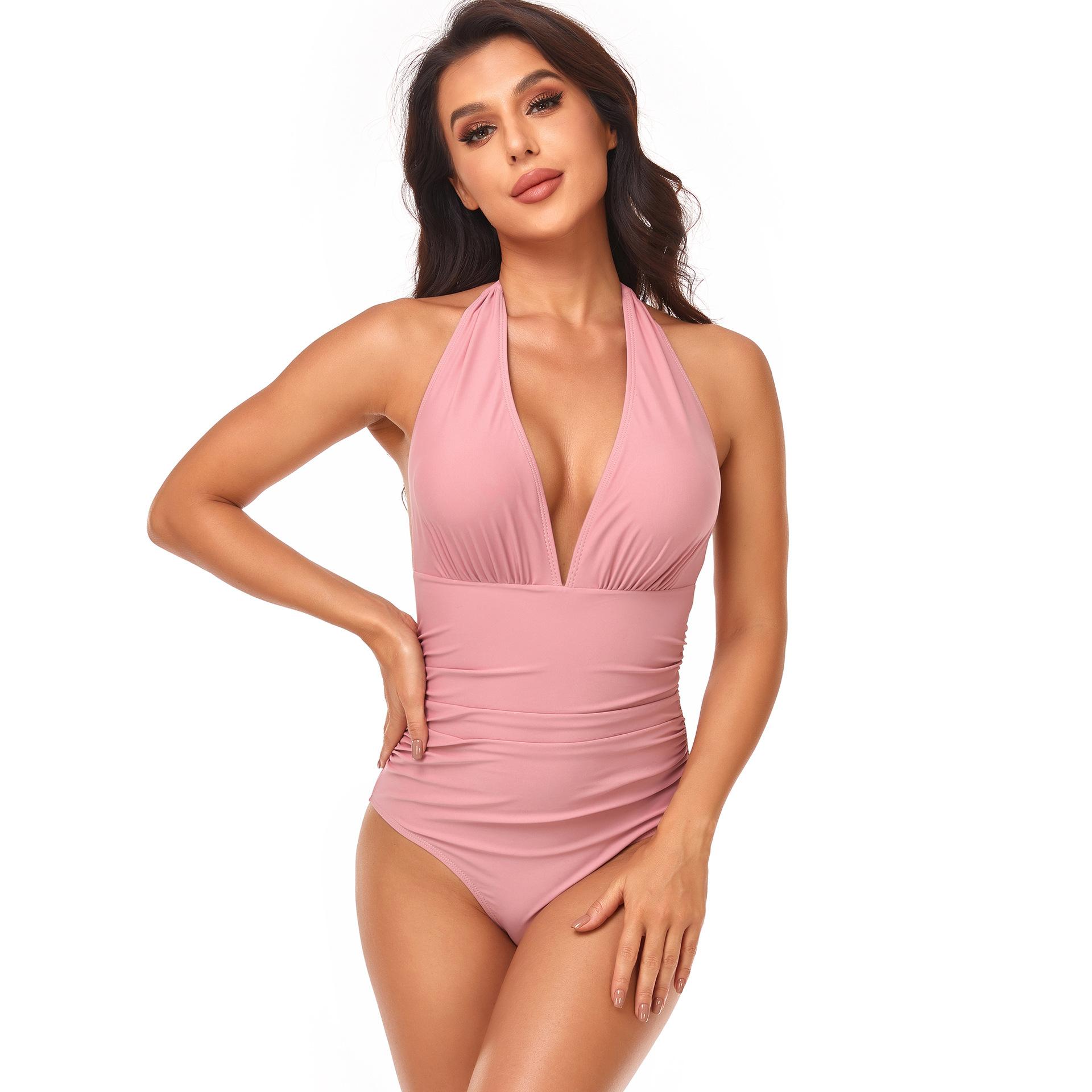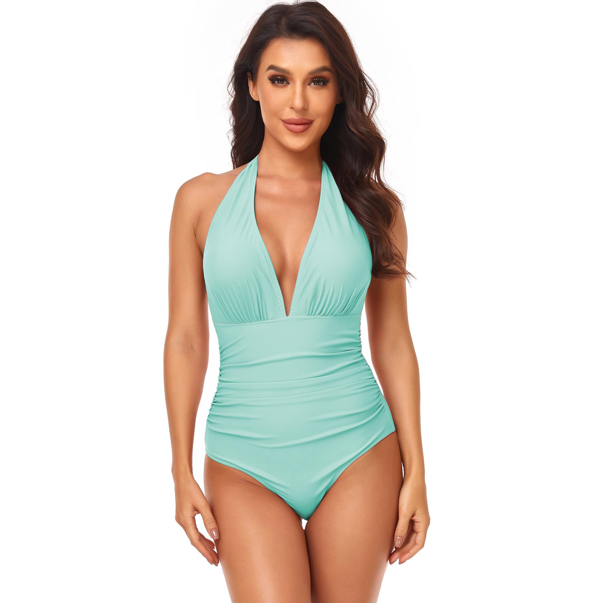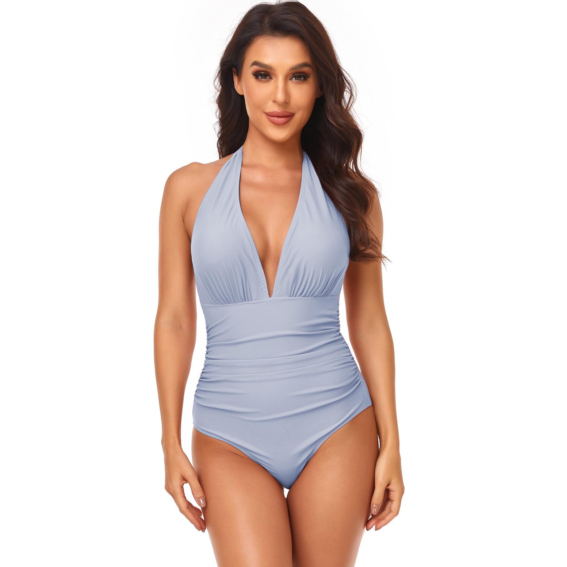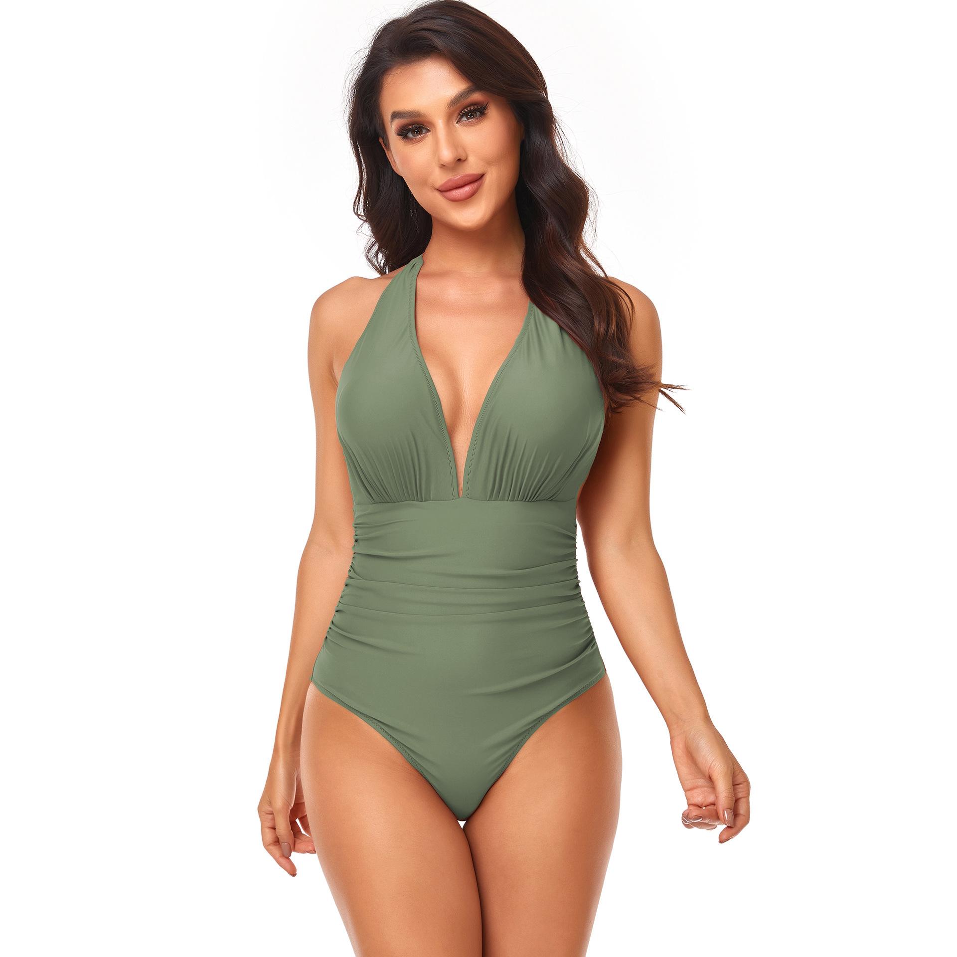 Traje de baño enterizo de color sólido nuevo 2023 Cuello plisado Traje de baño de comercio exterior Explosiones Amazon Traje de baño enterizo