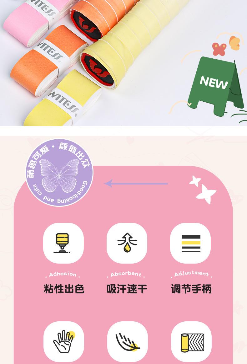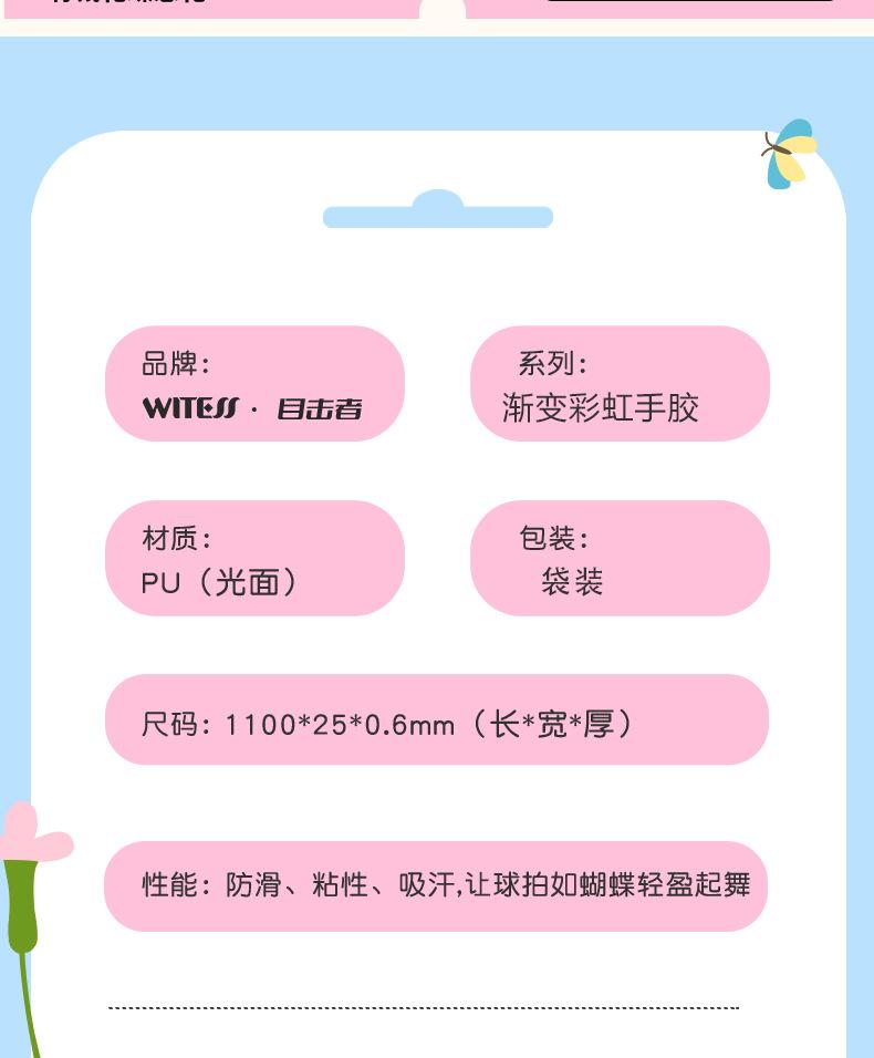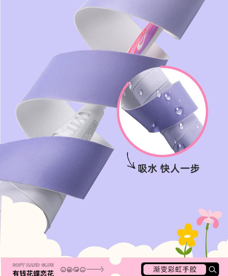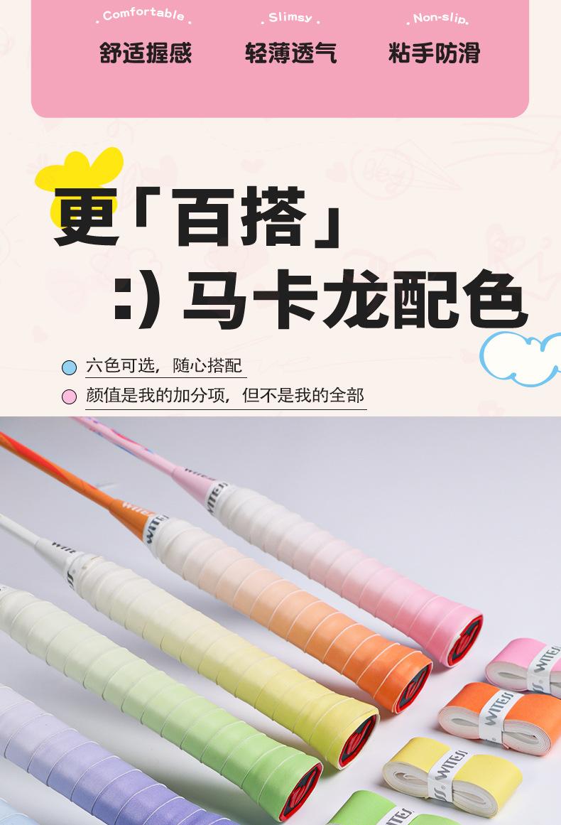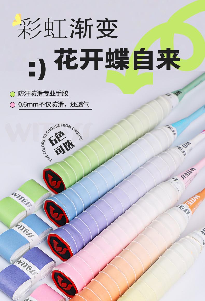 Raqueta de bádminton Witness Witness, color macarrón, con pegamento para manos, cinturón de sudor de PU, antideslizante, correa duradera con degradado