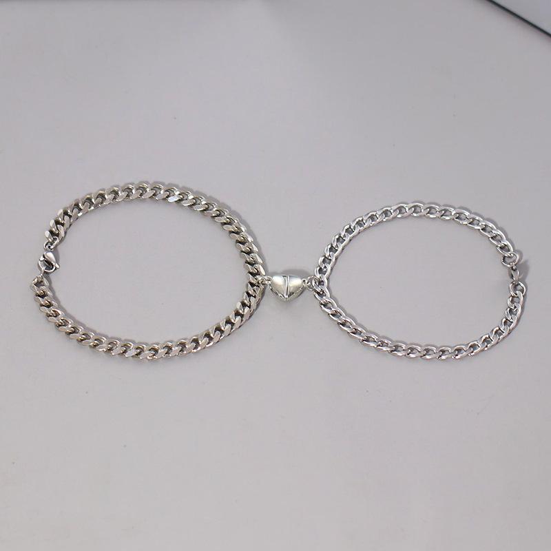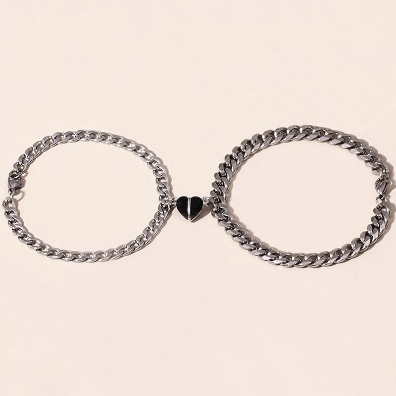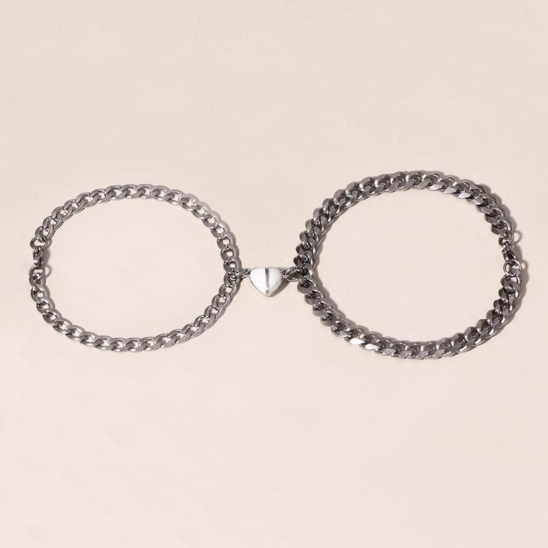 HJJ Pulsera transfronteriza nueva de acero de titanio personalidad simple blanco y negro melocotón amor magnético acero inoxidable pulsera de pareja al por mayor