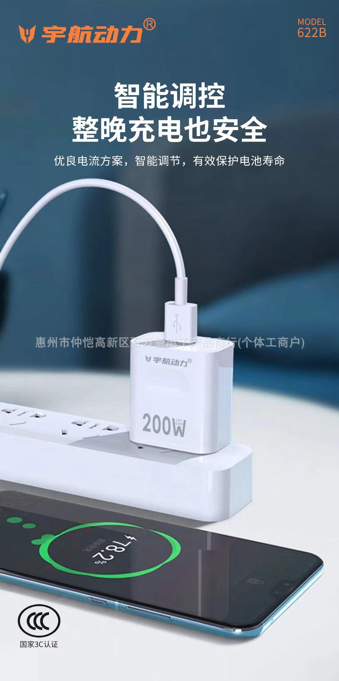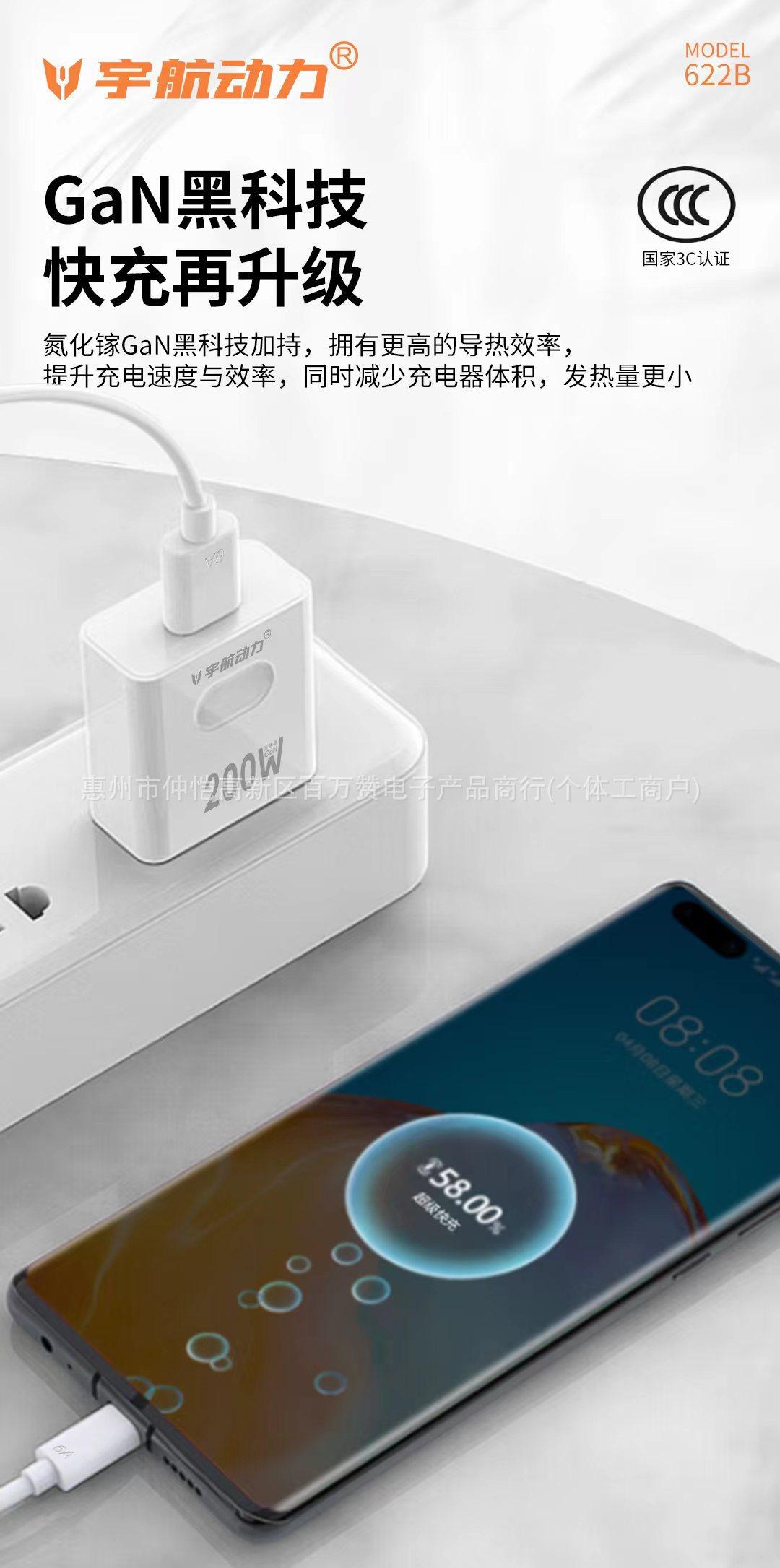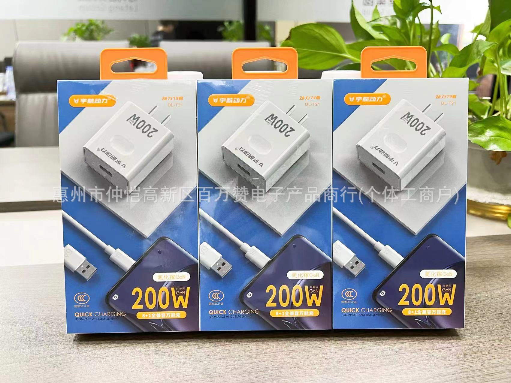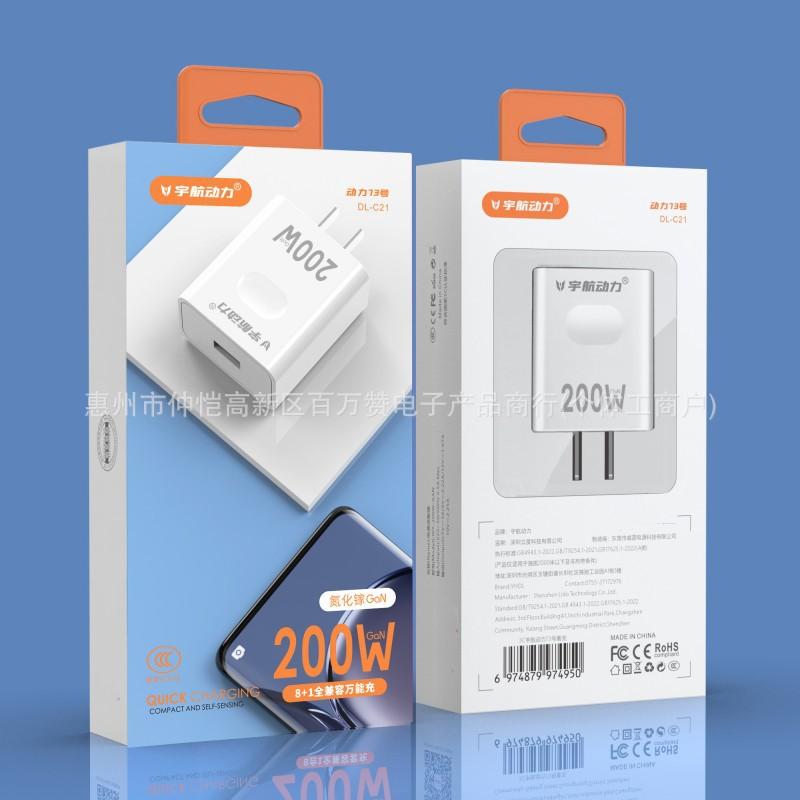 El cargador de carga rápida de nitruro de galio de 200 W totalmente compatible es adecuado para el cabezal de carga del teléfono móvil con carga flash Android Huawei Apple