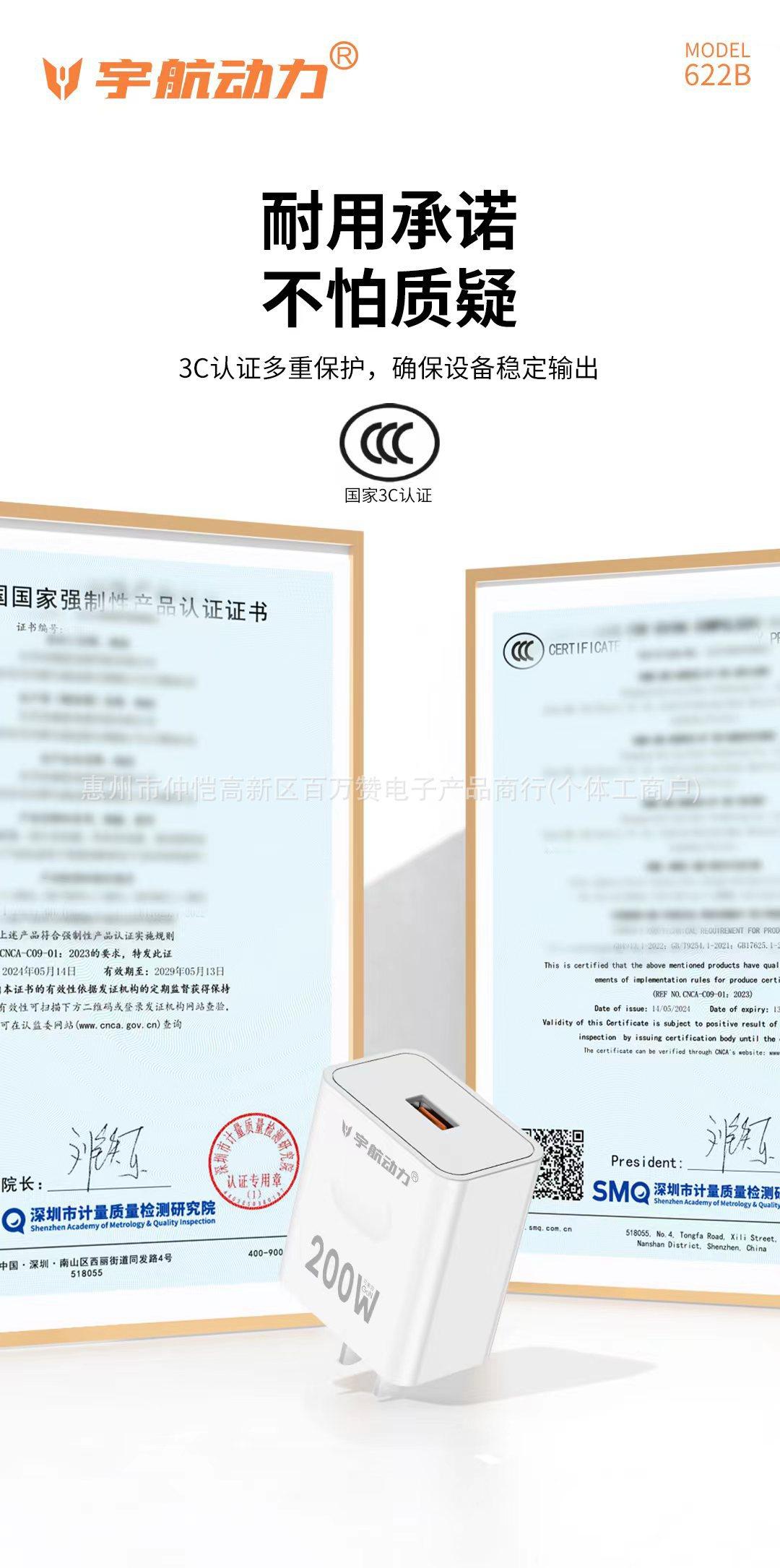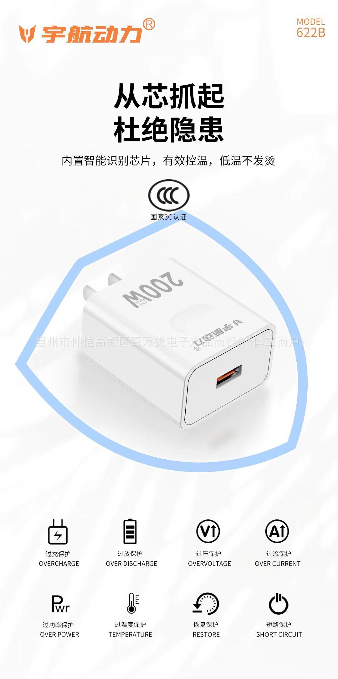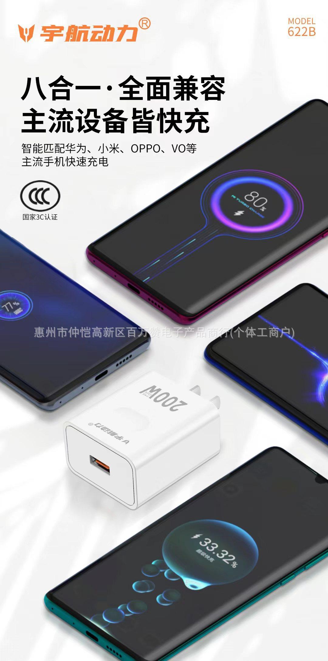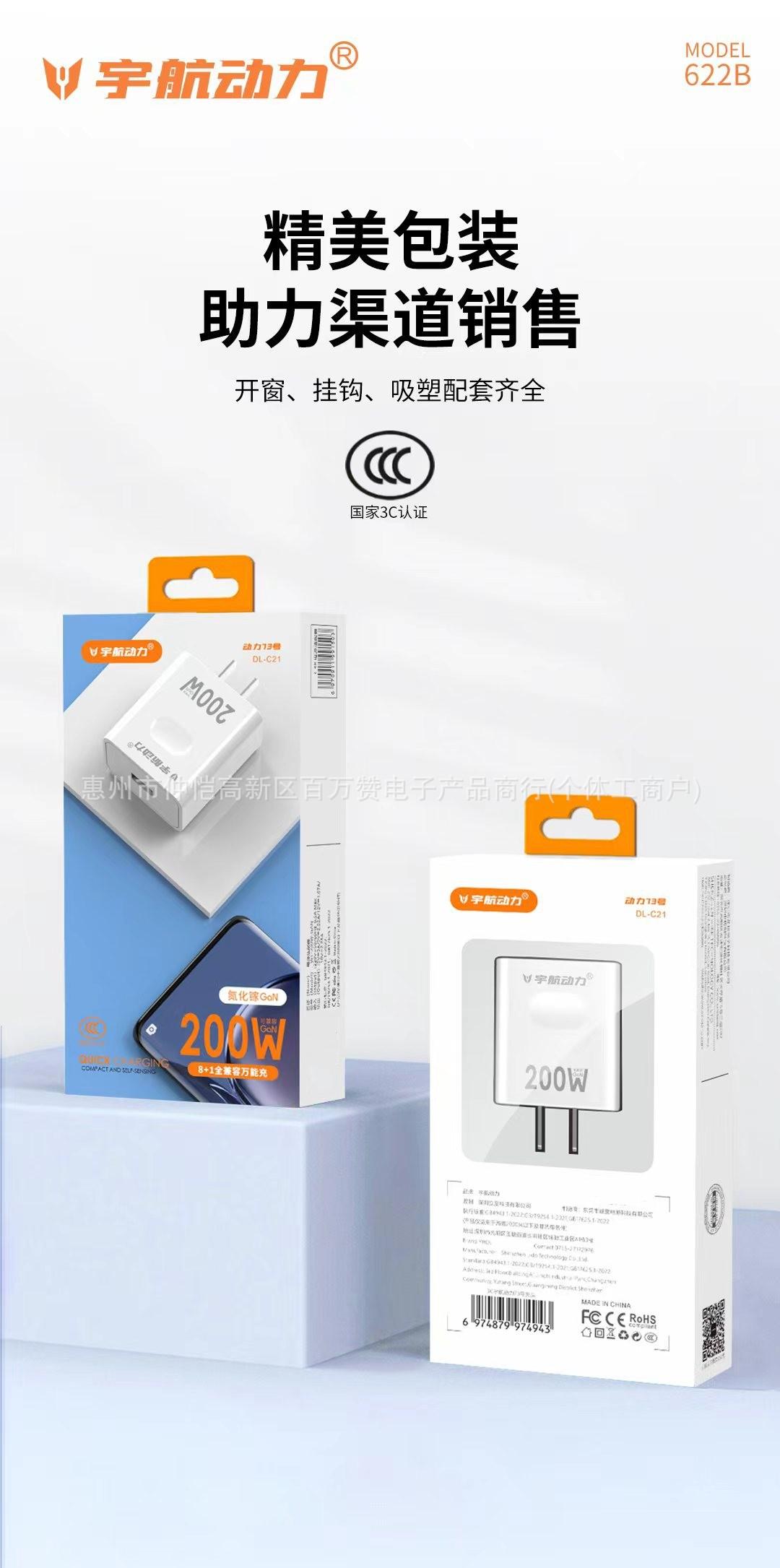 El cargador de carga rápida de nitruro de galio de 200 W totalmente compatible es adecuado para el cabezal de carga del teléfono móvil con carga flash Android Huawei Apple