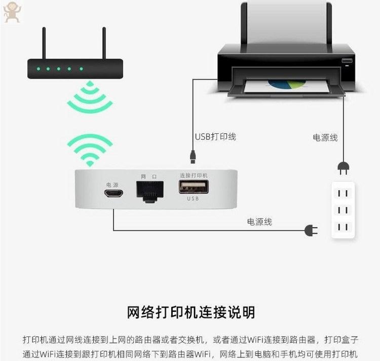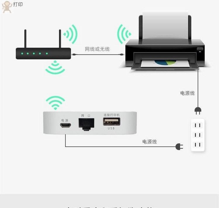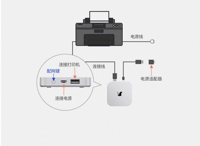 Impresora inalámbrica de caja blanca pequeña, dispositivo para compartir impresión inalámbrica, impresora, receptor inalámbrico, escaneo, caja en la nube