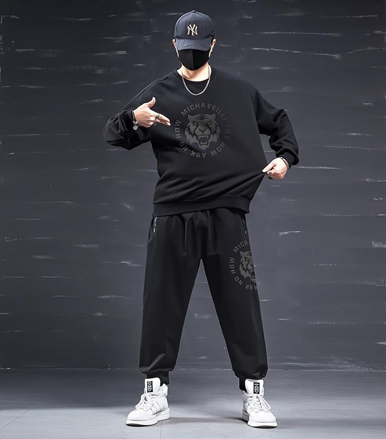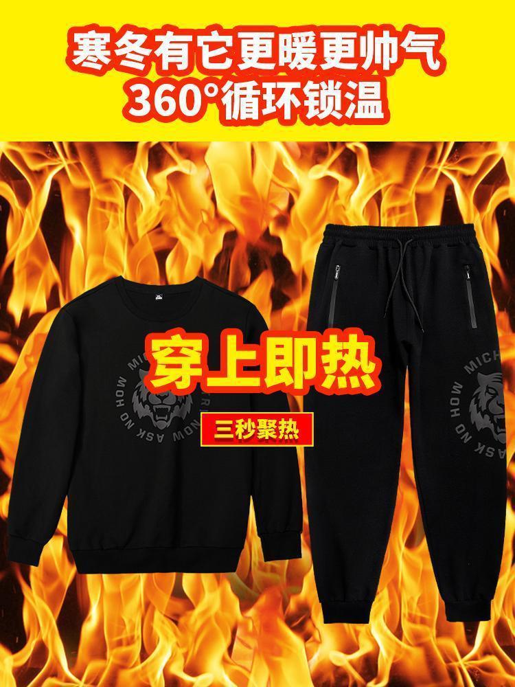Traje deportivo de talla grande con forro polar para hombre, suéter holgado y moderno, pantalones deportivos para hombre gordo, ropa informal cálida y gruesa de invierno