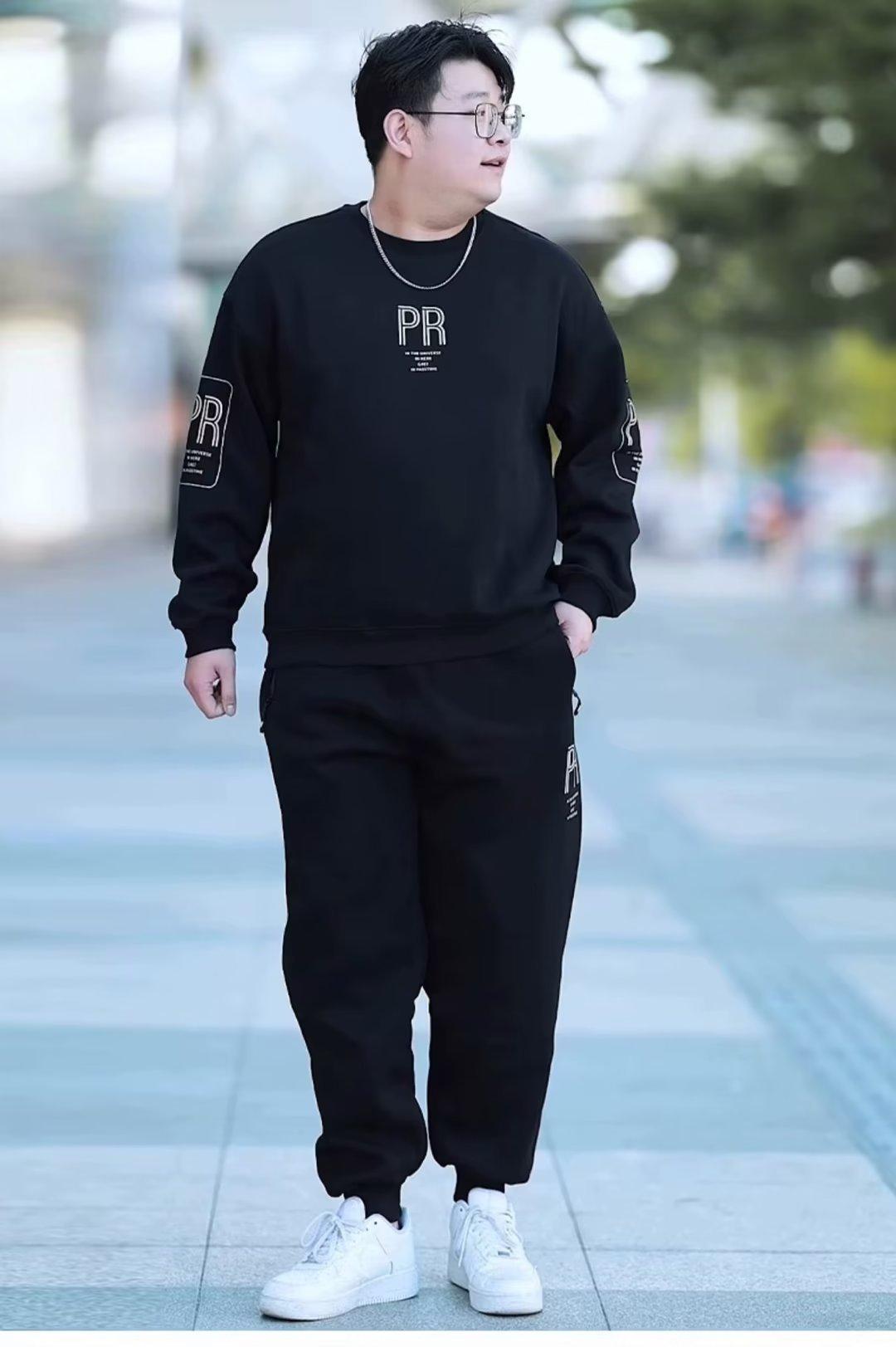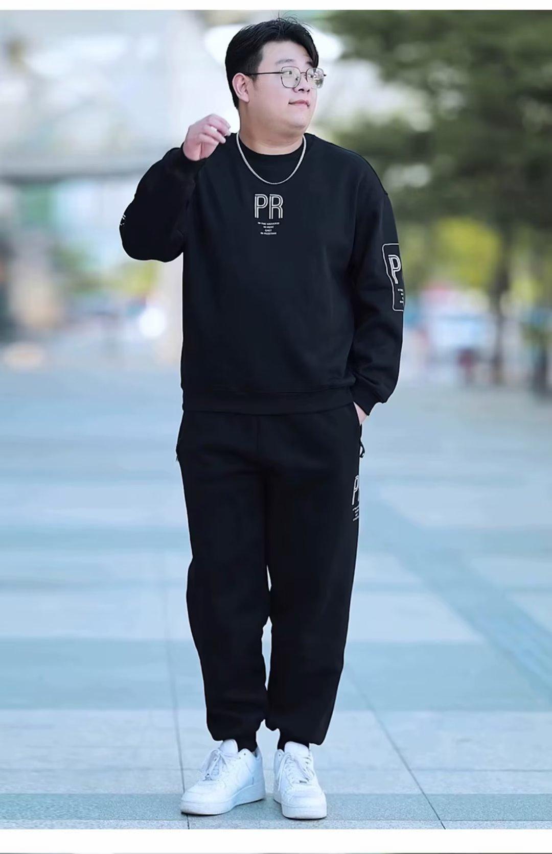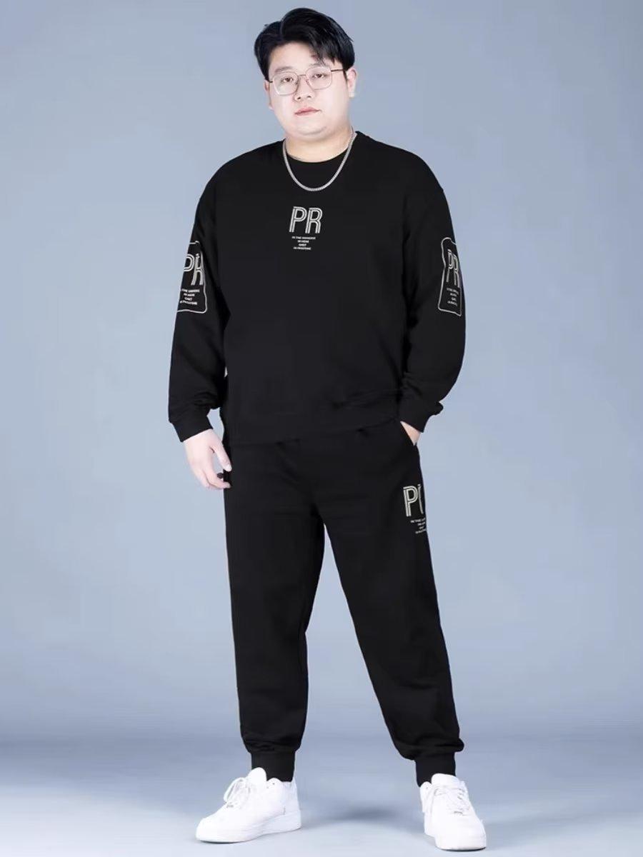 Traje casual de talla grande para hombre 2023, nuevo conjunto de dos piezas de suéter y pantalones deportivos de talla grande para otoño para hombre