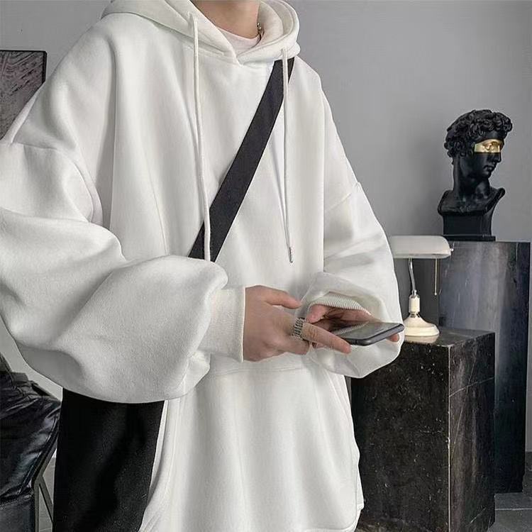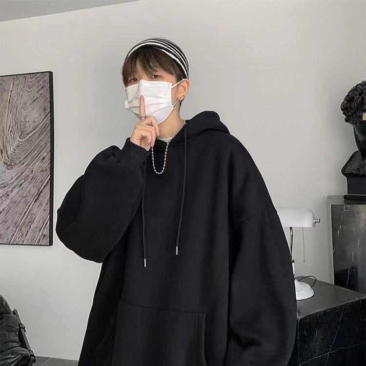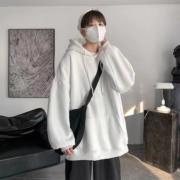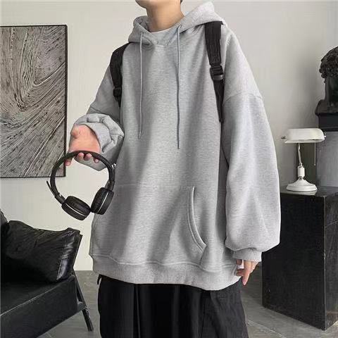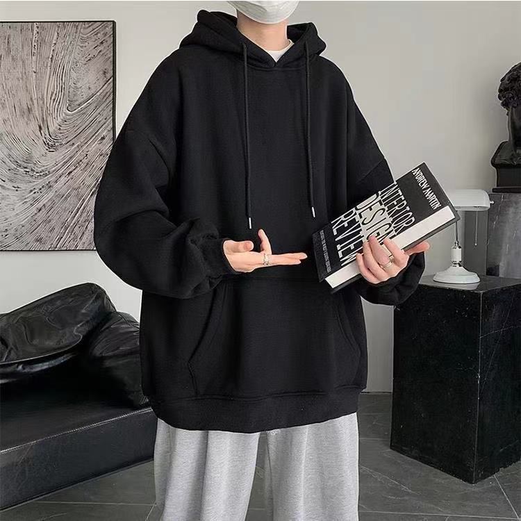 Compra Sudadera con capucha de otoño para hombre, estilo coreano, holgada, de talla grande, con forro polar grueso, color liso. al por mayor en Joom.pro