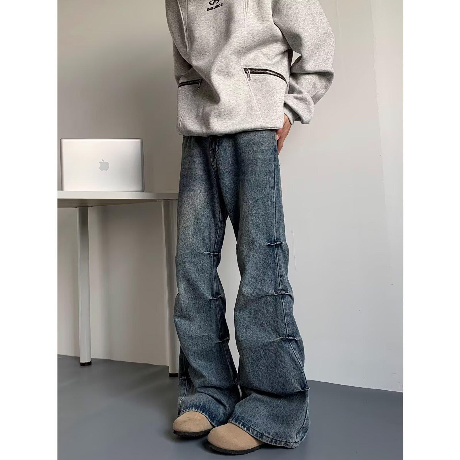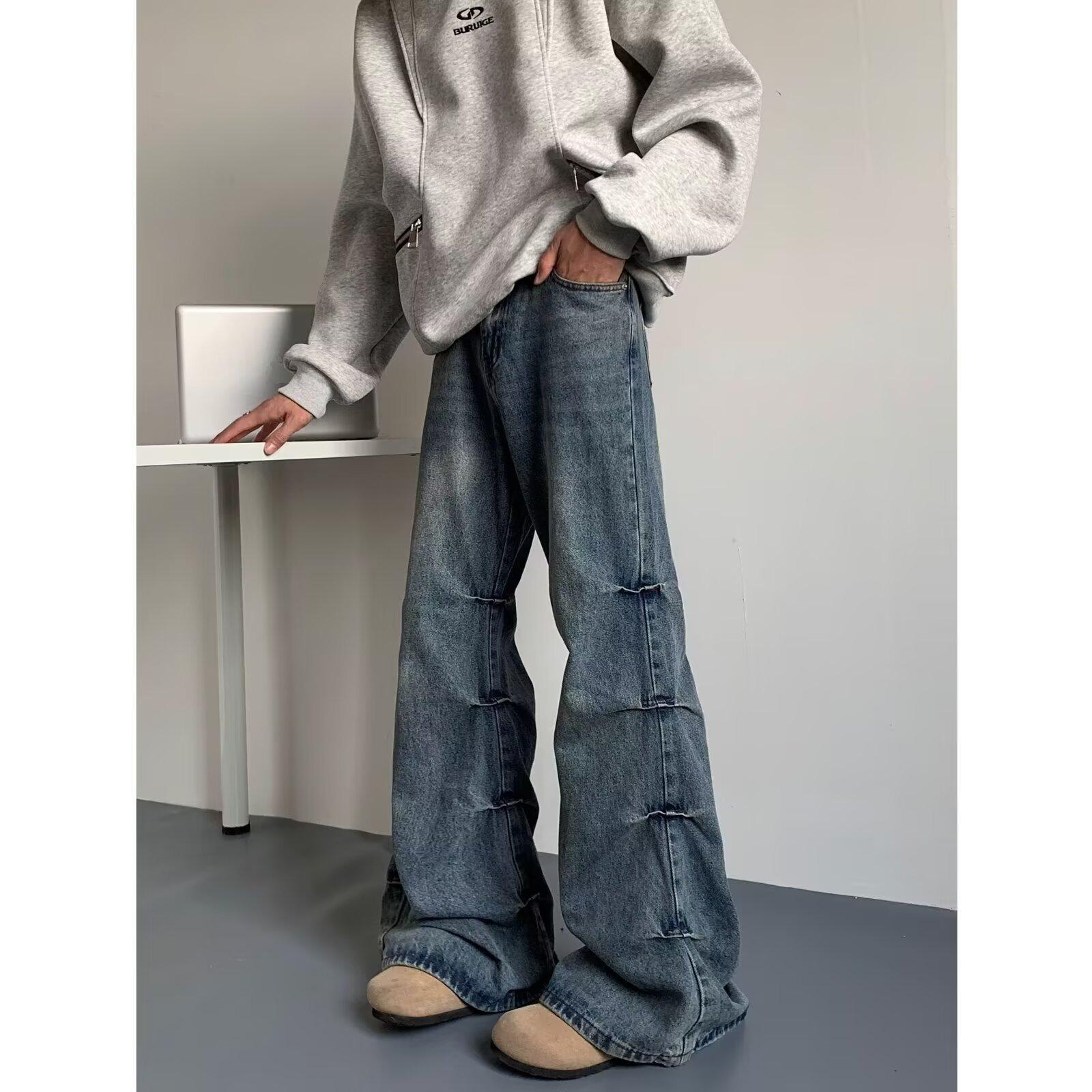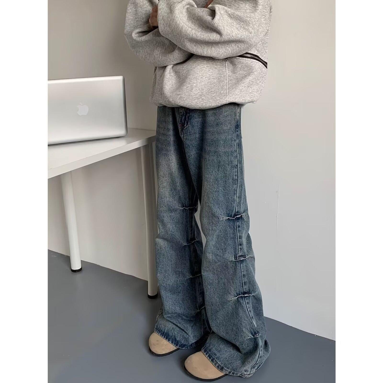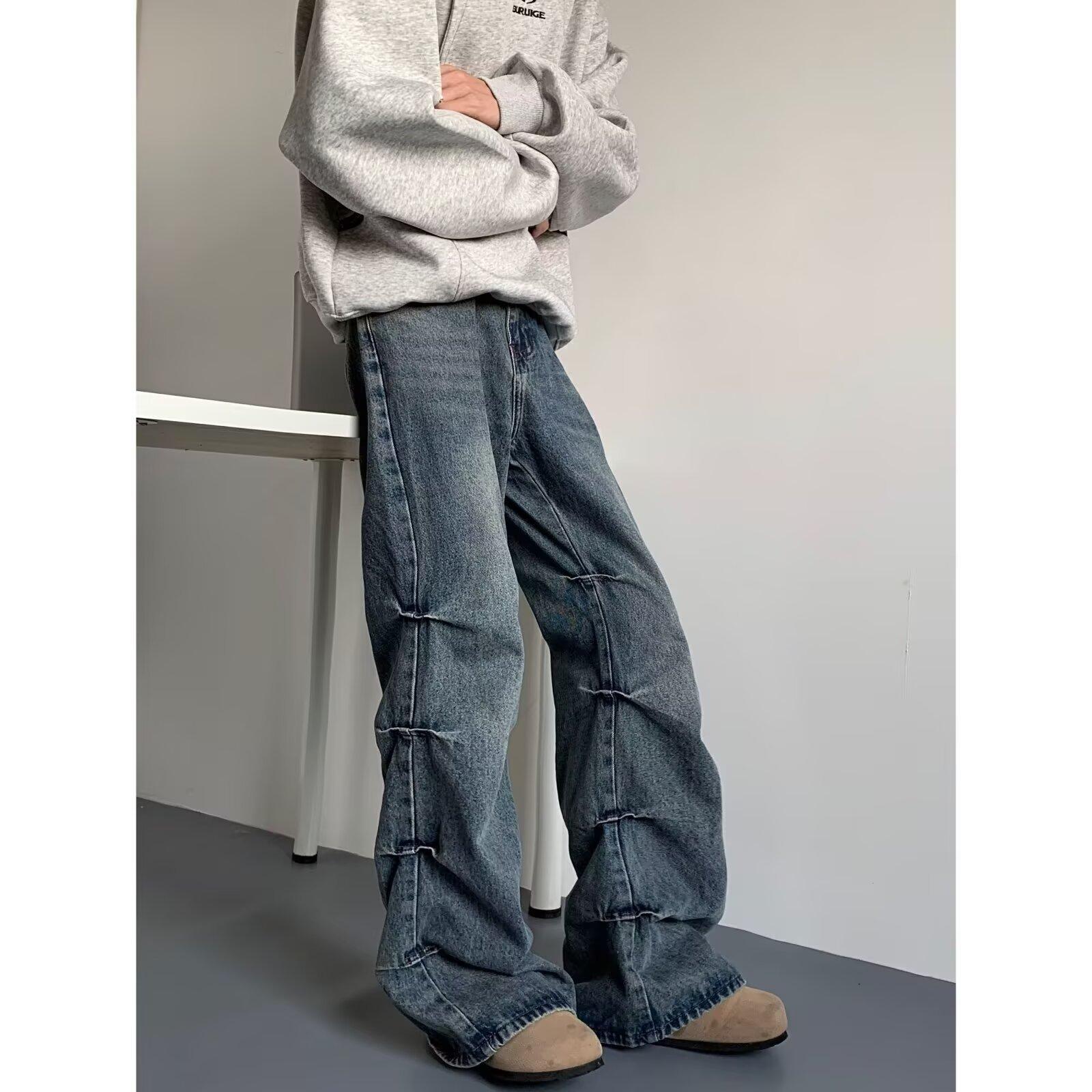 Pantalones vaqueros plisados lavados para hombre, primavera y otoño, estilo americano, retro, holgados, casuales, combinables, de alto nivel, rectos