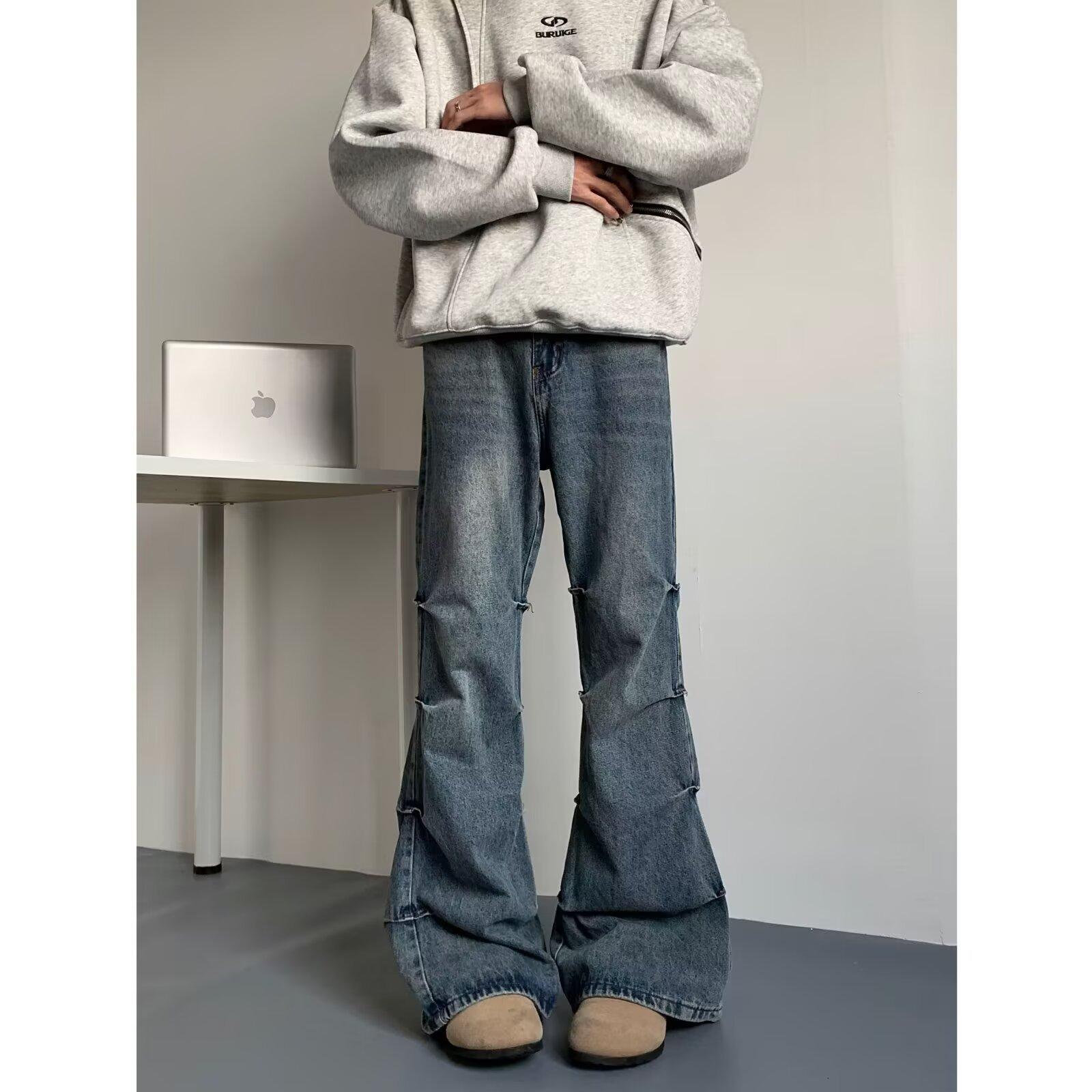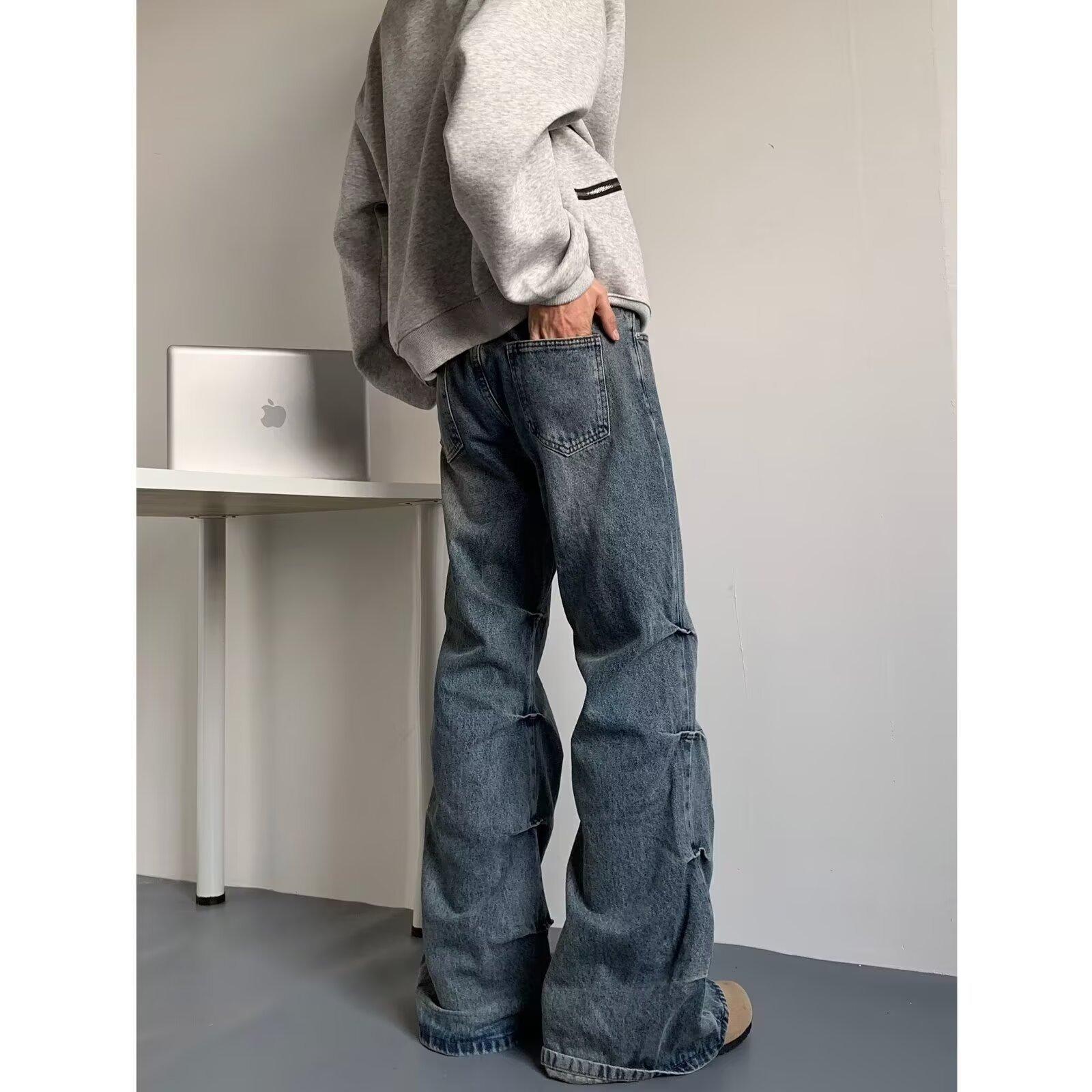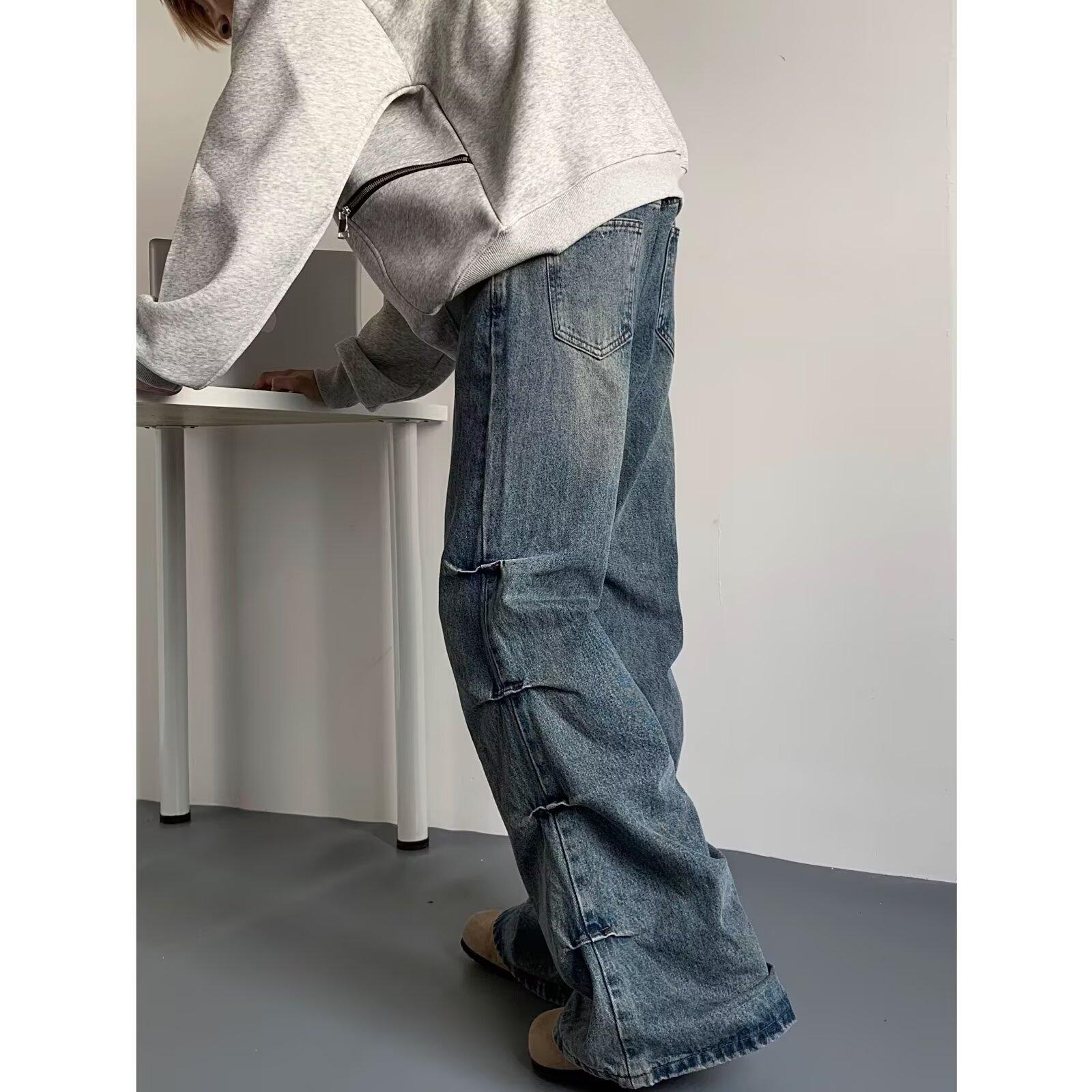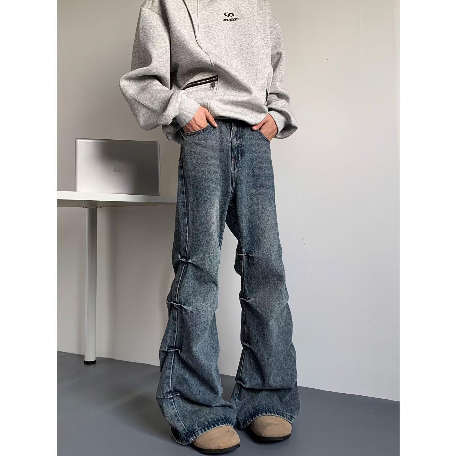 Pantalones vaqueros plisados lavados para hombre, primavera y otoño, estilo americano, retro, holgados, casuales, combinables, de alto nivel, rectos