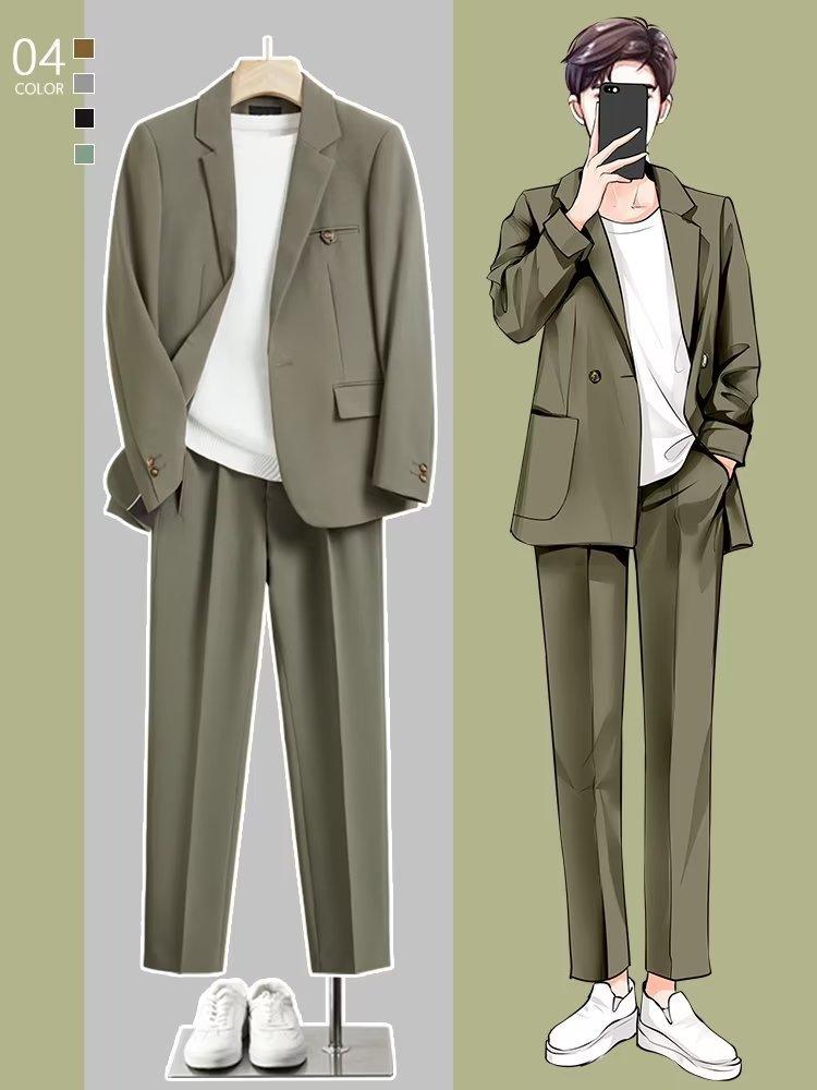 Traje casual de alta gama para hombre, primavera y otoño, estilo coreano, suelto, ligero, estilo maduro, Ruan, guapo, chaqueta de traje pequeña, de moda