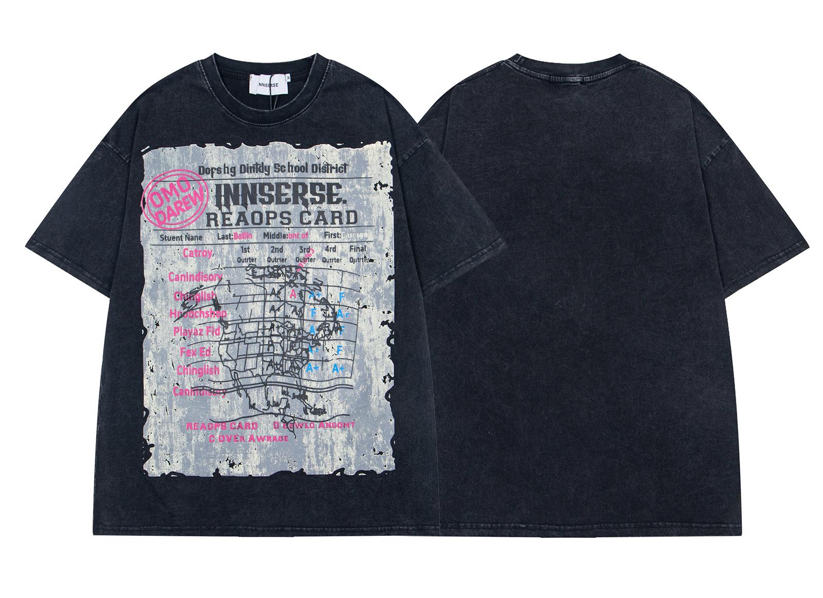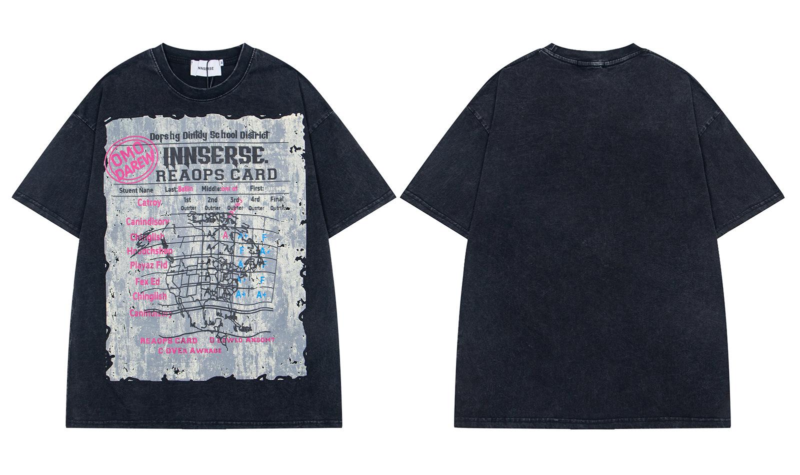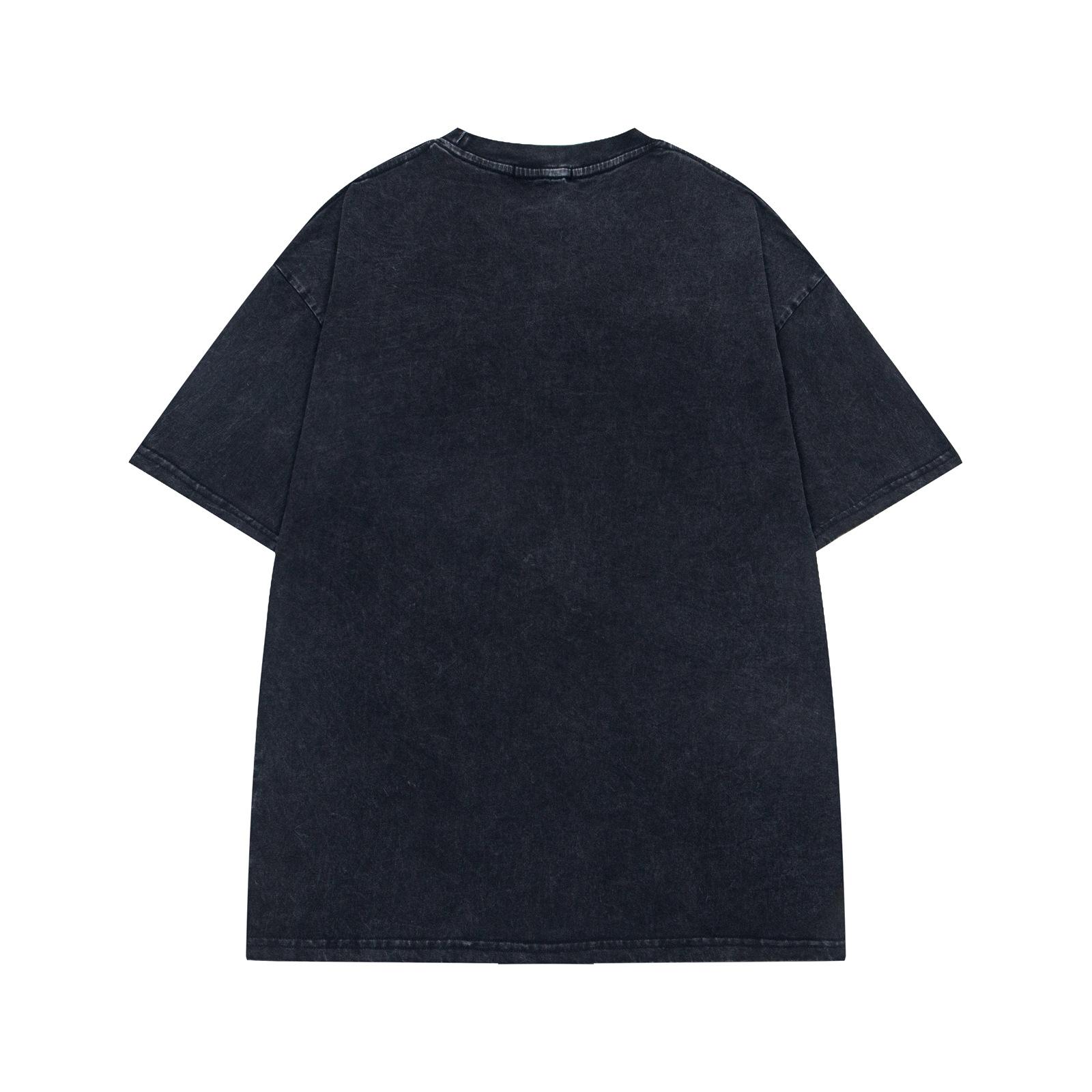 Camiseta de manga corta con cuello redondo, estilo americano, estilo retro lavado, para hombre y mujer, verano 2025, holgada, informal, combinable con todo.