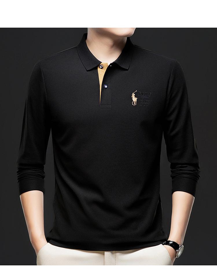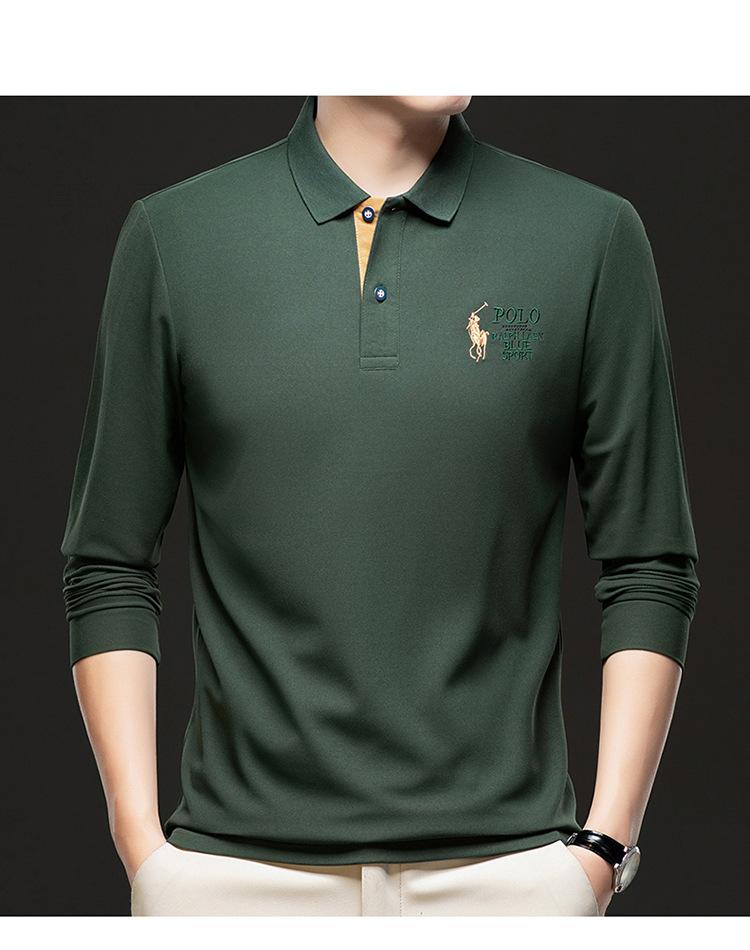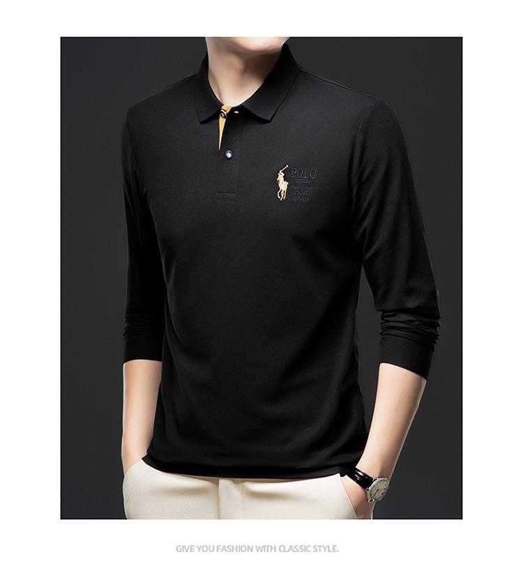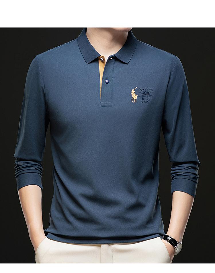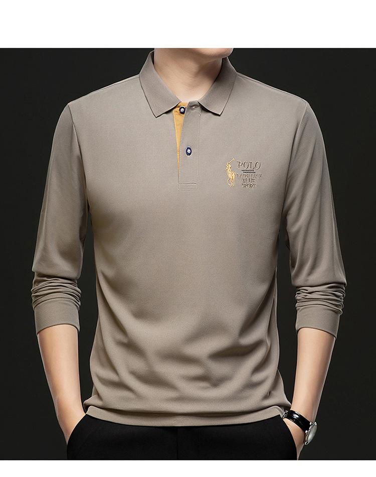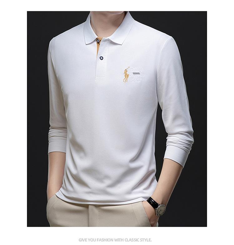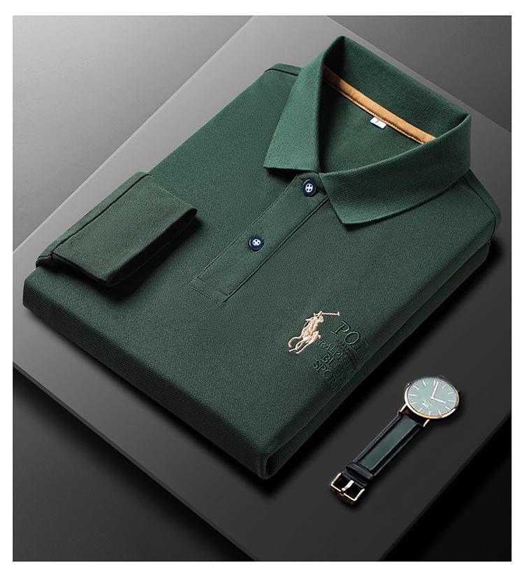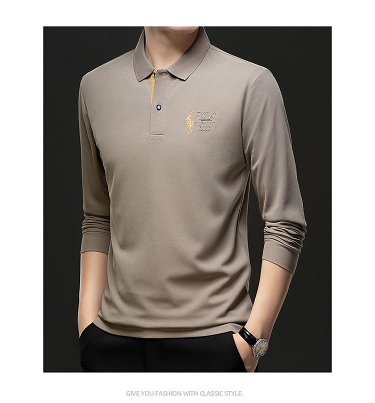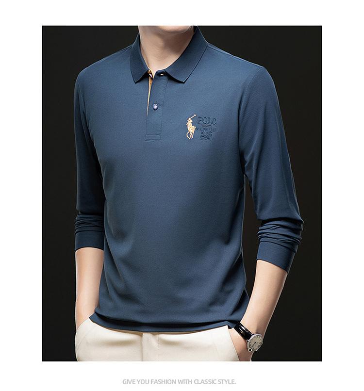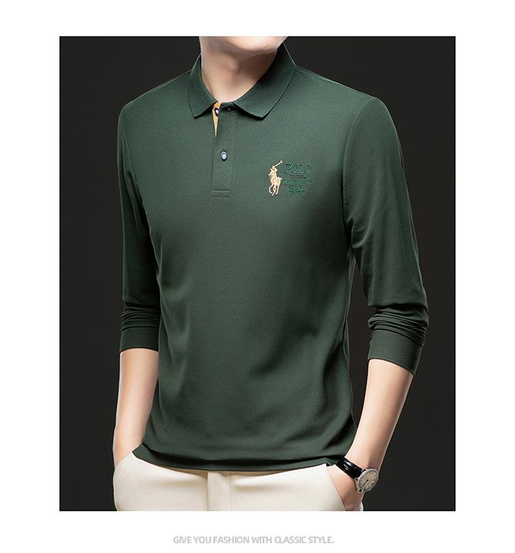 Polo de manga larga para hombre, primavera y otoño, con botones bordados, informal, de negocios, 2025