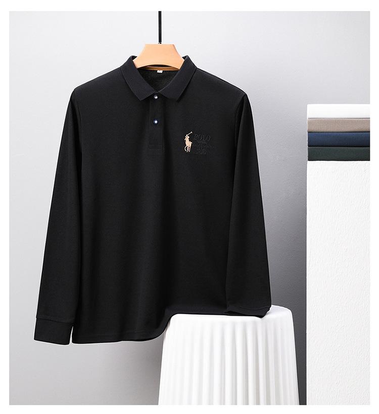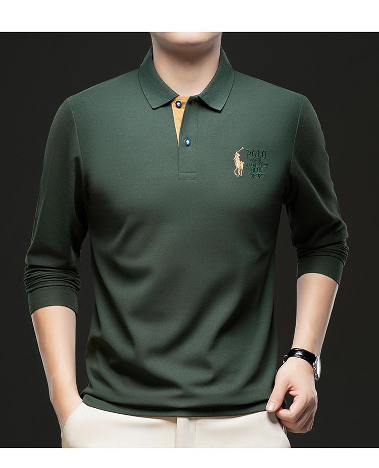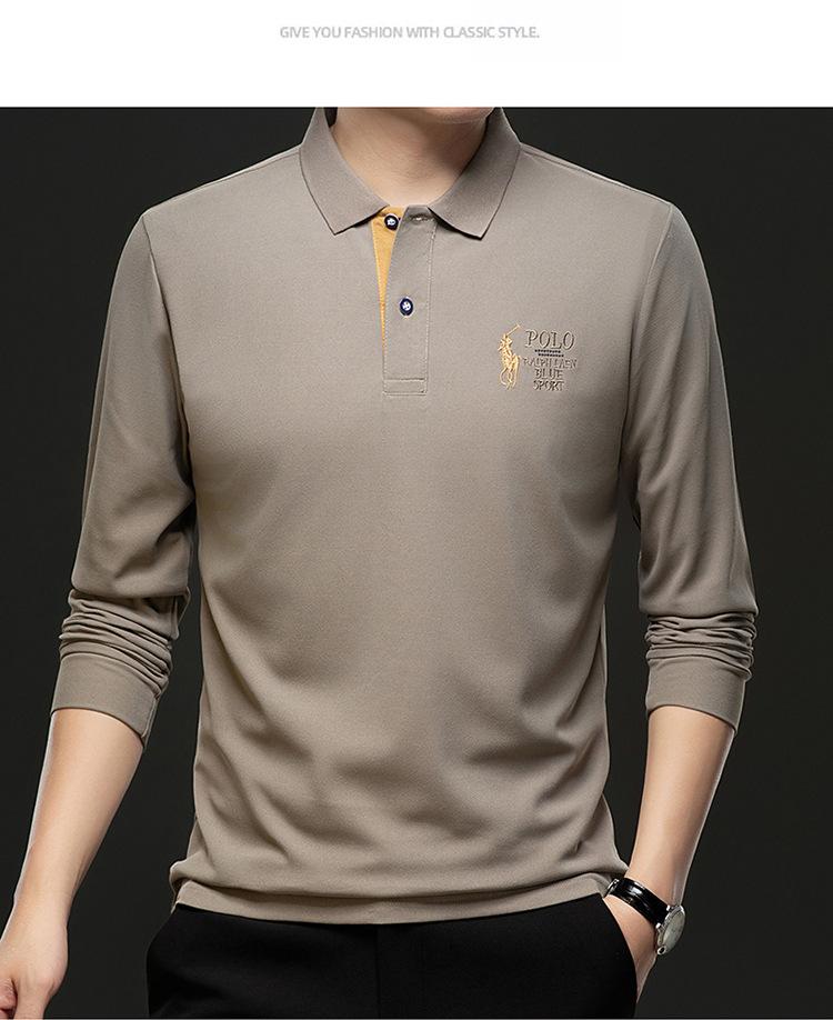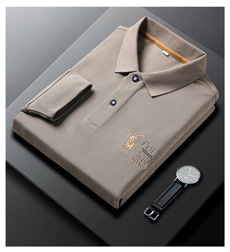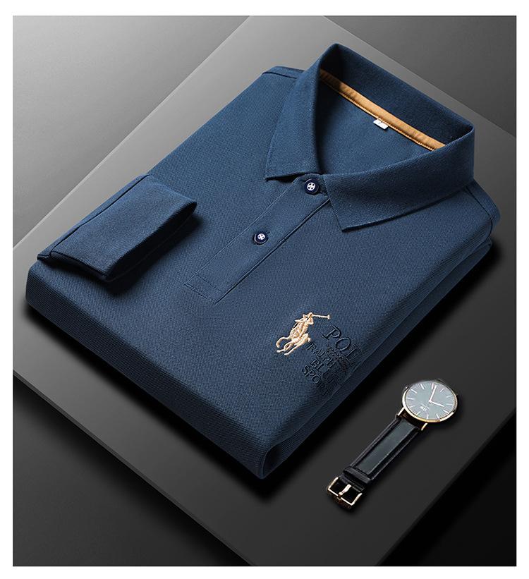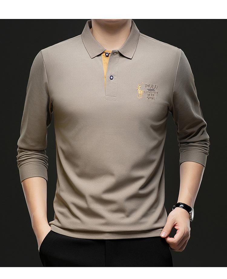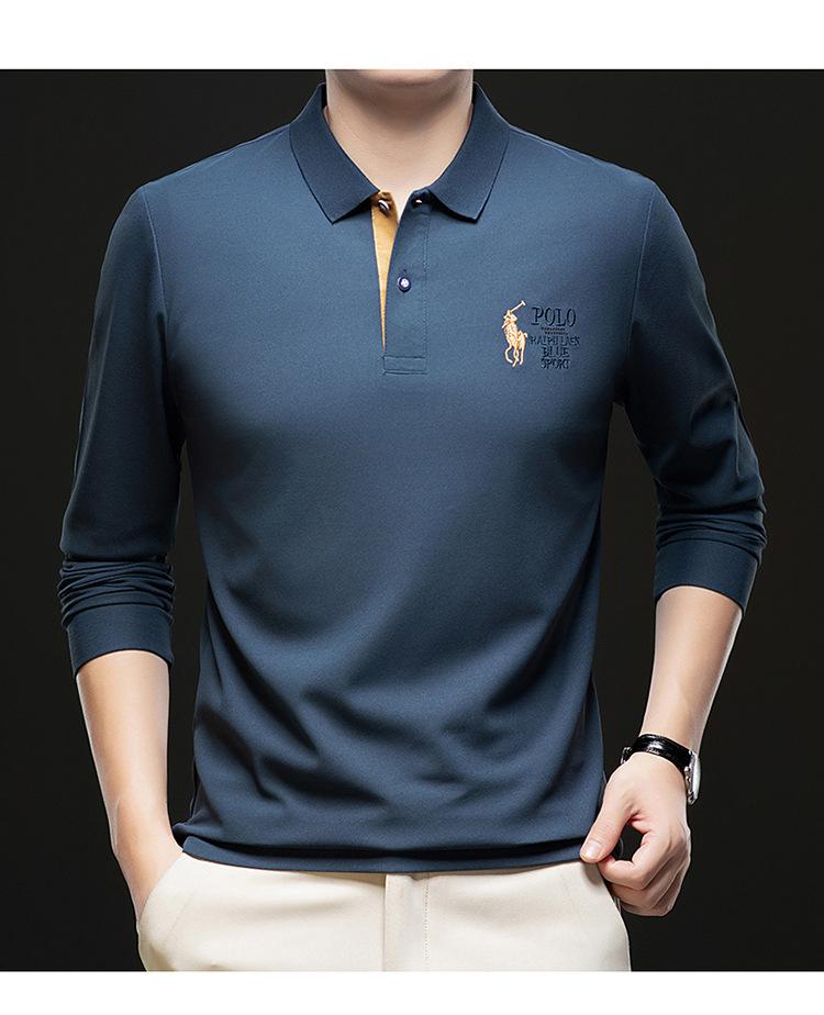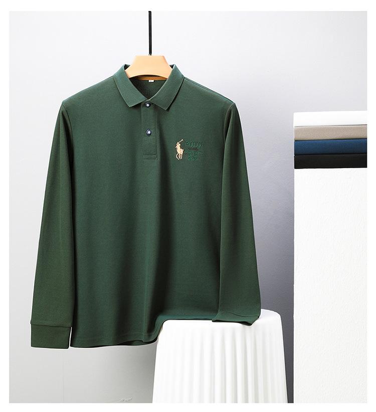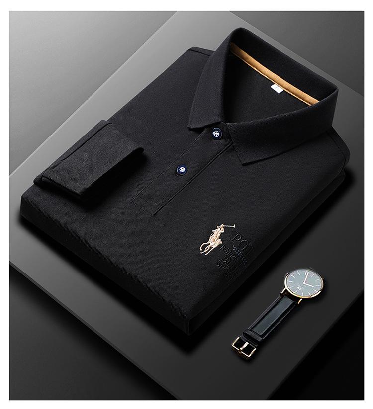 Polo de manga larga para hombre, primavera y otoño, con botones bordados, informal, de negocios, 2025