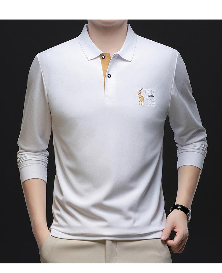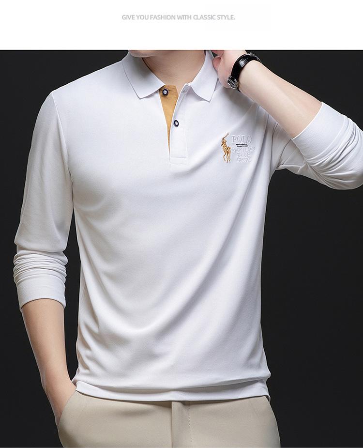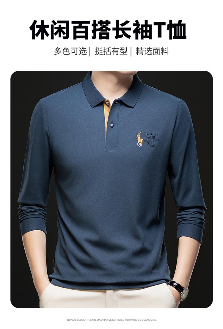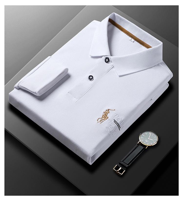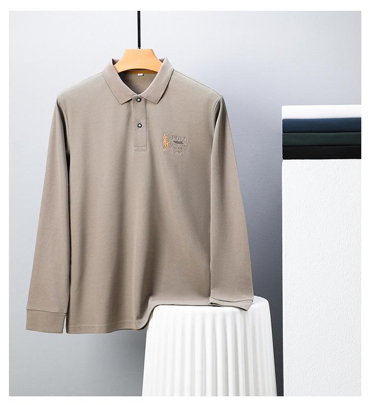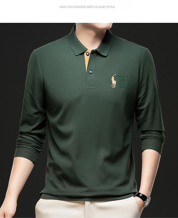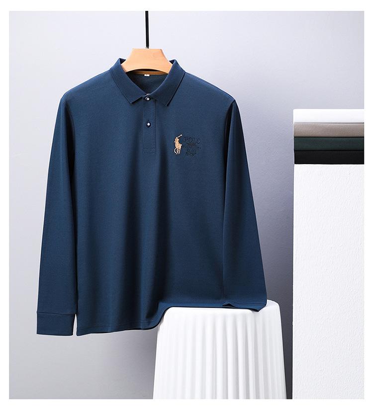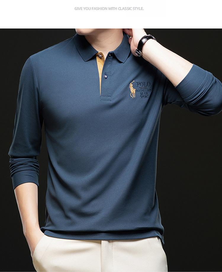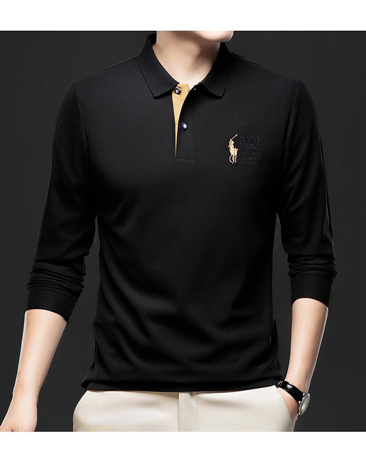 Polo de manga larga para hombre, primavera y otoño, con botones bordados, informal, de negocios, 2025