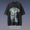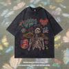 TKPA Marca de Moda Estilo Americano Camiseta Antigua hiphop Kuso Estampado de Calavera Algodón Puro Holgada Manga Corta Camiseta para Hombre y Mujer Transfronteriza