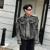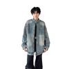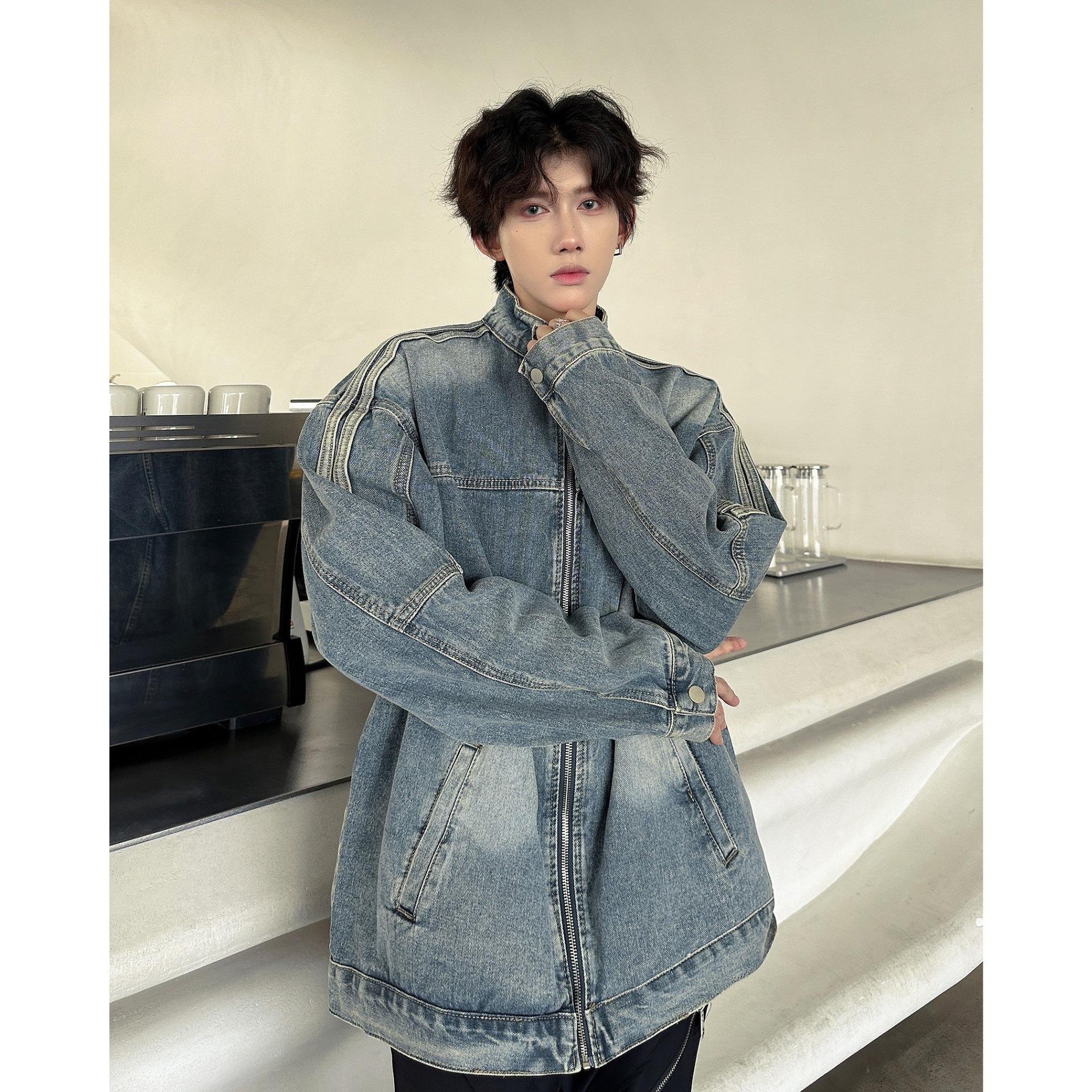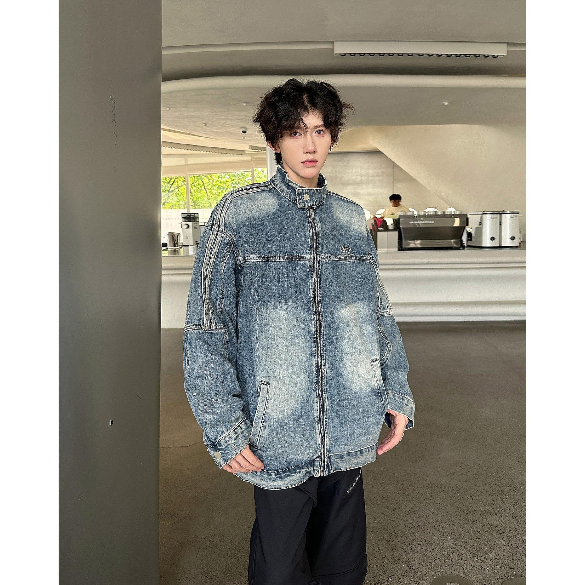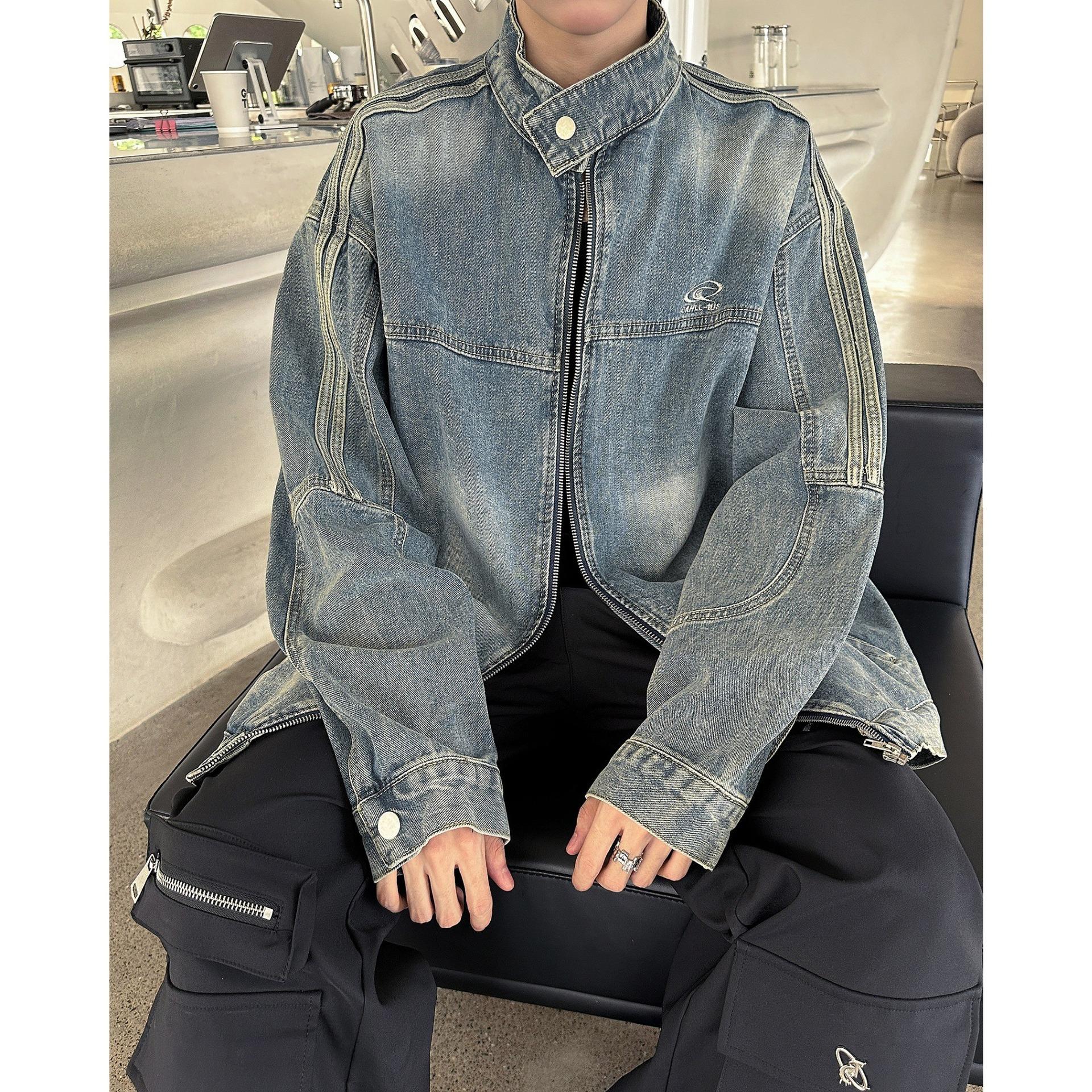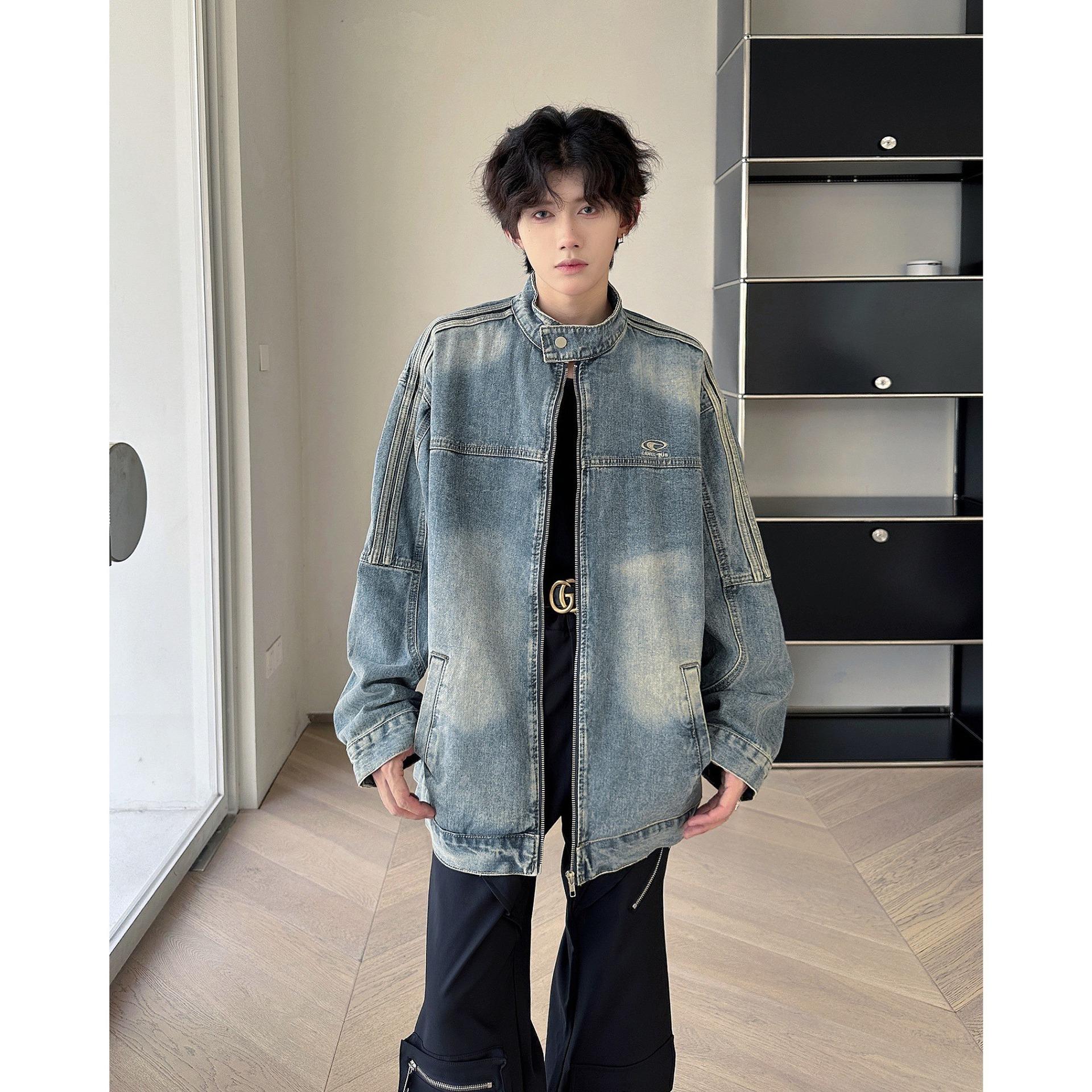 Chaqueta vaquera estilo americano para hombre, primavera y otoño, estilo americano, retro, de alta gama, estilo europeo y americano, chaqueta con cuello a rayas de marca de moda.