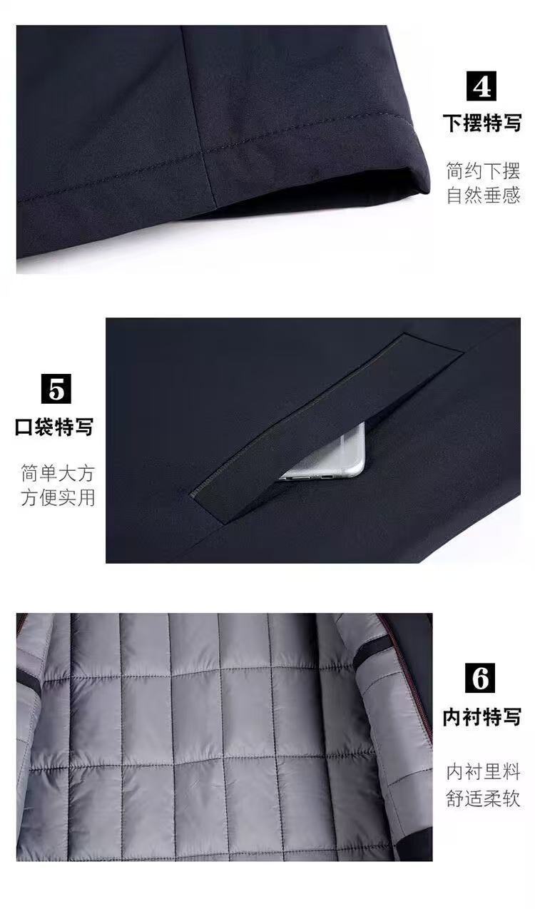 Button version [three pockets inside] black - autumn and winter quilted and thickened, Button version [three p...