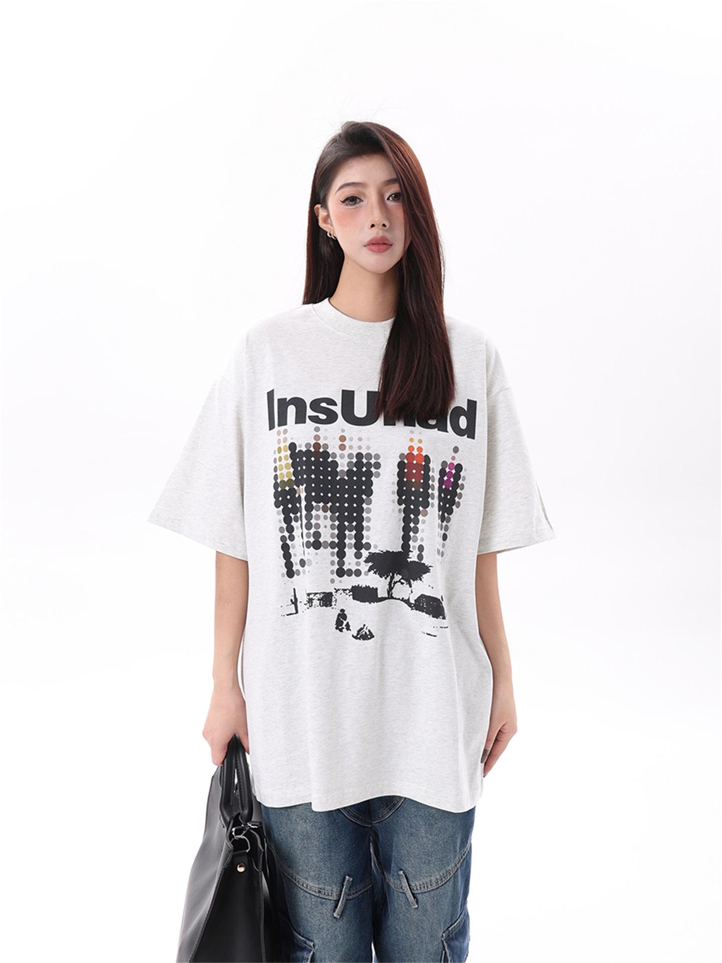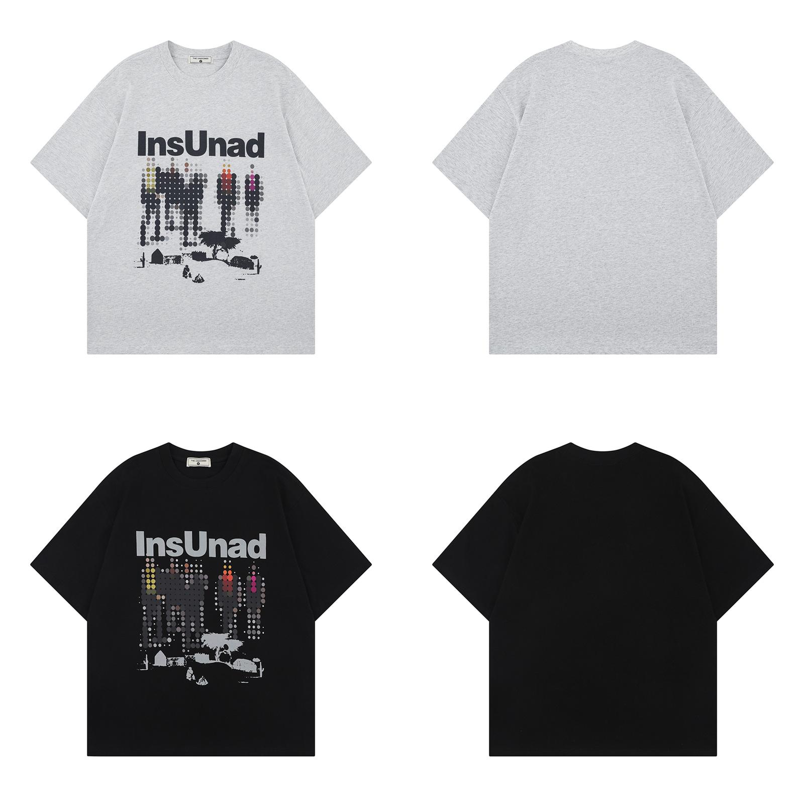 Camiseta de manga corta con estampado abstracto creativo de High Street de marca de moda para hombre y mujer, top informal holgado de verano 2025 para parejas