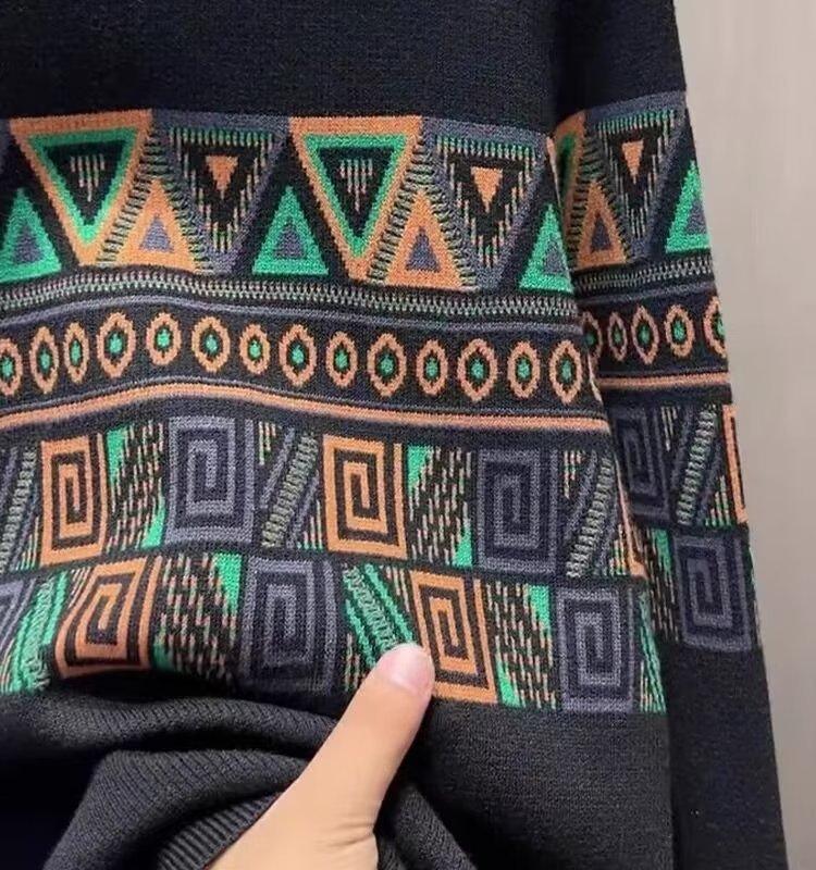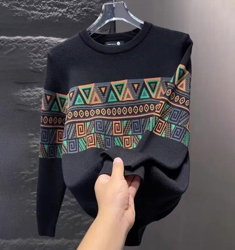 Suéter de alta calidad para hombre, otoño e invierno, nueva moda étnica, suéter de punto, manga larga, informal, combinable, con cuello redondo.