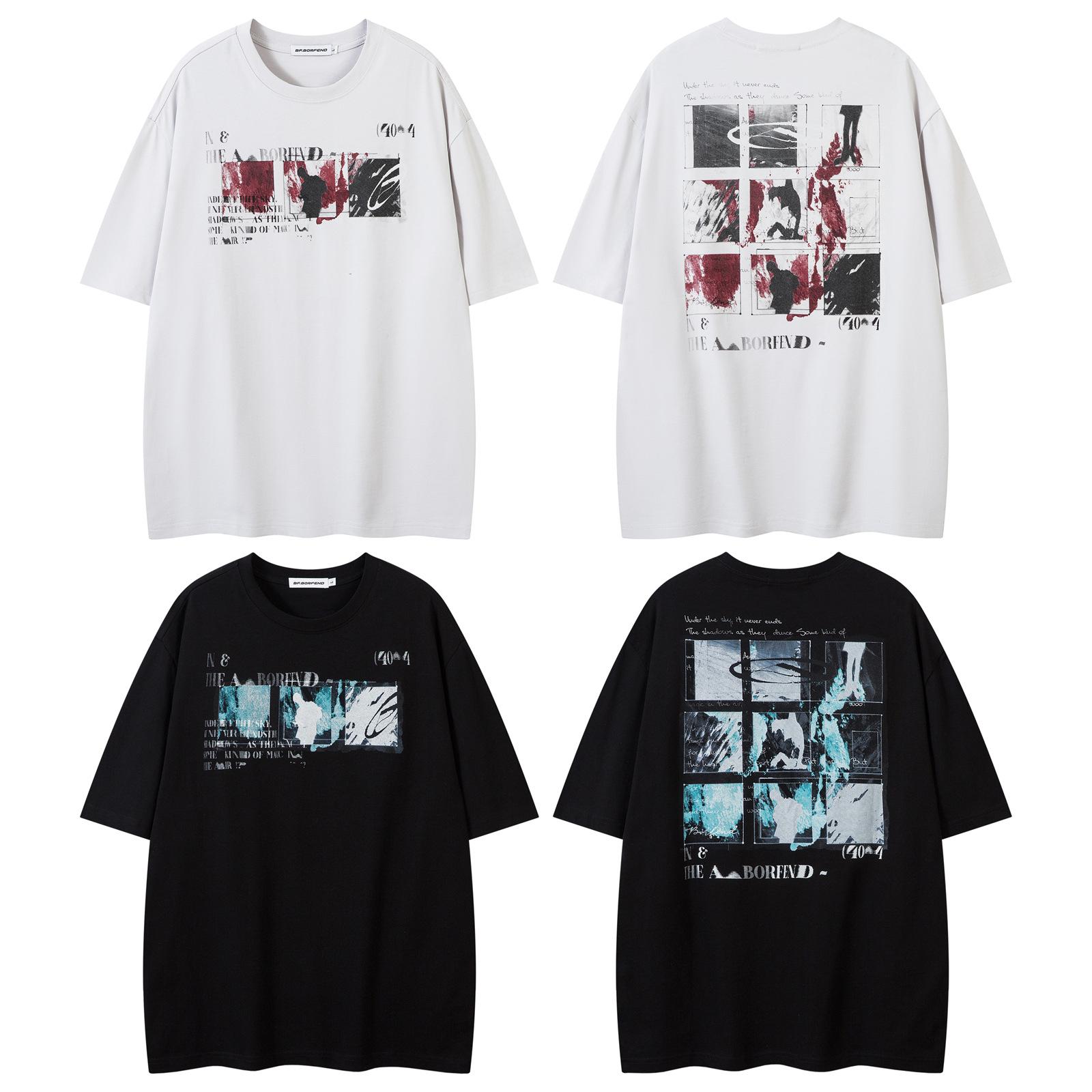Camiseta de manga corta con estampado abstracto de estilo americano de marca de moda para hombre y mujer, camiseta informal holgada de algodón puro para pareja de verano 2025.