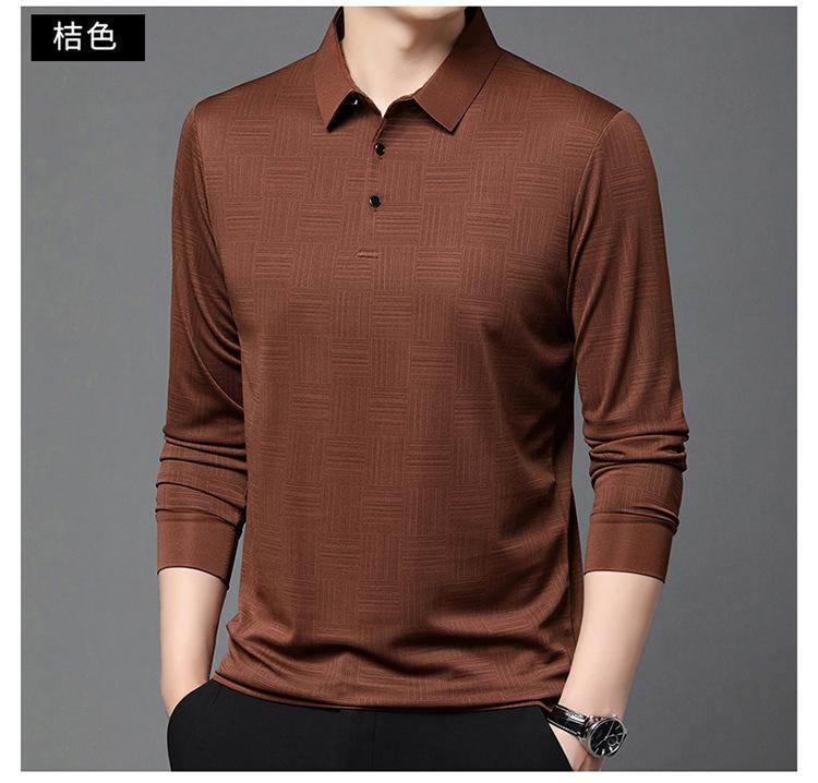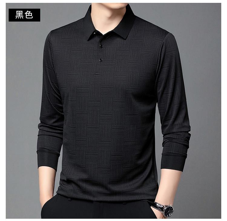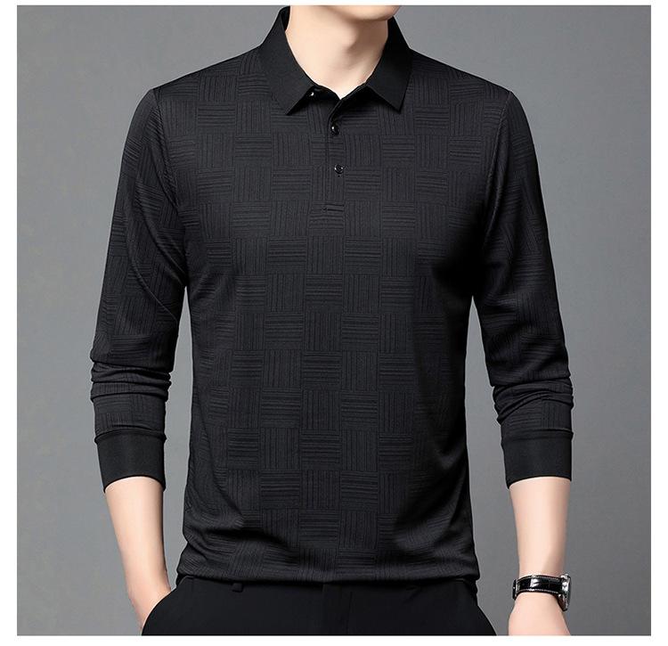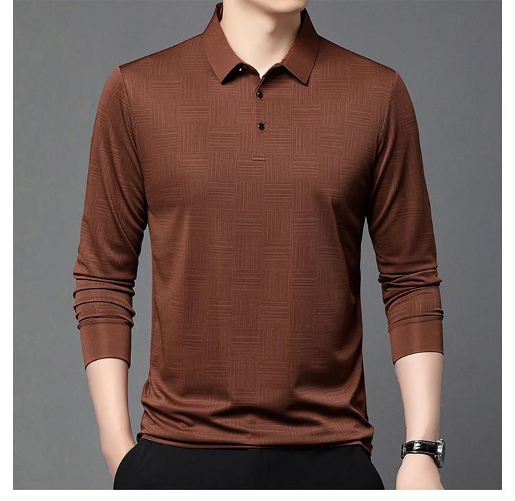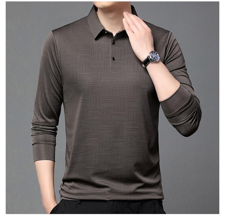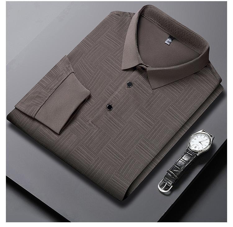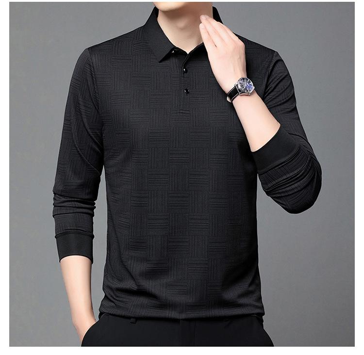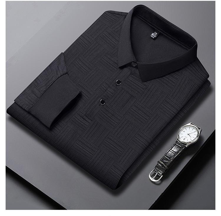 Camiseta de manga larga de jacquard para hombre, polo holgado de otoño, de negocios, de alta elasticidad, sin planchado, de moda, fina, 2025